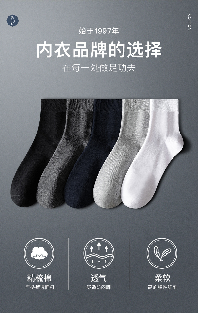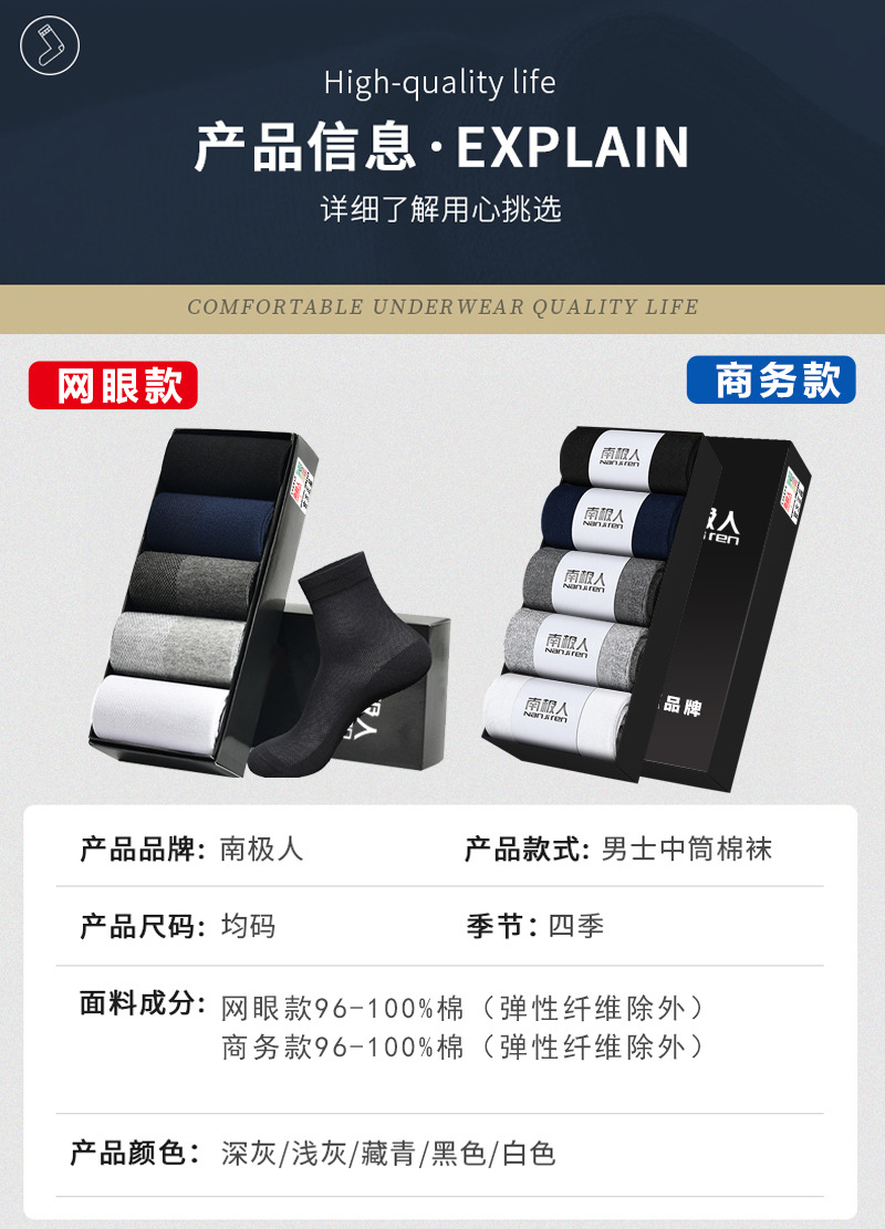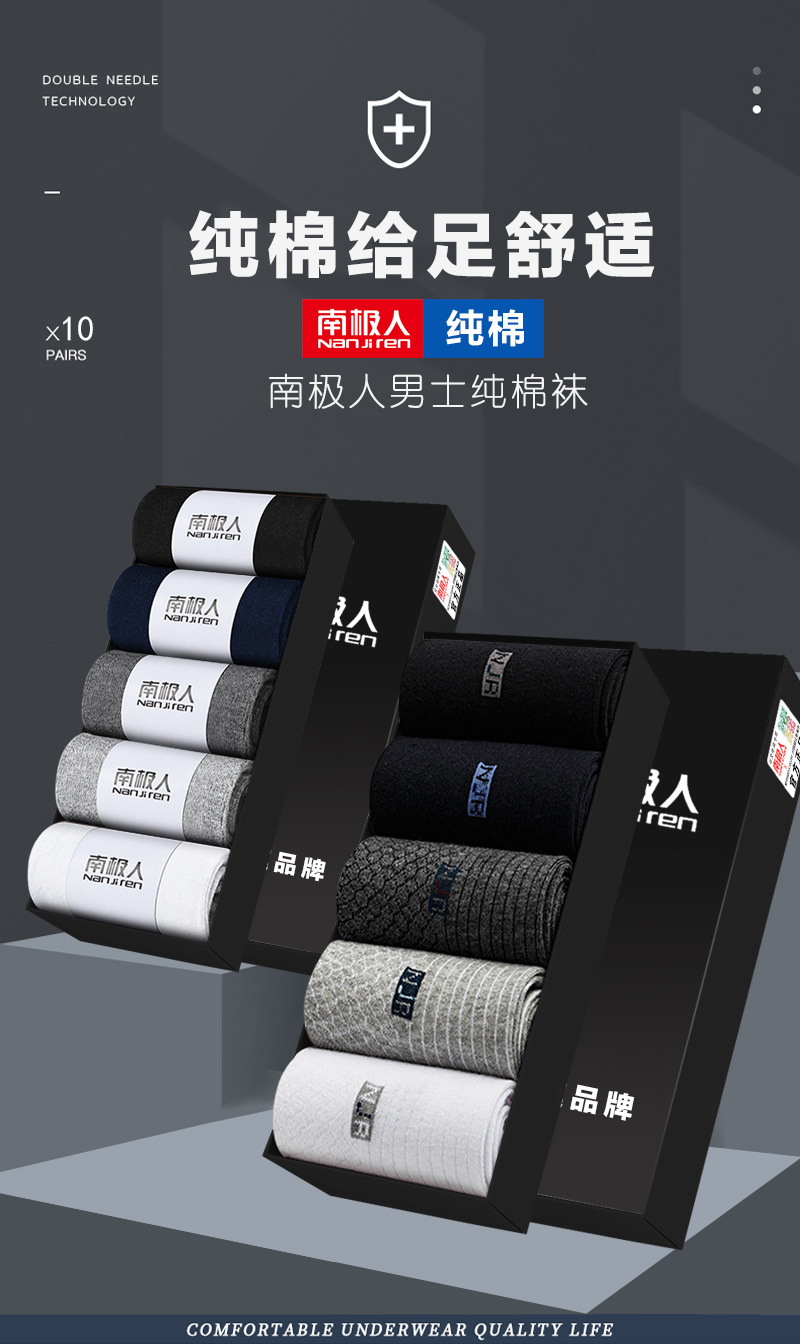 [Подарочная коробка] Антарктический производитель, мужские носки до середины икры из 100% хлопка, четырехсезонные хлопковые носки, дышащие, впитывающие пот и дезодорирующие спортивные носки.