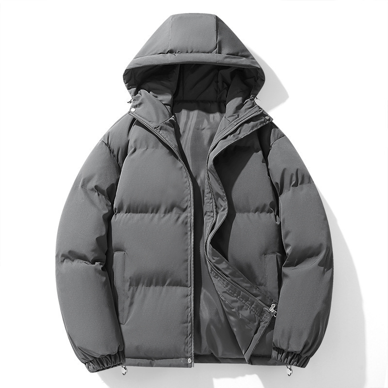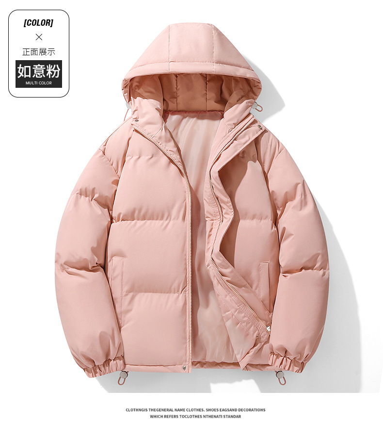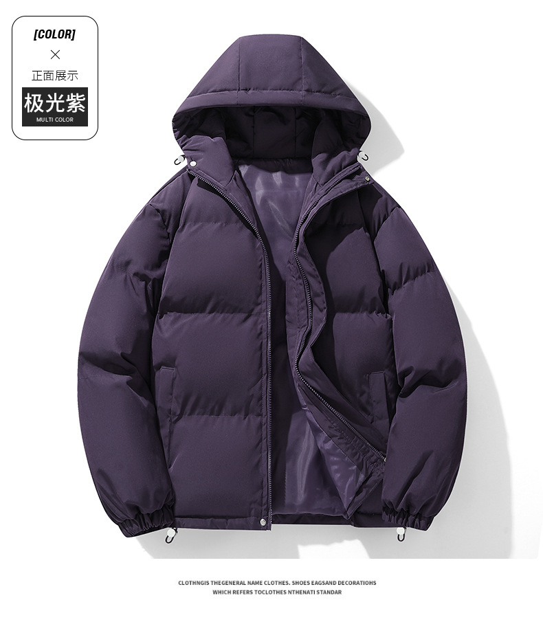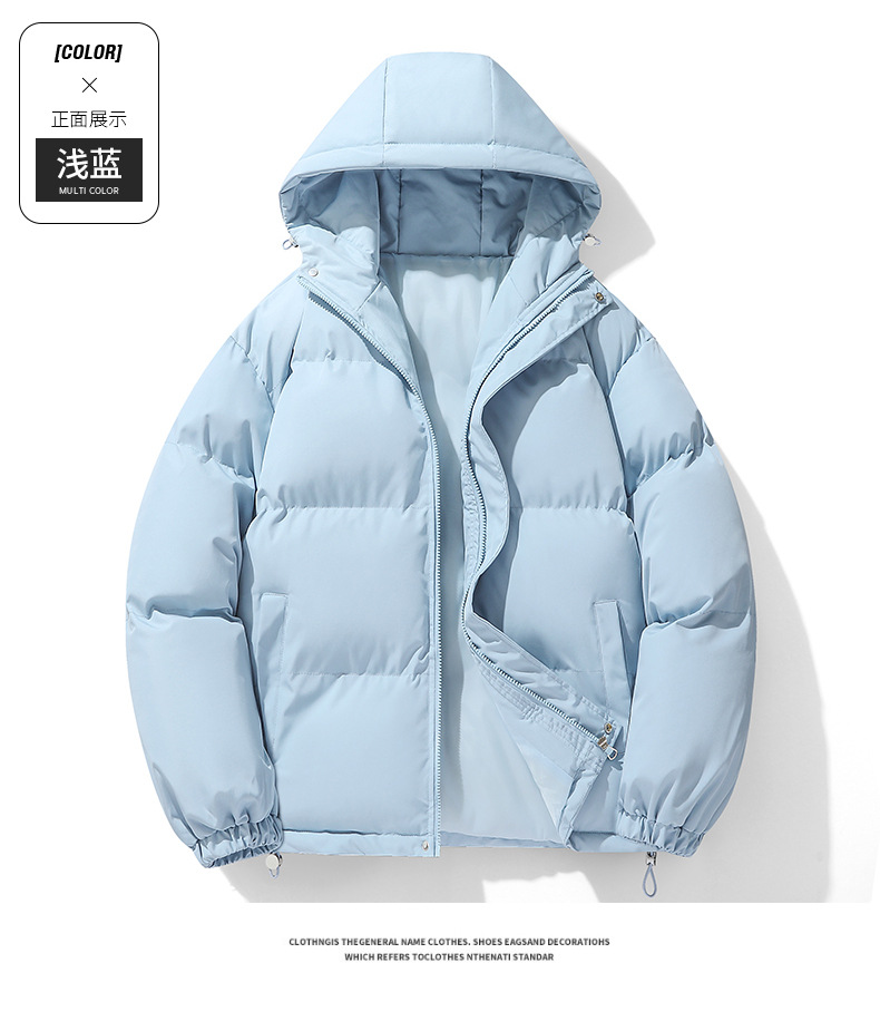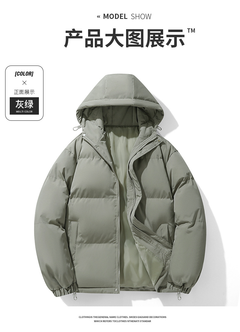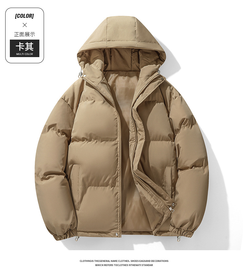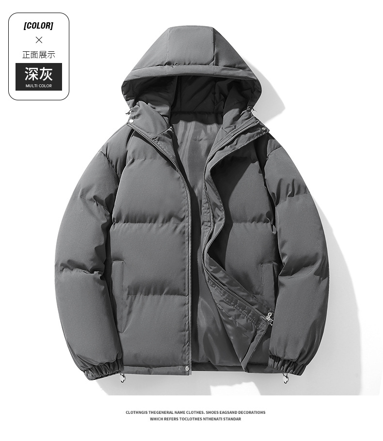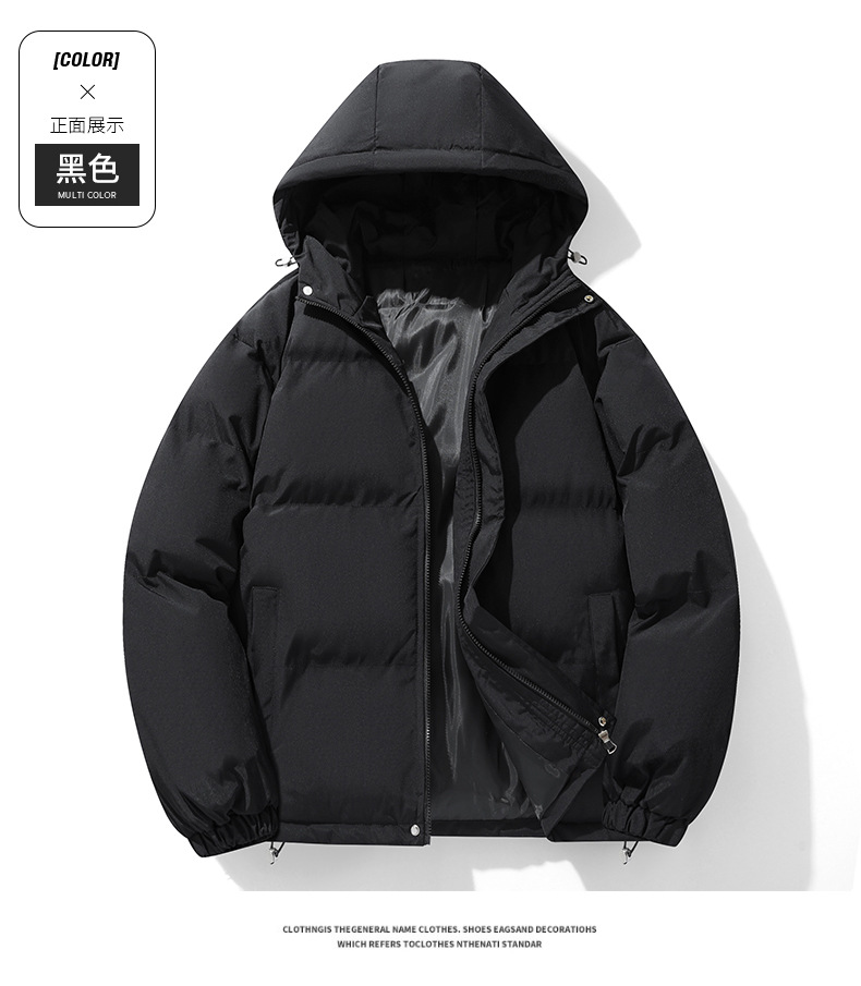 Гонконгский ветер зимний новый мужской сплошной цвет рыхлый толстый с капюшоном хлопковый костюм молодежная мода повседневная хлопковая куртка