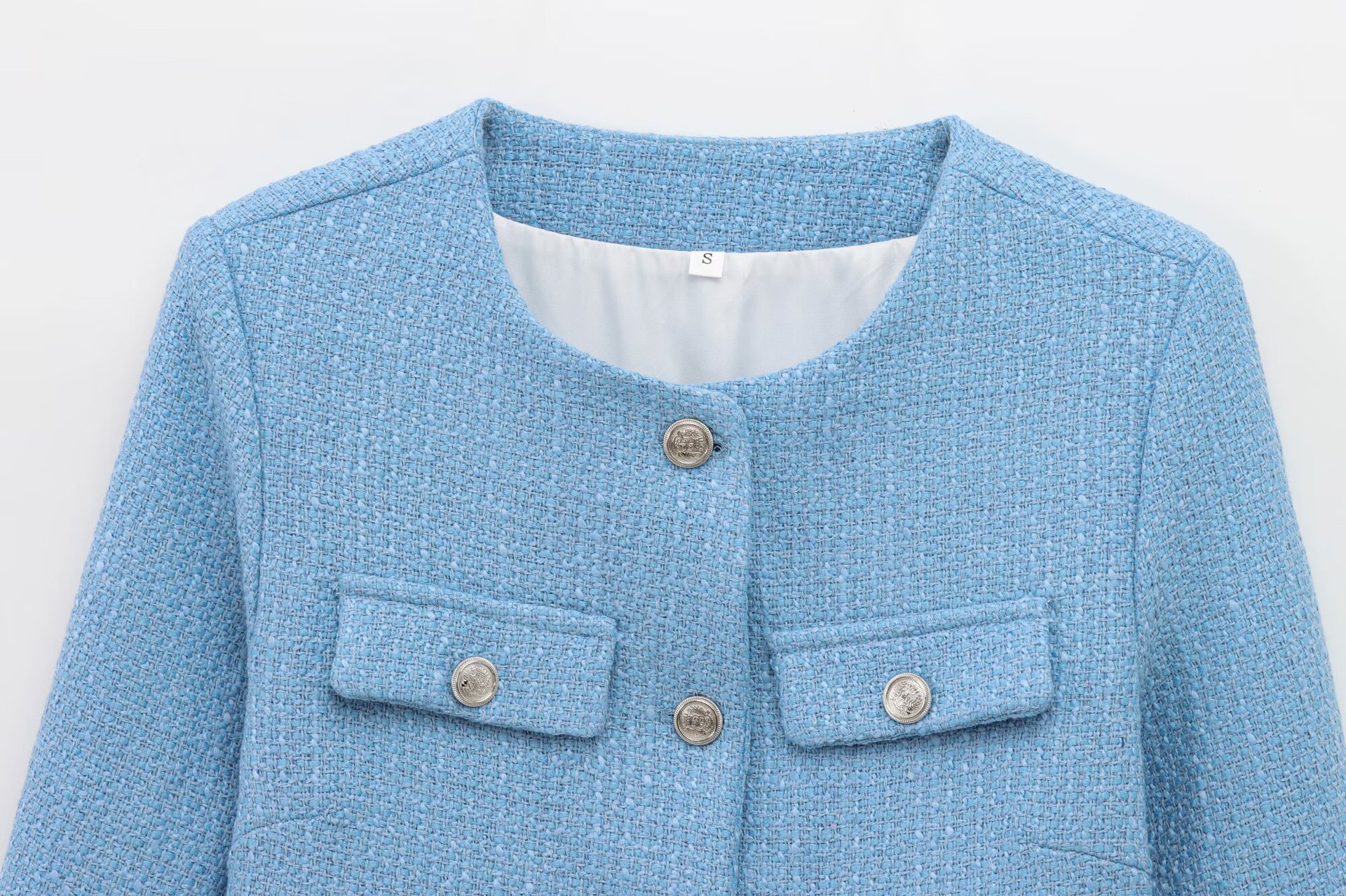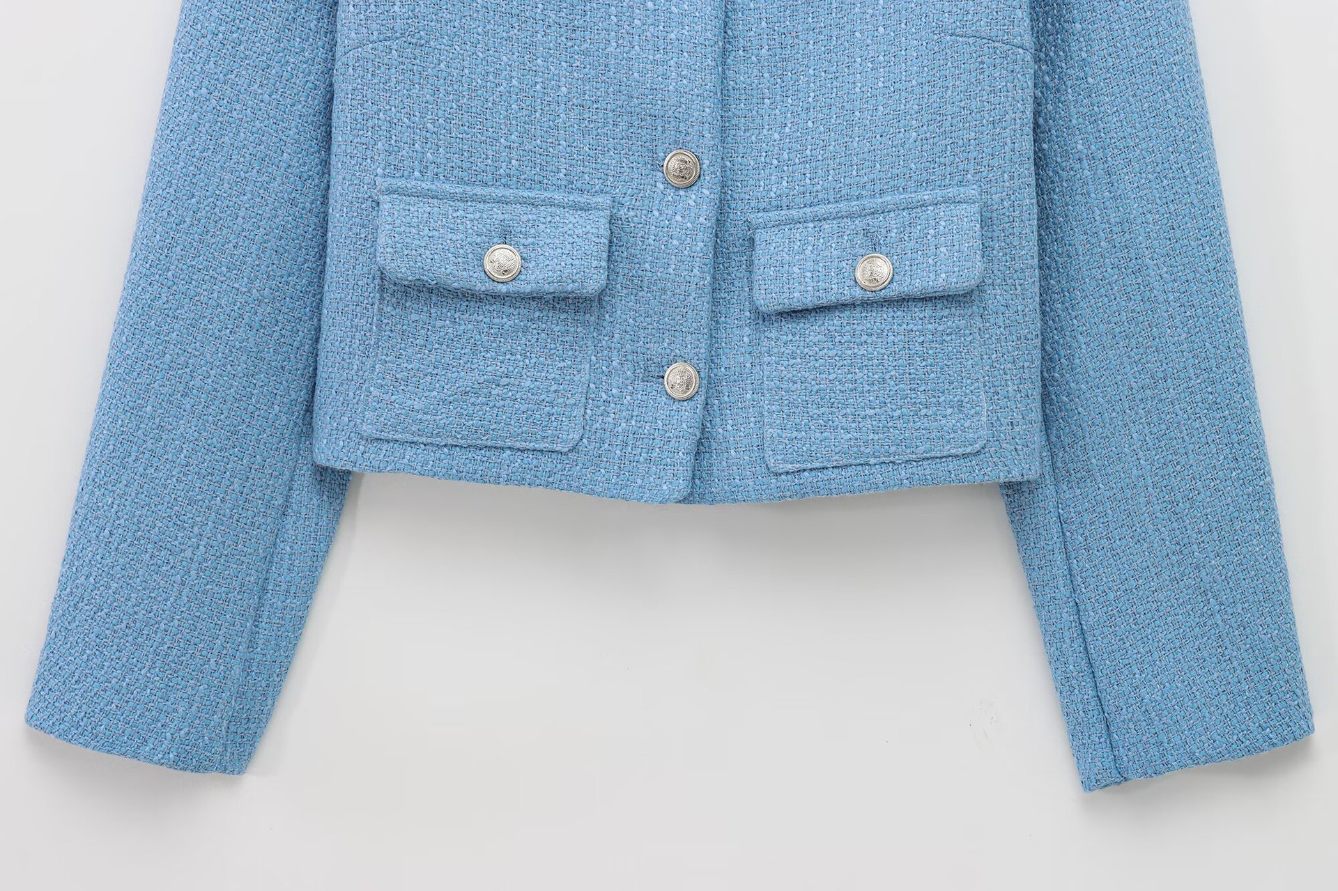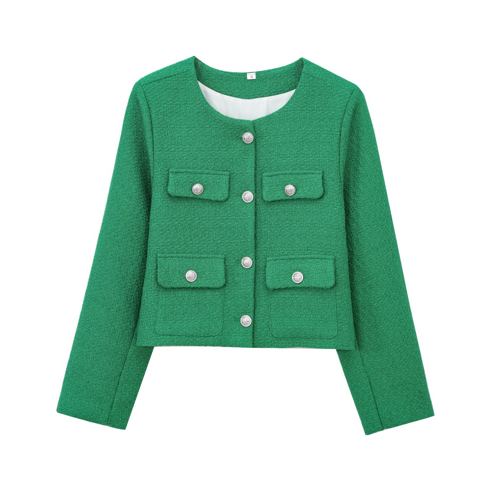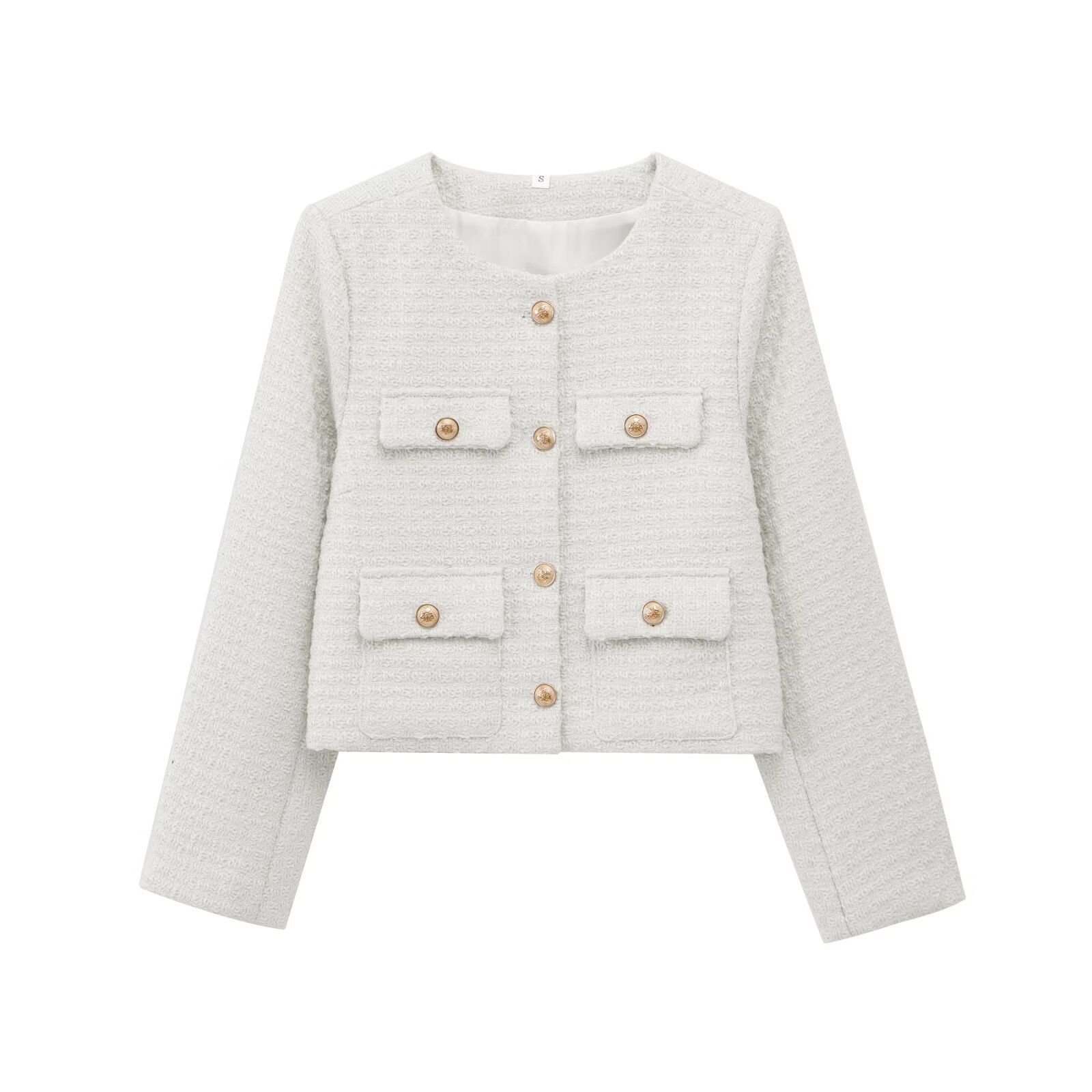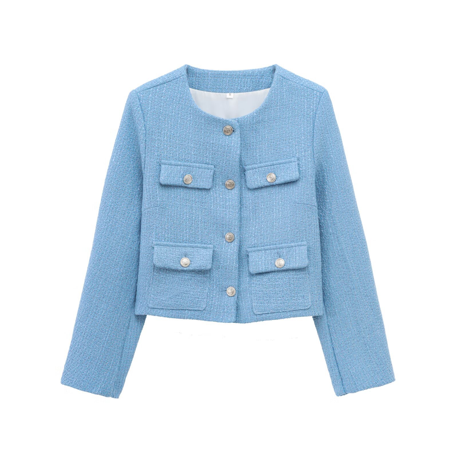 Женская одежда для внешней торговли и трансграничной торговли 2025 осень-зима европейская и американская мода куртка с карманами и текстурой в стиле маленького аромата Y8Y2550