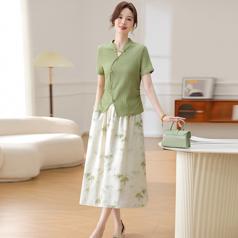 Новая освежающая одежда для мам, модные двухсекционные юбки для женщин среднего и пожилого возраста, женские модные юбки больших размеров для женщин среднего возраста, лето