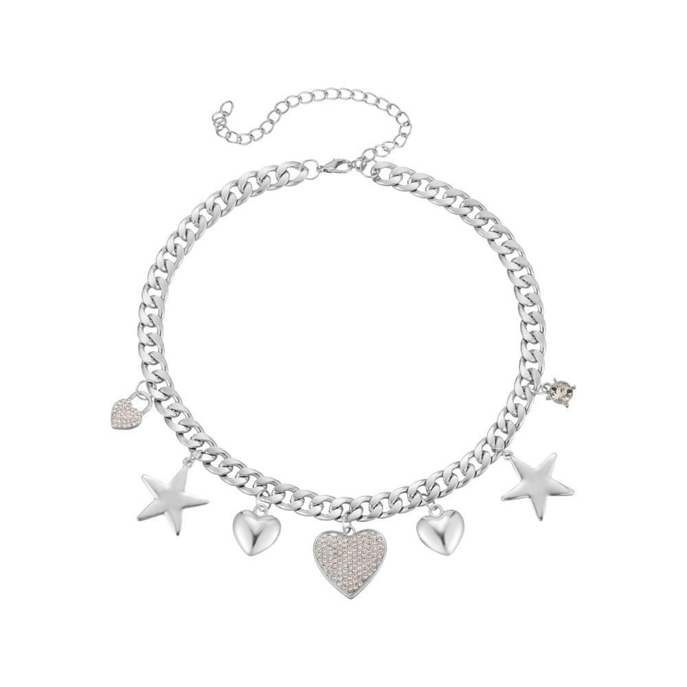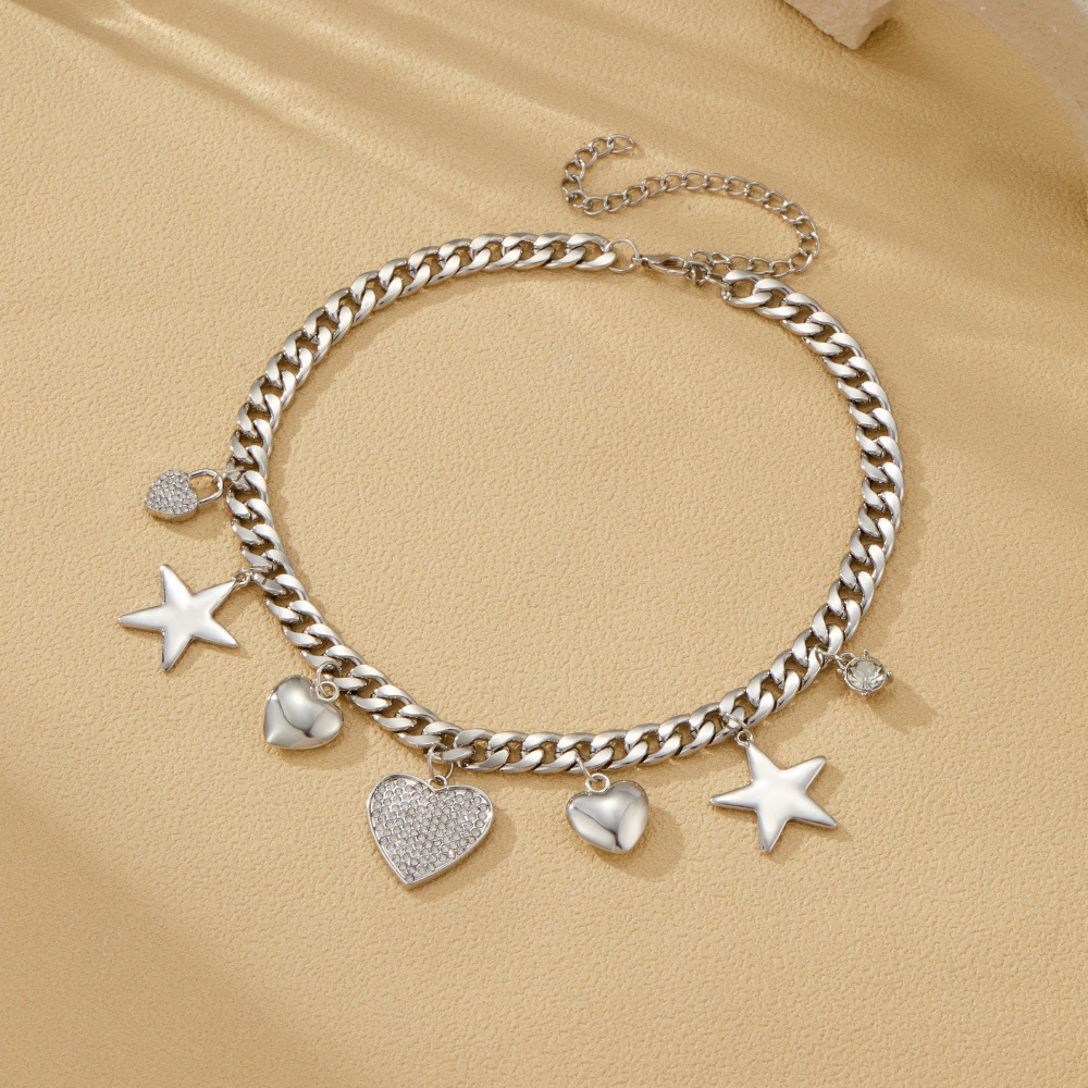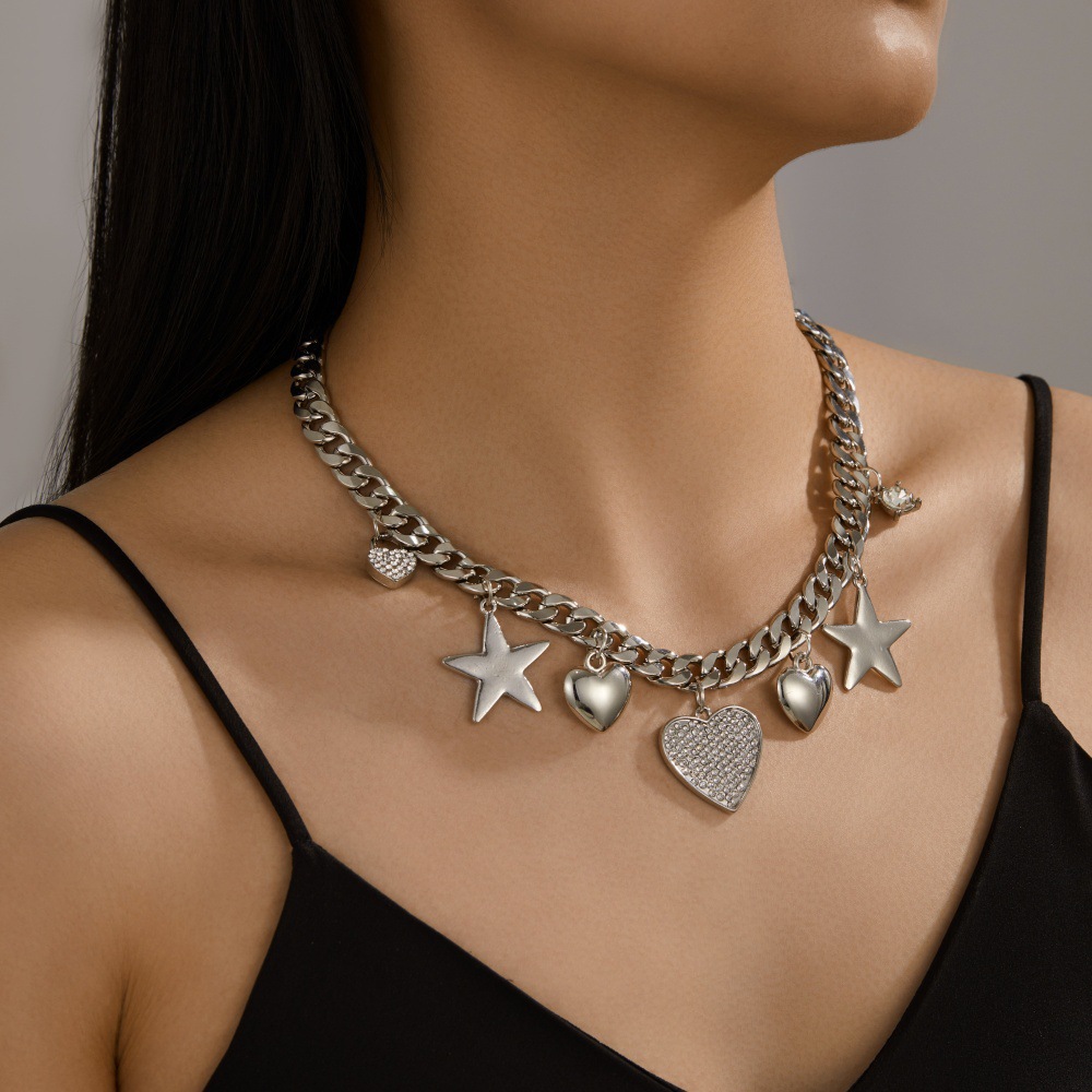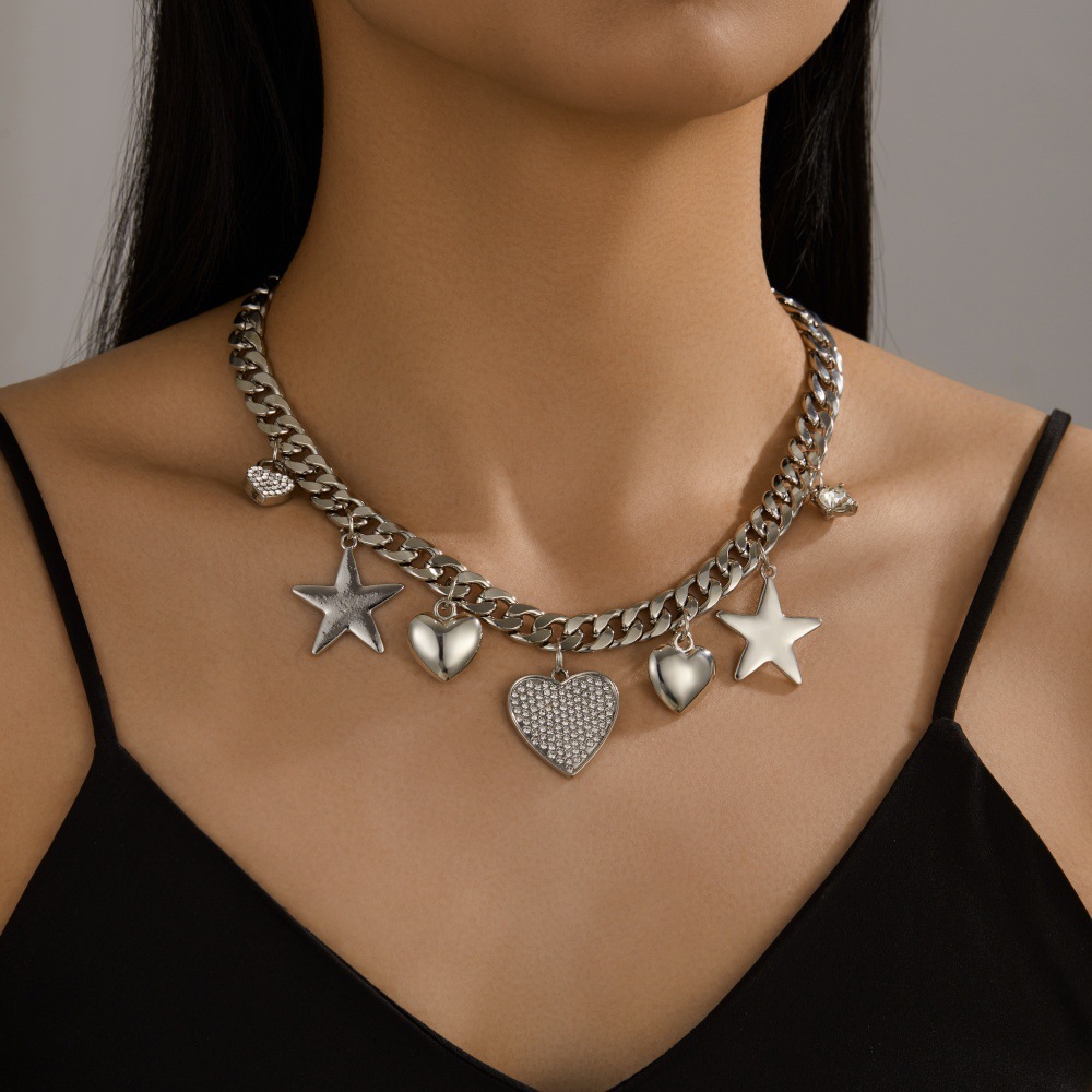 Популярные в Европе и Америке толстые ожерелья со сверкающими звездами и подвесками в виде сердечек, изысканные инкрустированные модные украшения для женщин.