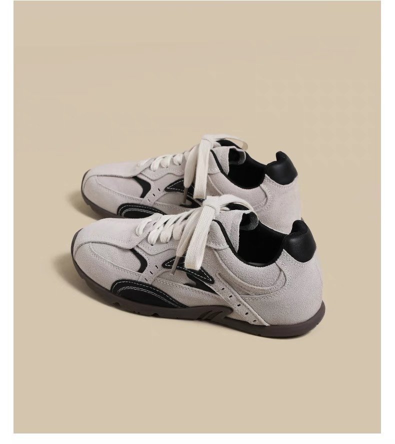 Женские моральные тренировочные туфли из натуральной кожи в стиле ретро с цветными блоками, новинка 2025 года, легкие универсальные повседневные туфли на плоской подошве из нубука на плоской подошве, универсальные повседневные туфли Forrest Gump