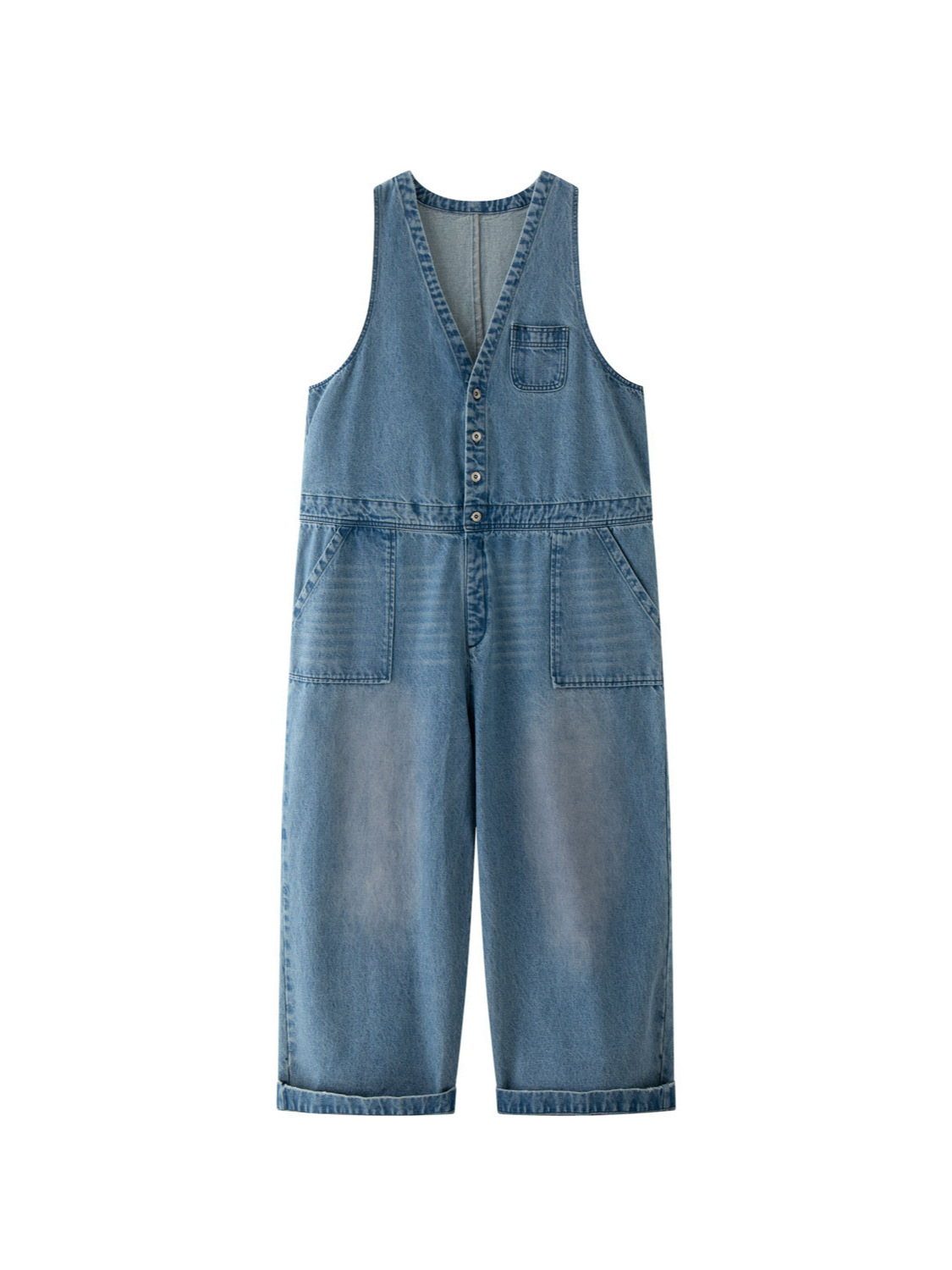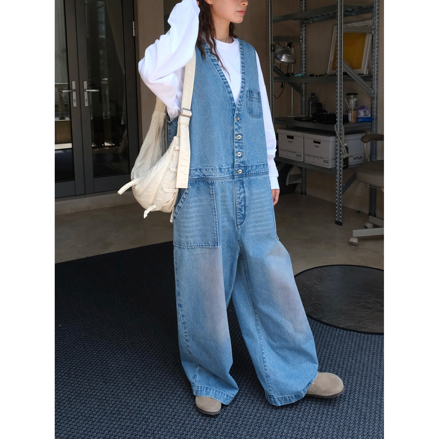 Осенние новые модные джинсовые комбинезоны в японском стиле, уменьшающие возраст, свободные, хрустящие, повседневные длинные брюки для женщин