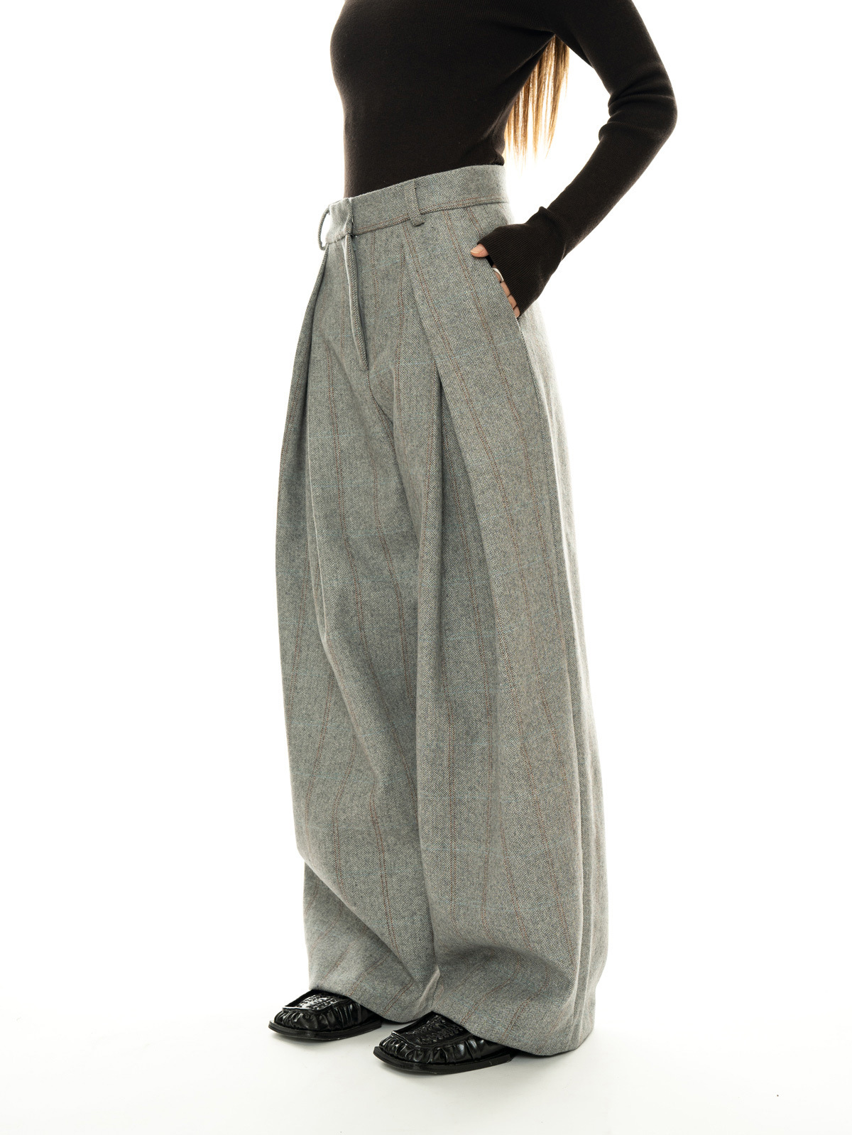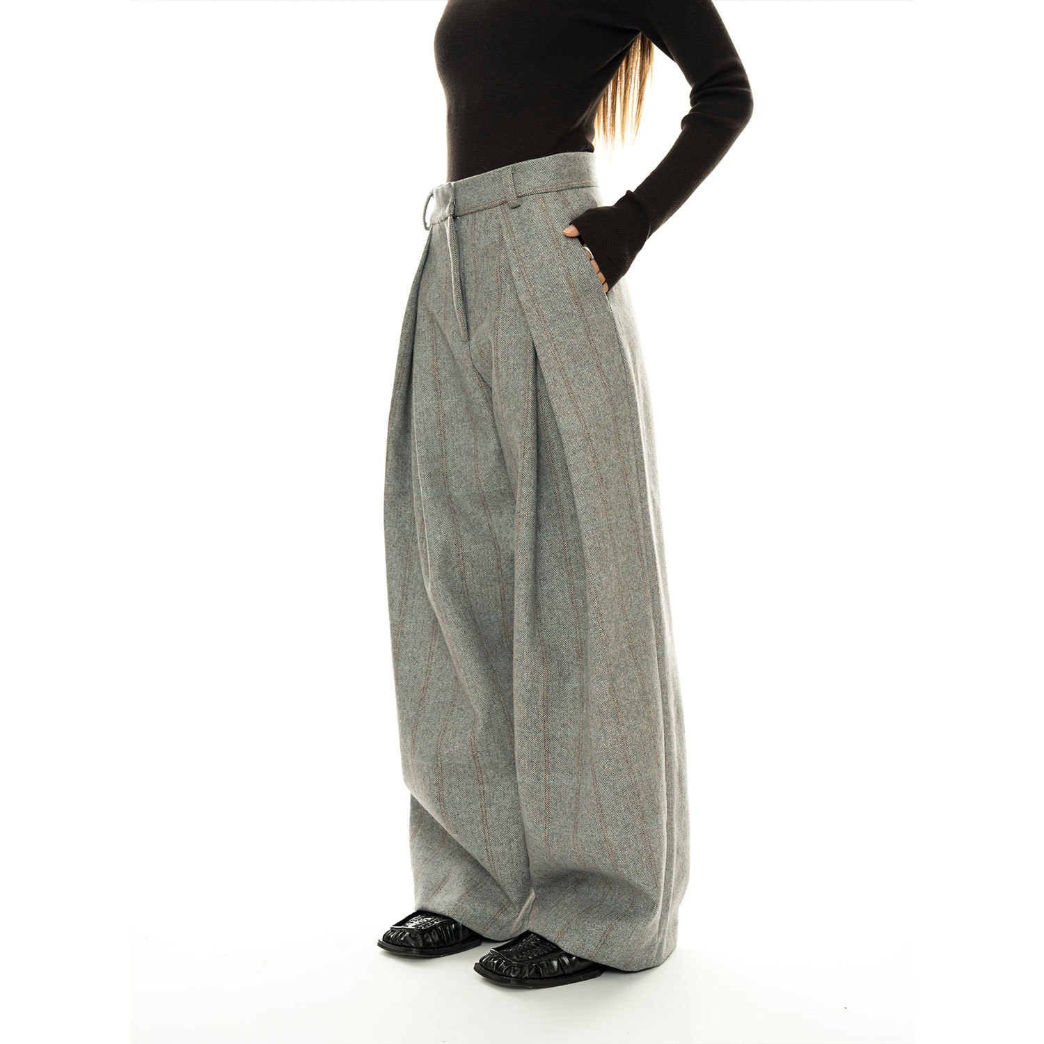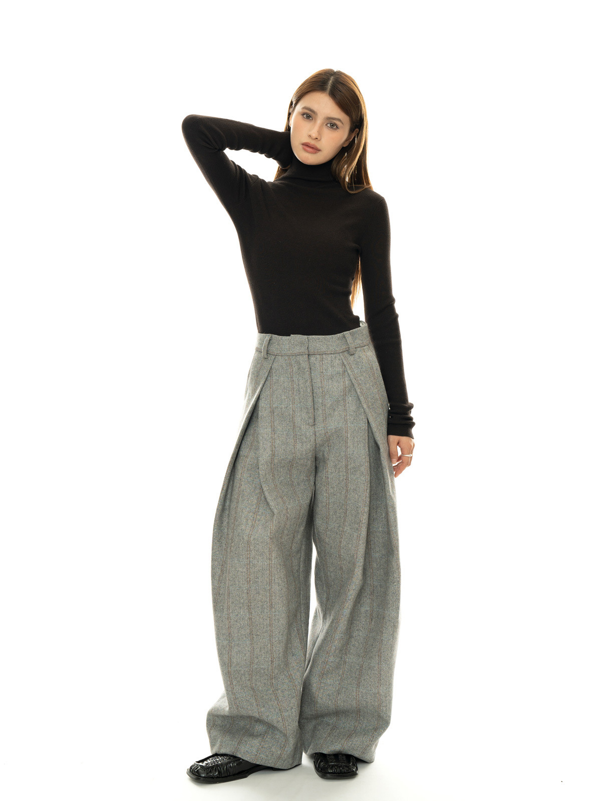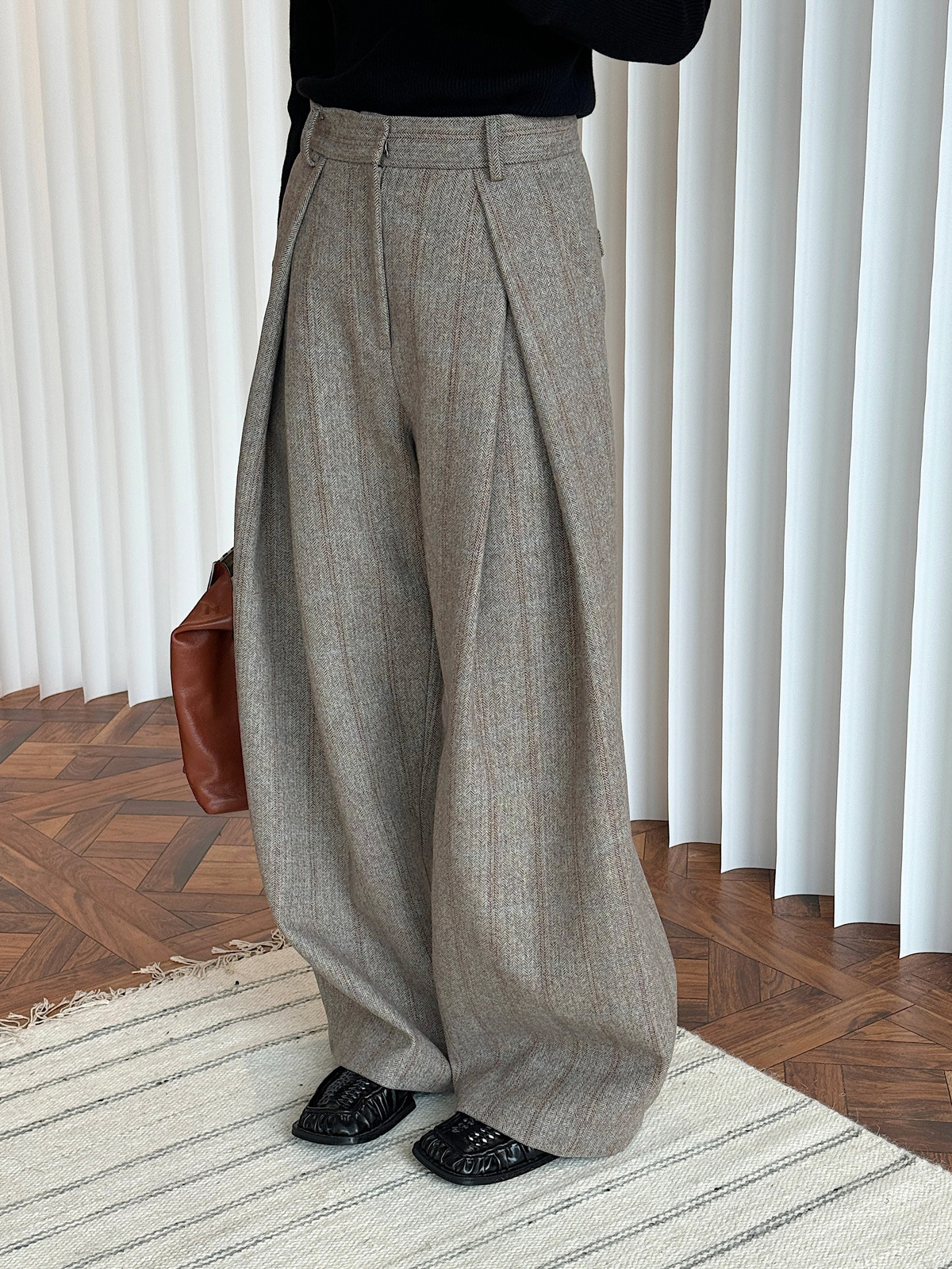 Тяжелые зимние новые французские ретро-шерстяные плиссированные брюки с высокой талией и широкими штанинами для женщин
