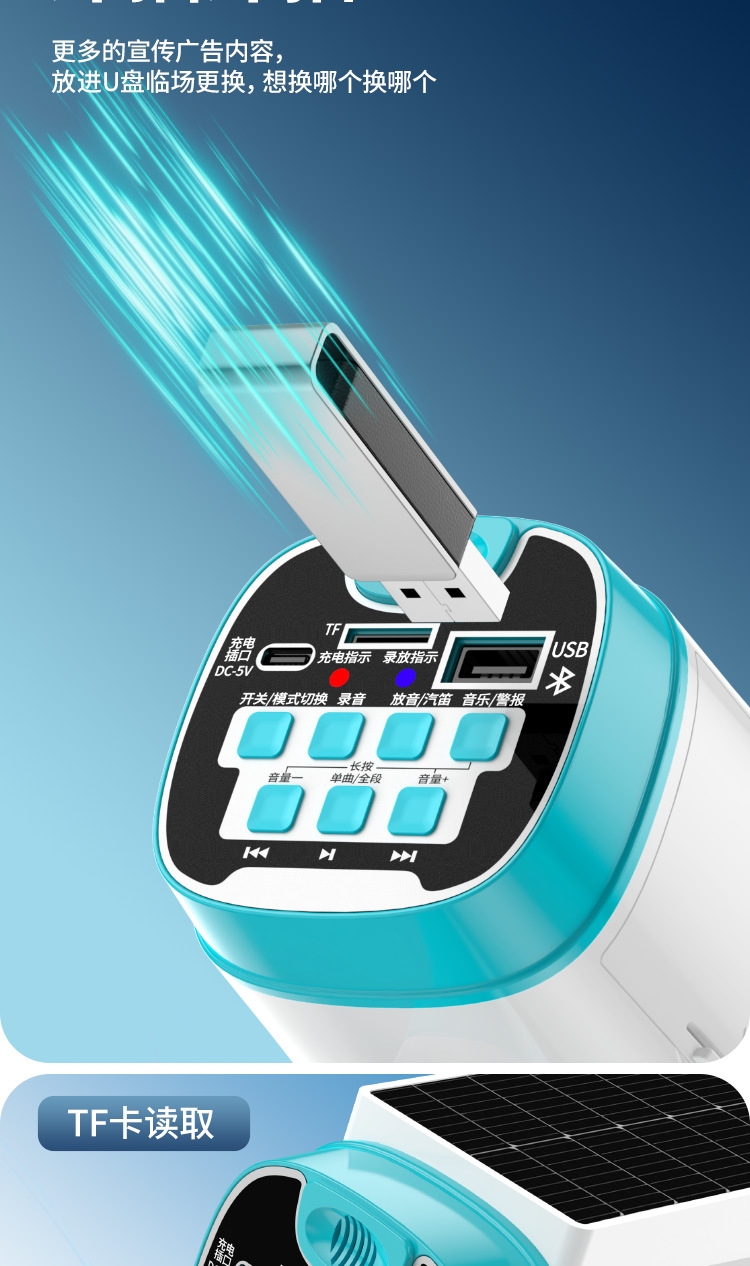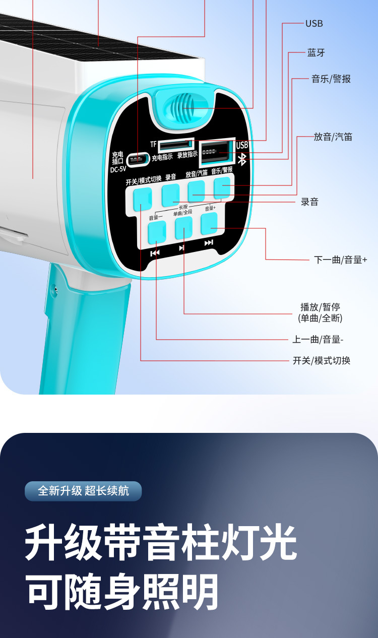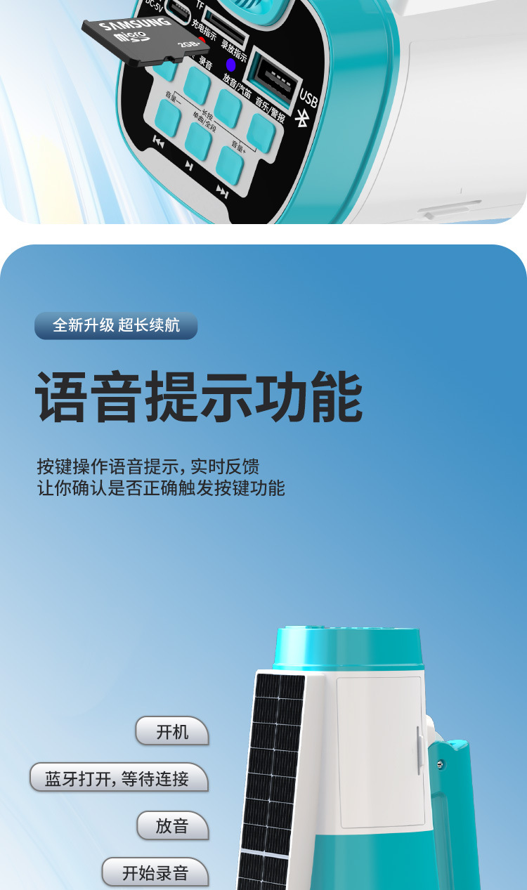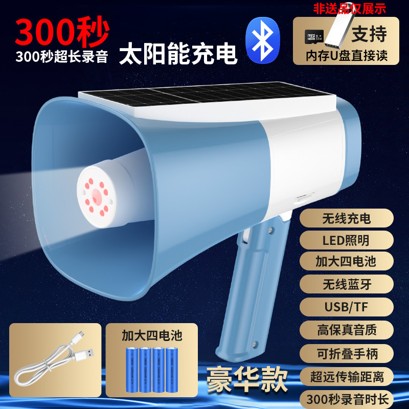 Новый портативный мегафон, который можно подключить к портативному солнечному усилителю Bluetooth, беспроводной динамик с записью 300 секунд