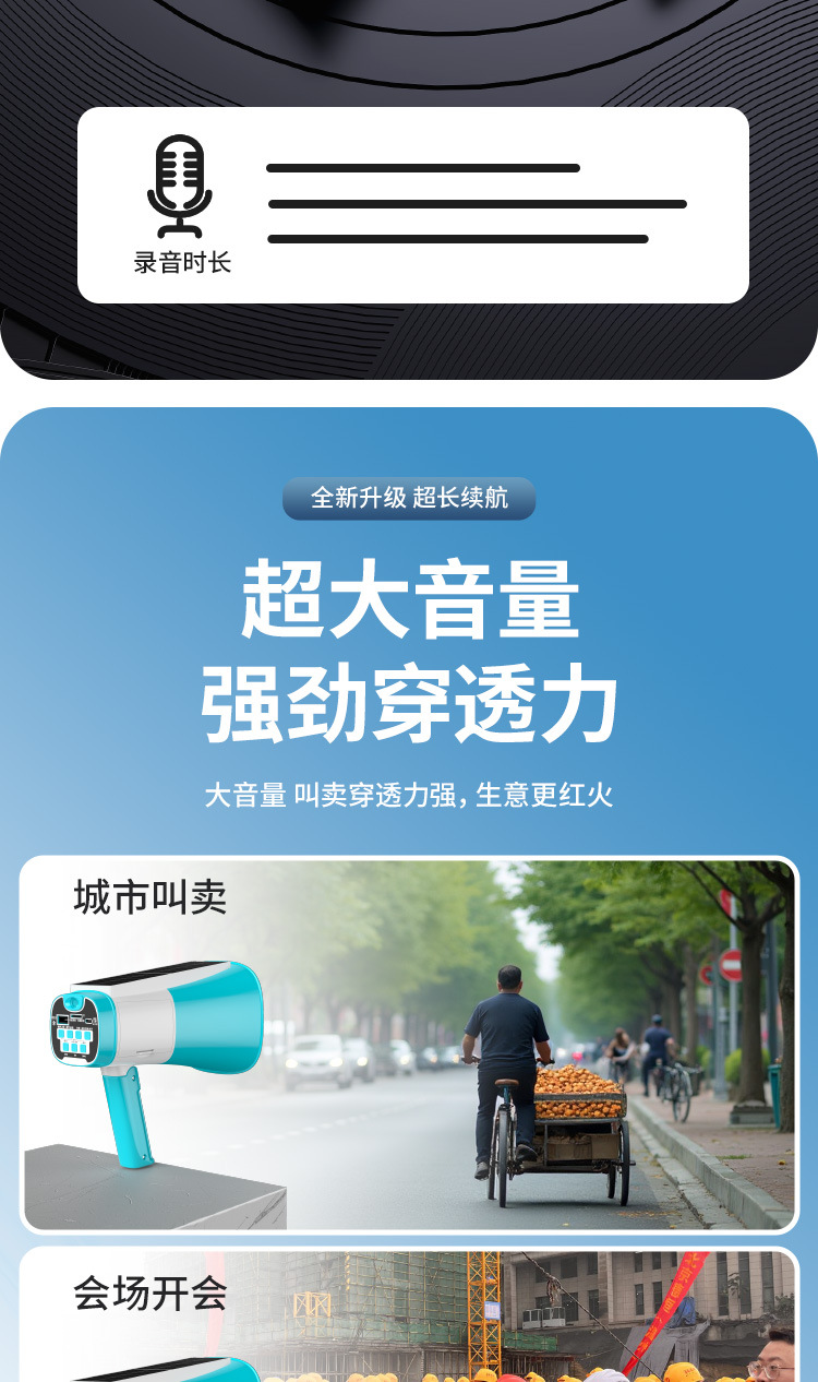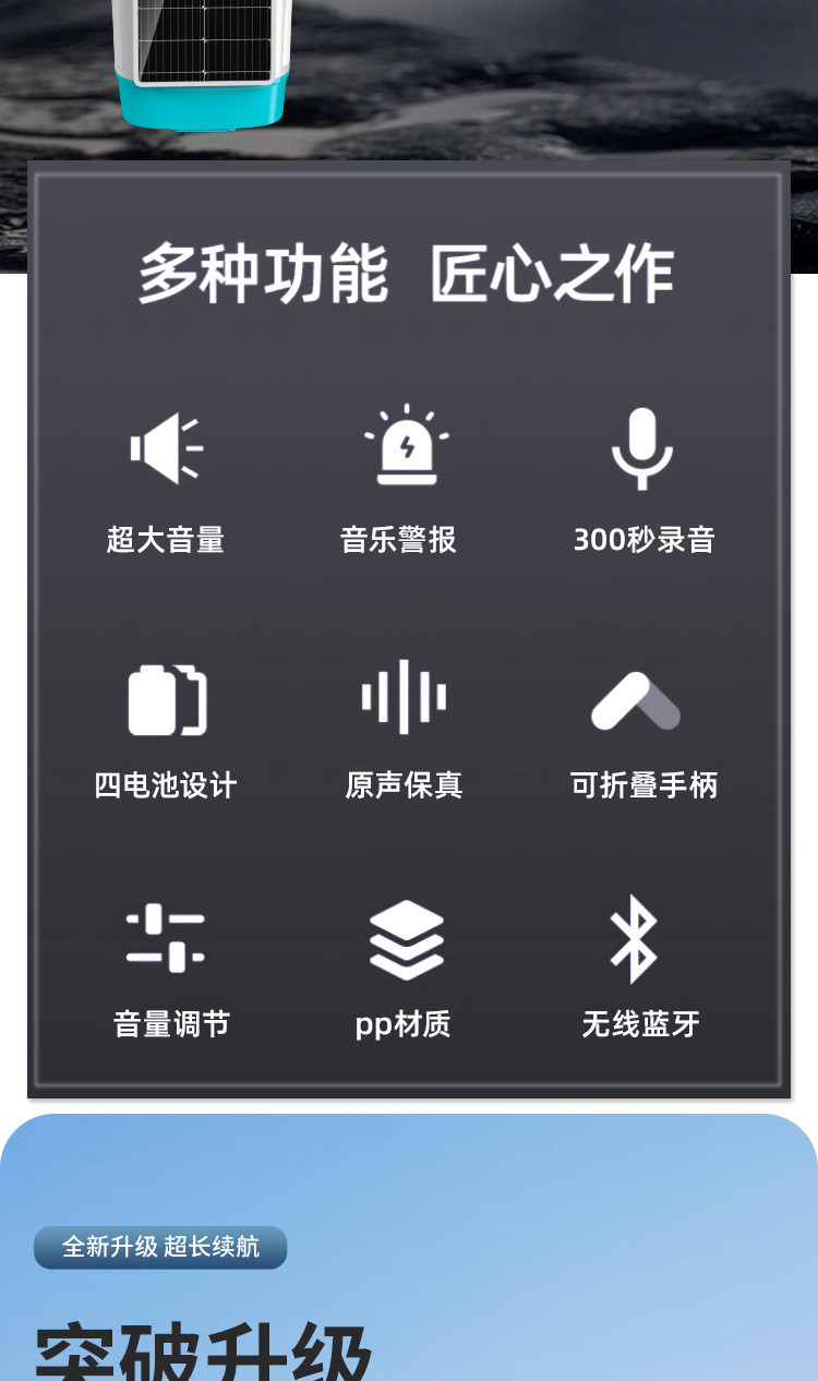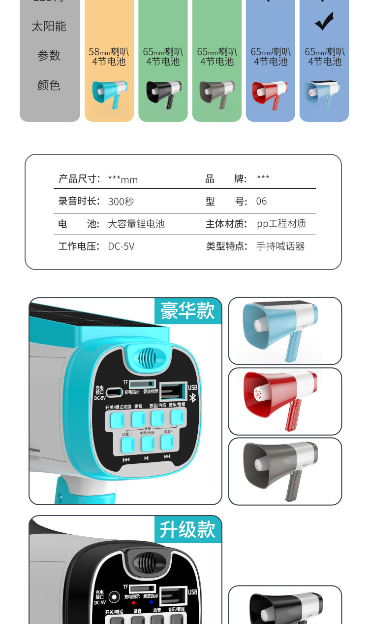 Новый портативный мегафон, который можно подключить к портативному солнечному усилителю Bluetooth, беспроводной динамик с записью 300 секунд