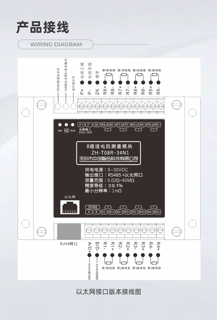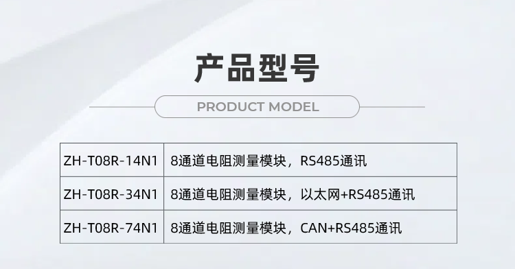 <<8-канальный входной интерфейс RS485 (новообновленная двухпроводная система) ZH-T08R-14N1>>; <<8-канальный вход Ethernet-связь (новообновленная двухпроводная система) ZH-T08R-34N1>>; <<8-канальный входной модуль измерения температуры термистора NTC ZH-T08NTC-14N1>>
