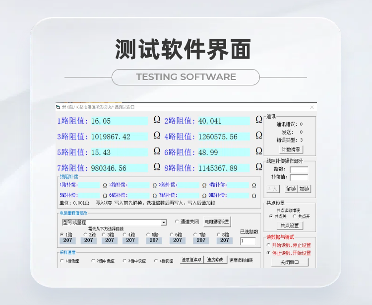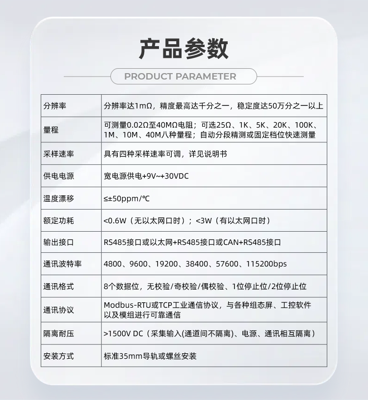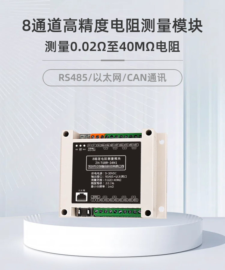 Высокоточный 8-канальный модуль измерения и обнаружения значения сопротивления от 20 мОм до 40 МОм. Связь RS485 или Ethernet.