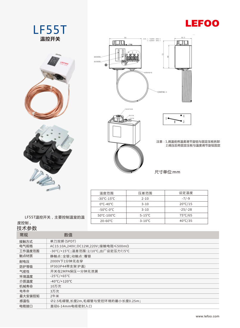 LF55T Регулируемый переключатель температуры 220 В-30 градусов, контроллер двигателя холодного хранения, контроллер переключателя антифриза