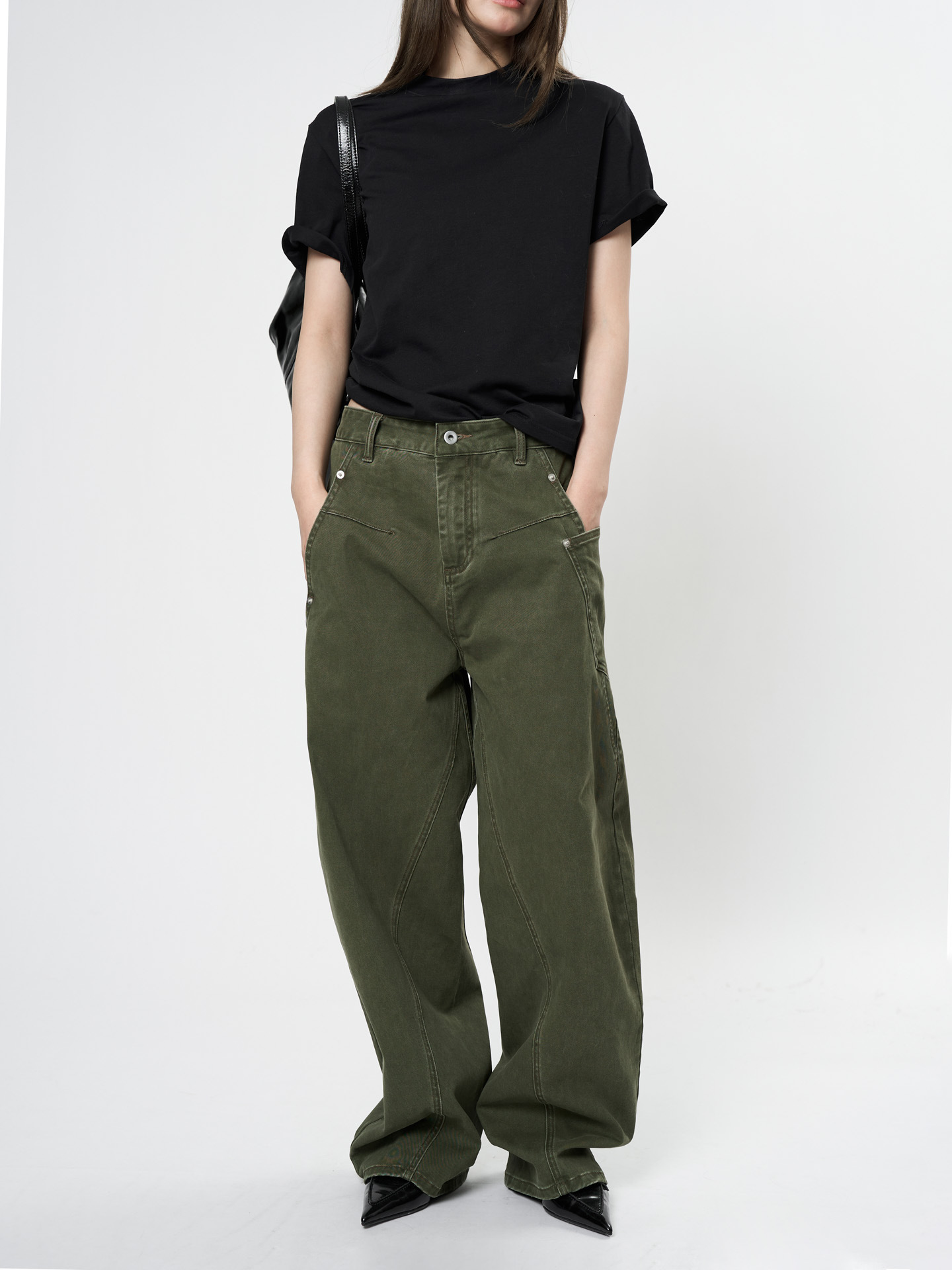 Ранняя весна, новые американские ретро брюки-карго с низкой талией, повседневные свободные брюки для похудения, зеленые брюки для женщин