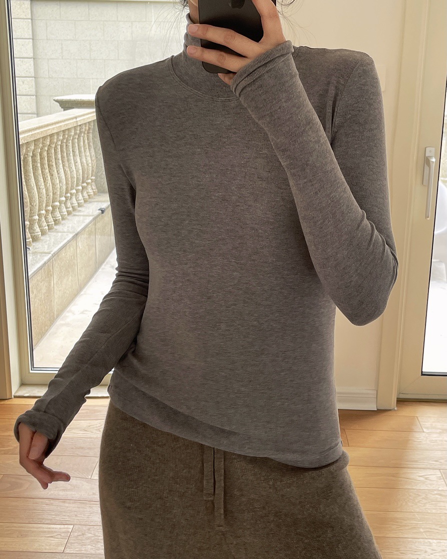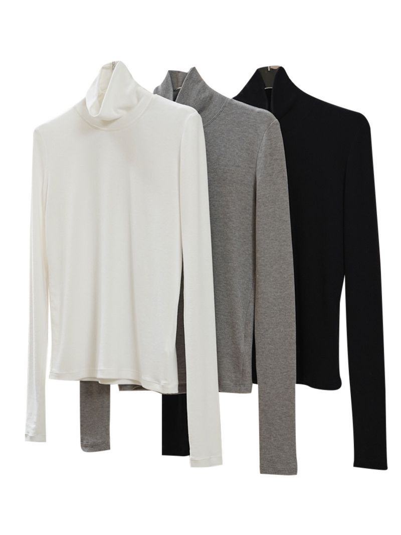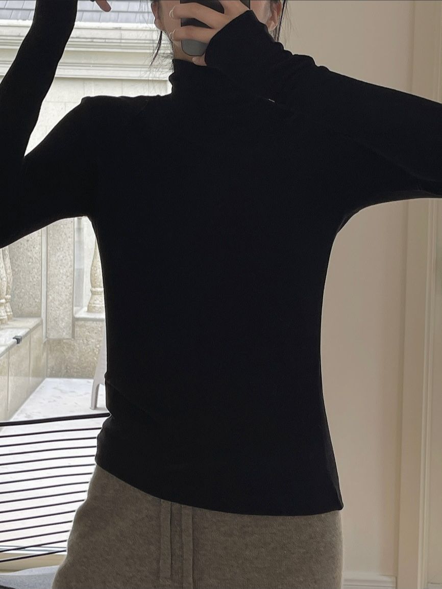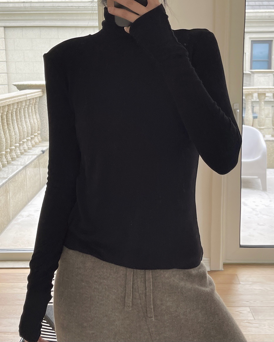 Осенне-зимняя новая футболка в корейском стиле в простом стиле с высоким воротником и длинными рукавами, мягкая и приятная для кожи, утягивающая повседневный внутренний топ для женщин
