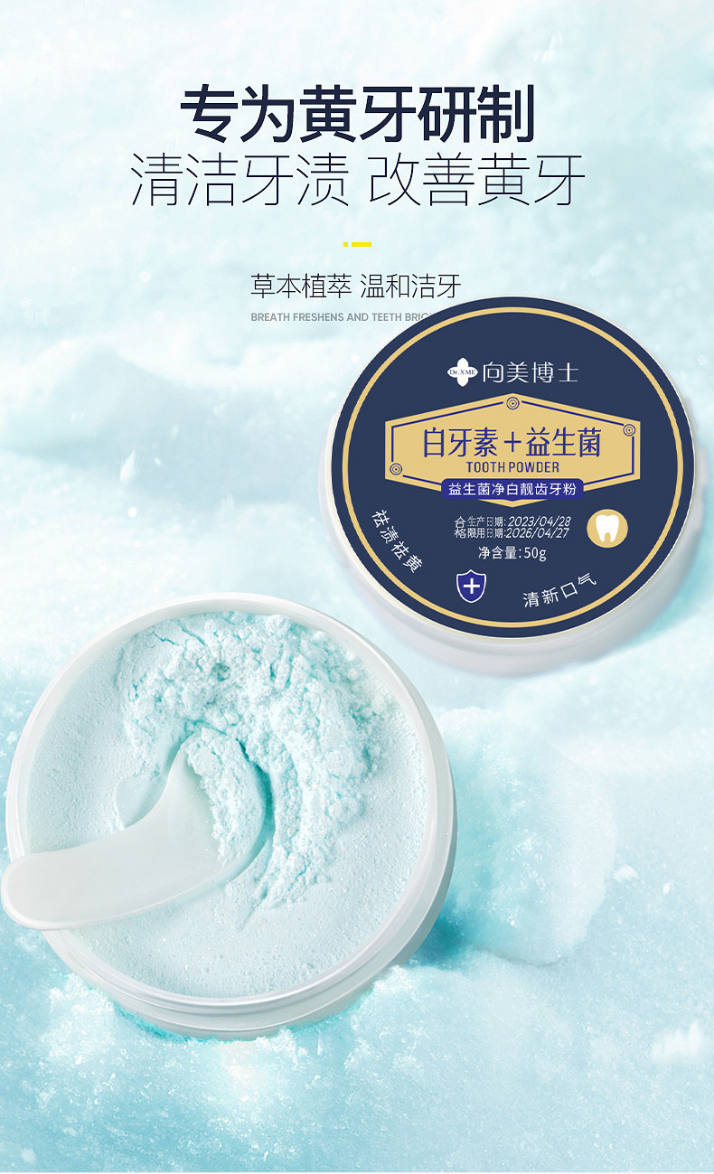 Пробиотический зубной порошок доктора Сяньмей отбеливает зубы, отбеливающий зубной порошок, пробиотическая зубная паста удаляет желтые следы дыма и зубной камень.