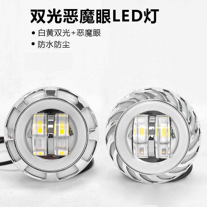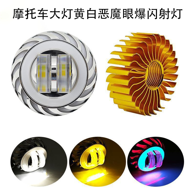Мотоциклетная светодиодная фара «Дьявольский глаз» для трансграничной торговли, желто-белая мигающая, со встроенным модифицированным прожектором