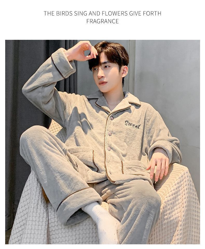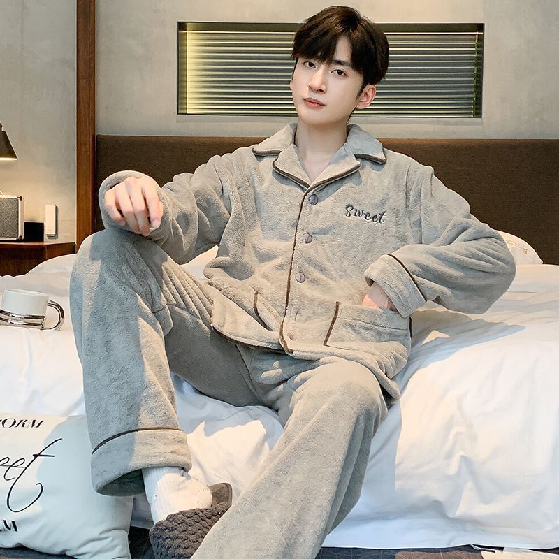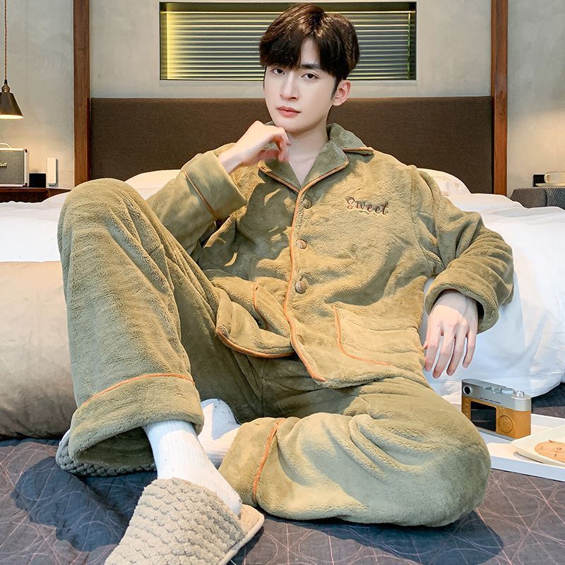Мужской зимний пижамный комплект из кораллового вельвета, утолщенный, теплый, для подростков и мальчиков.