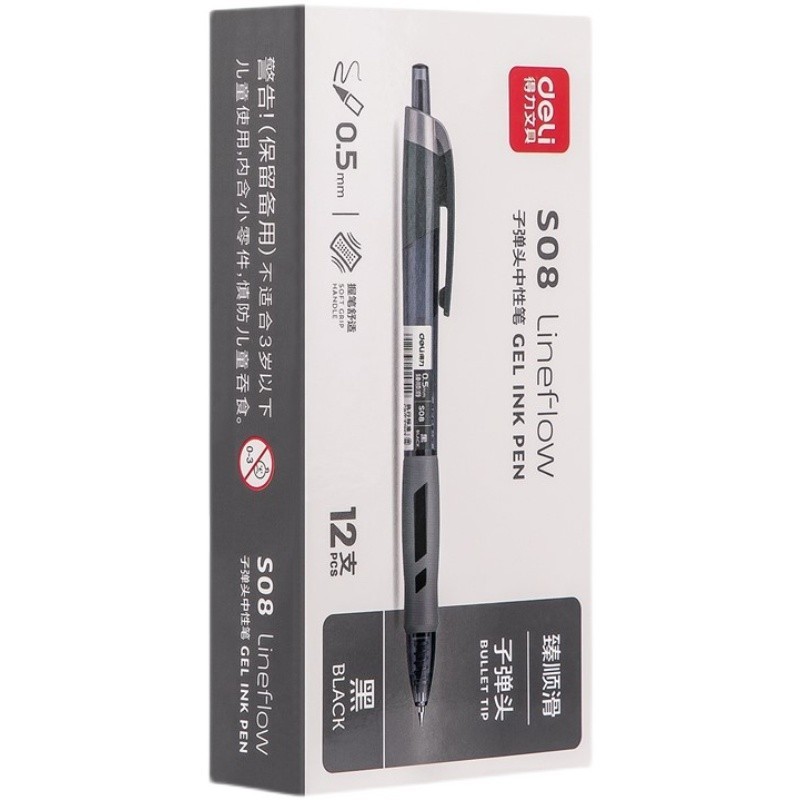 Deli S08 Выдвижная гелевая ручка Студенческая ручка для экзаменов с пуленосным наконечником Чернильная ручка с черными чернилами Офисная ручка для подписи Канцелярские принадлежности для учебы.