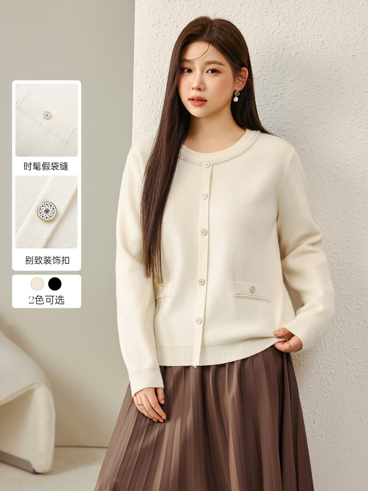 [Нежный элегантный] Тонкий и красивый женский универсальный пуловер больших размеров с круглым вырезом, трикотаж для полных мм, осенний стиль QJ3500