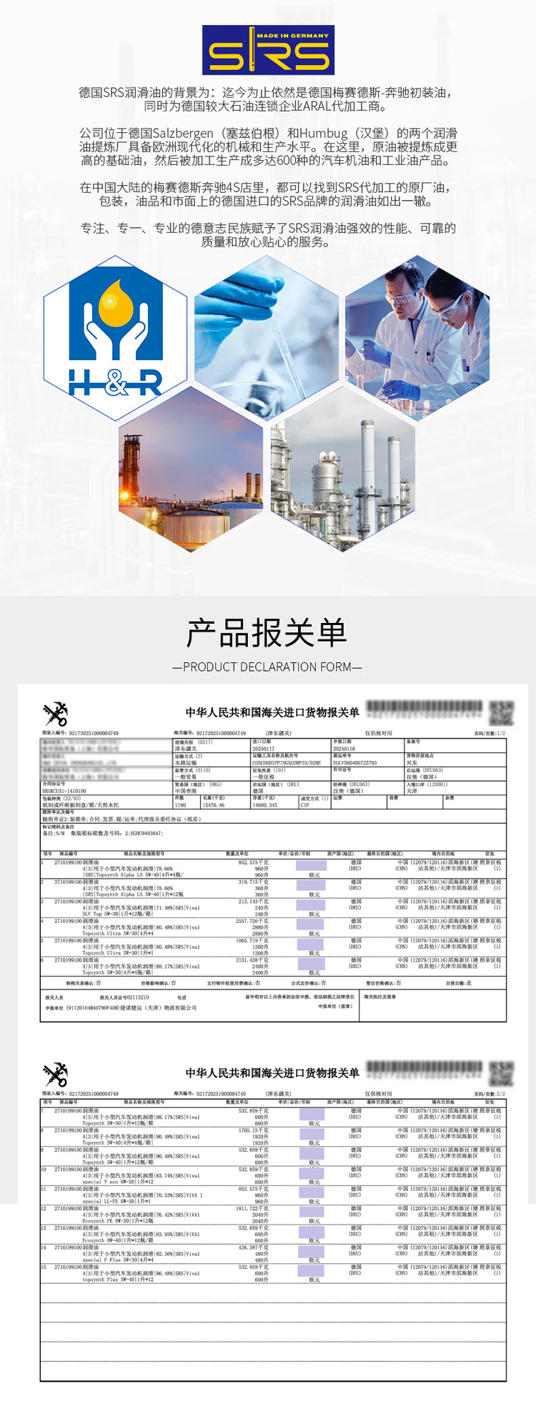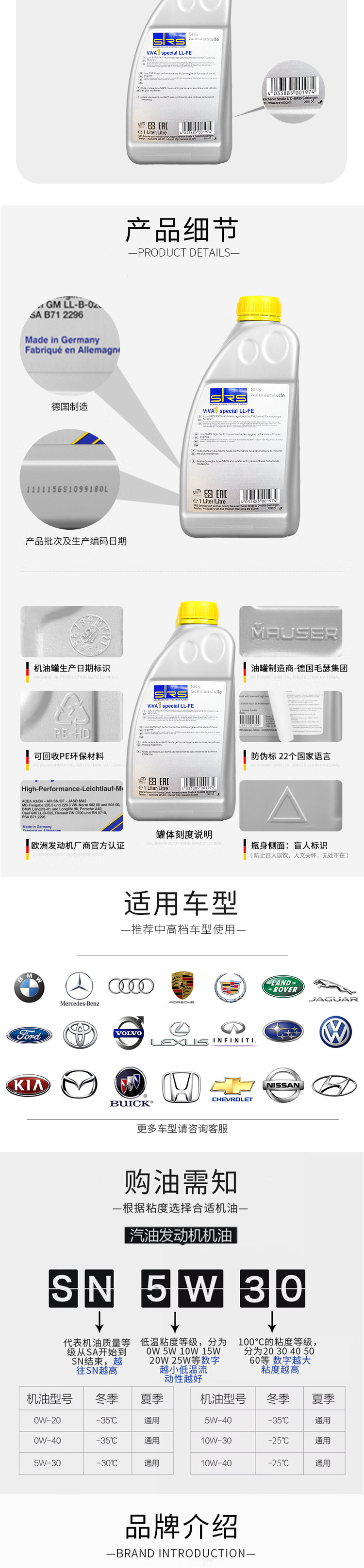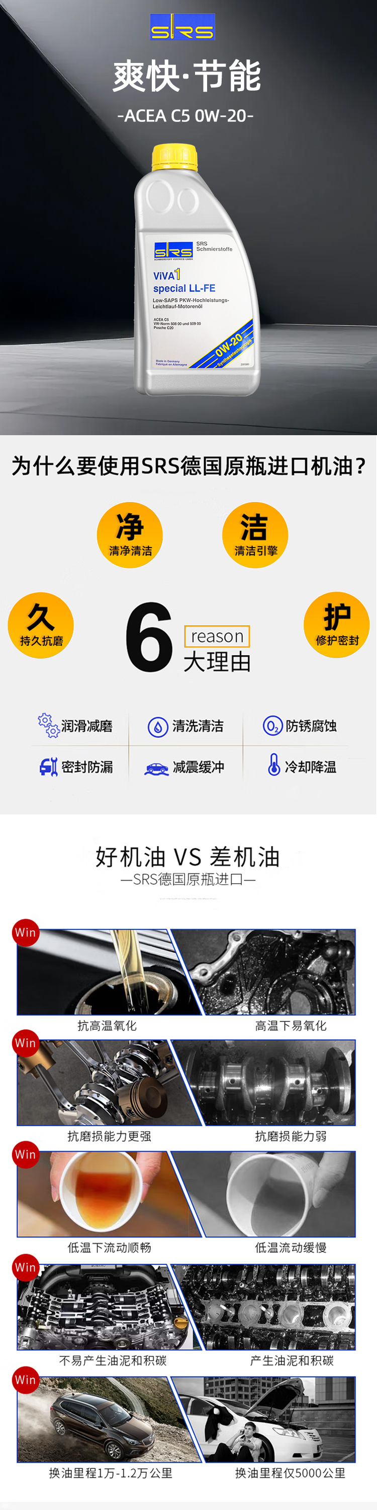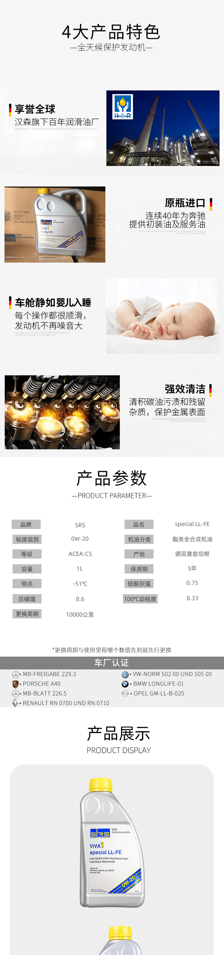 SRS Германия импортирует автомобильное масло 0W-20 полный синтетический 0W20 1L