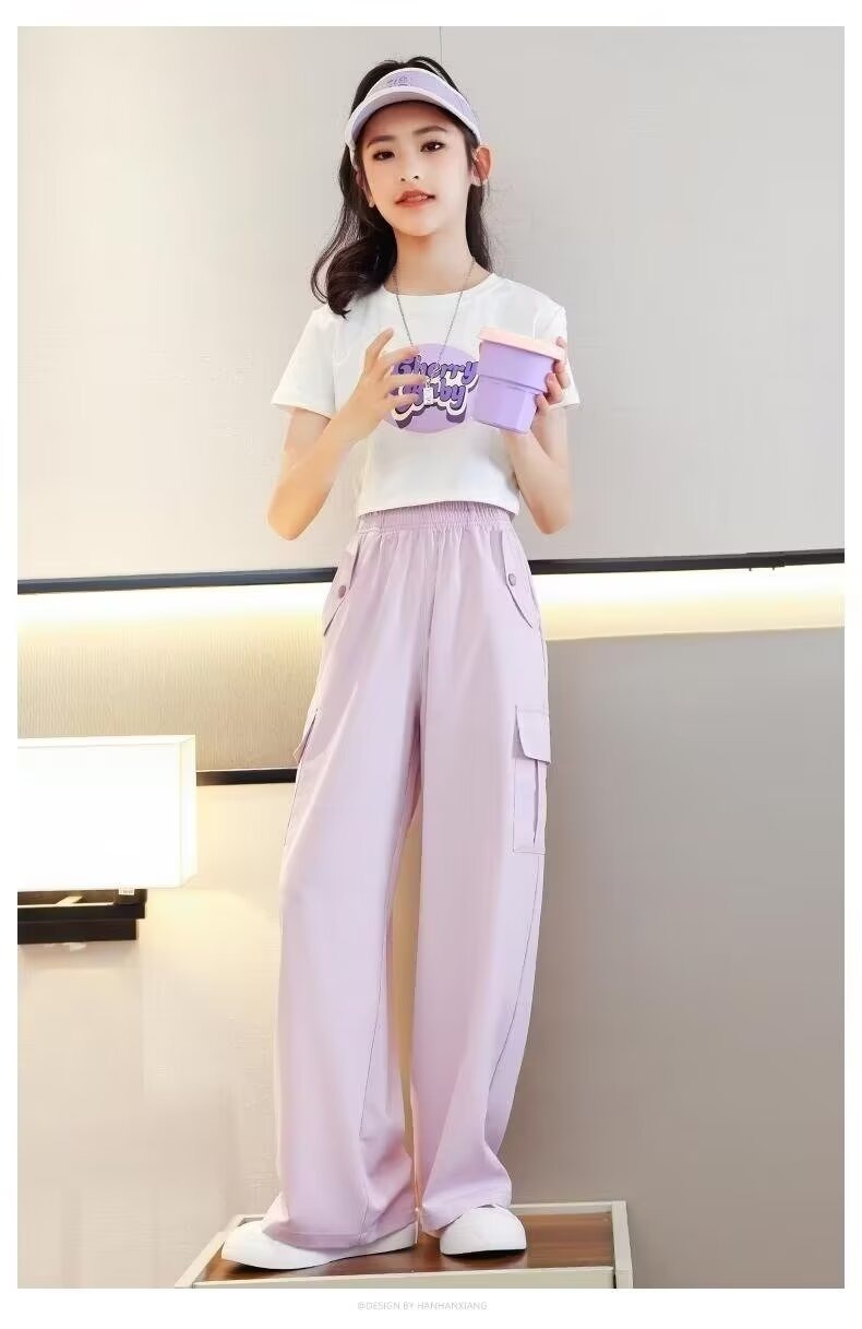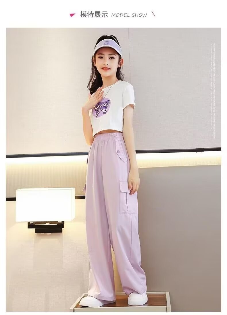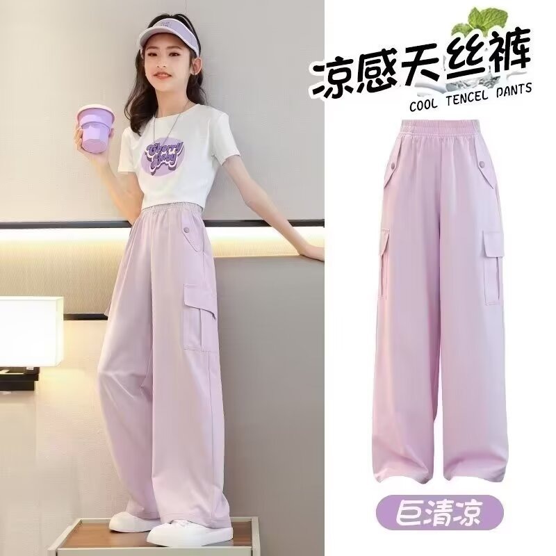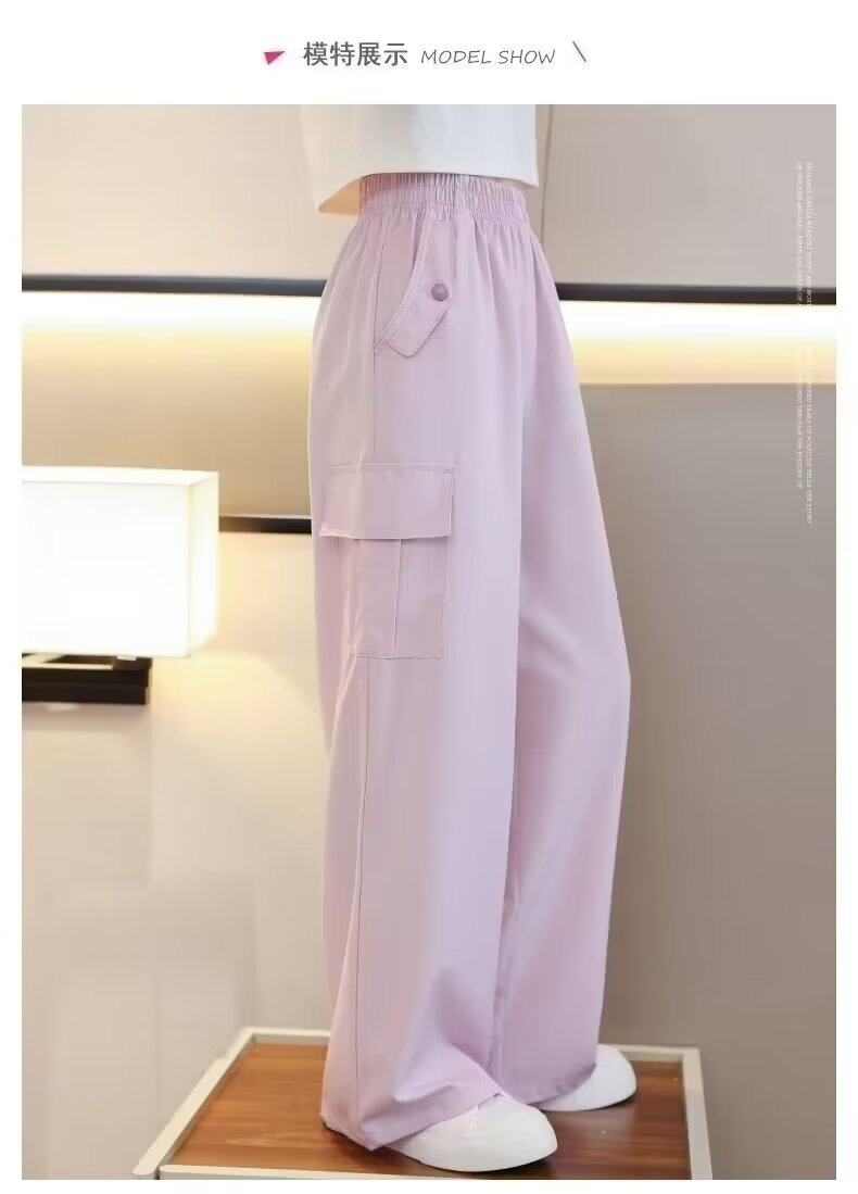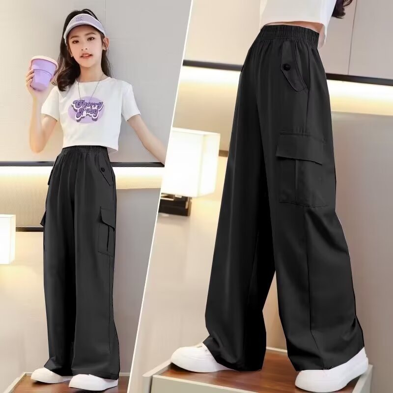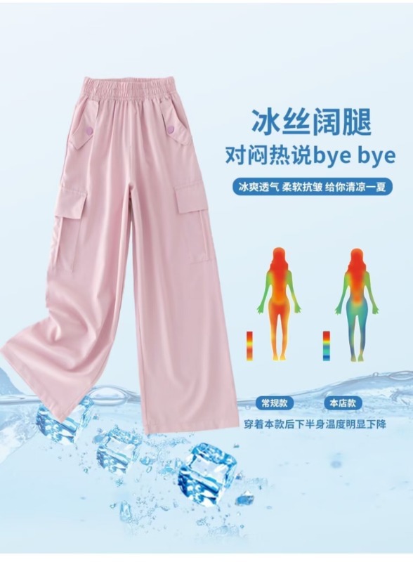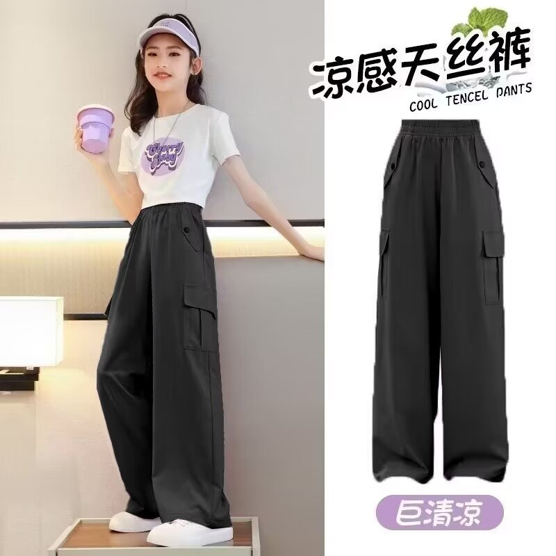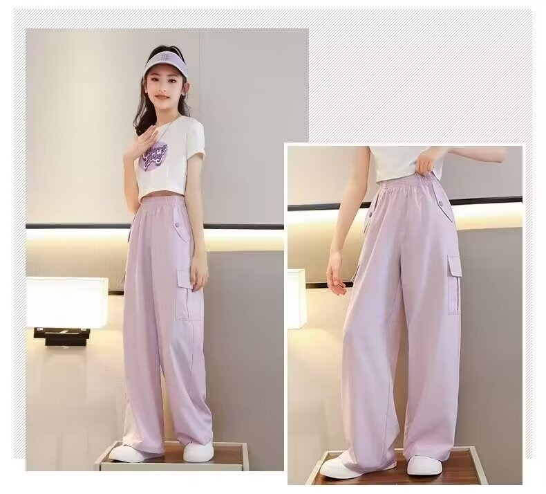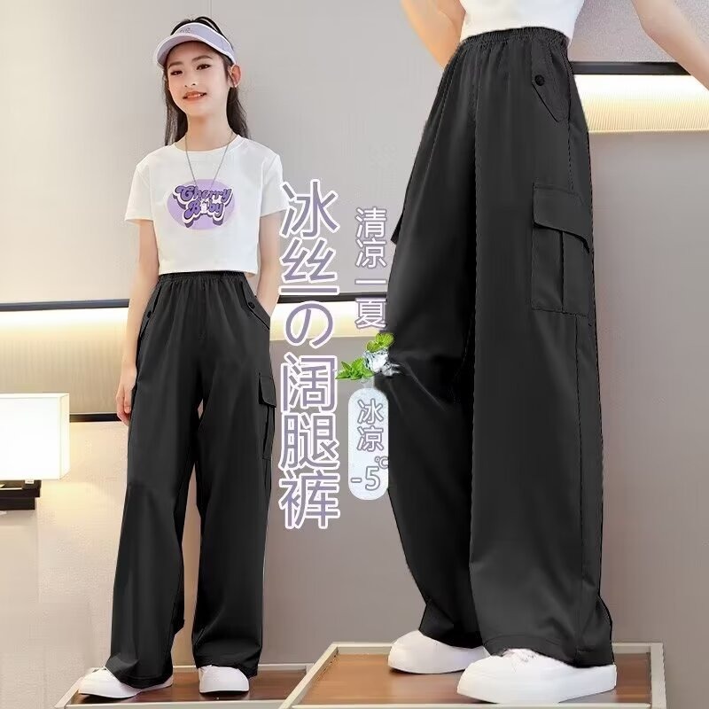 Летние широкие брюки для девочек, детские брюки, брюки-карго из ледяного шелка, новые брюки с защитой от комаров для девочек старшего возраста, летние повседневные длинные брюки