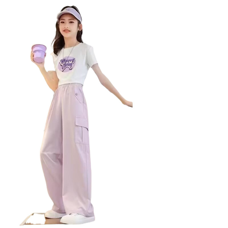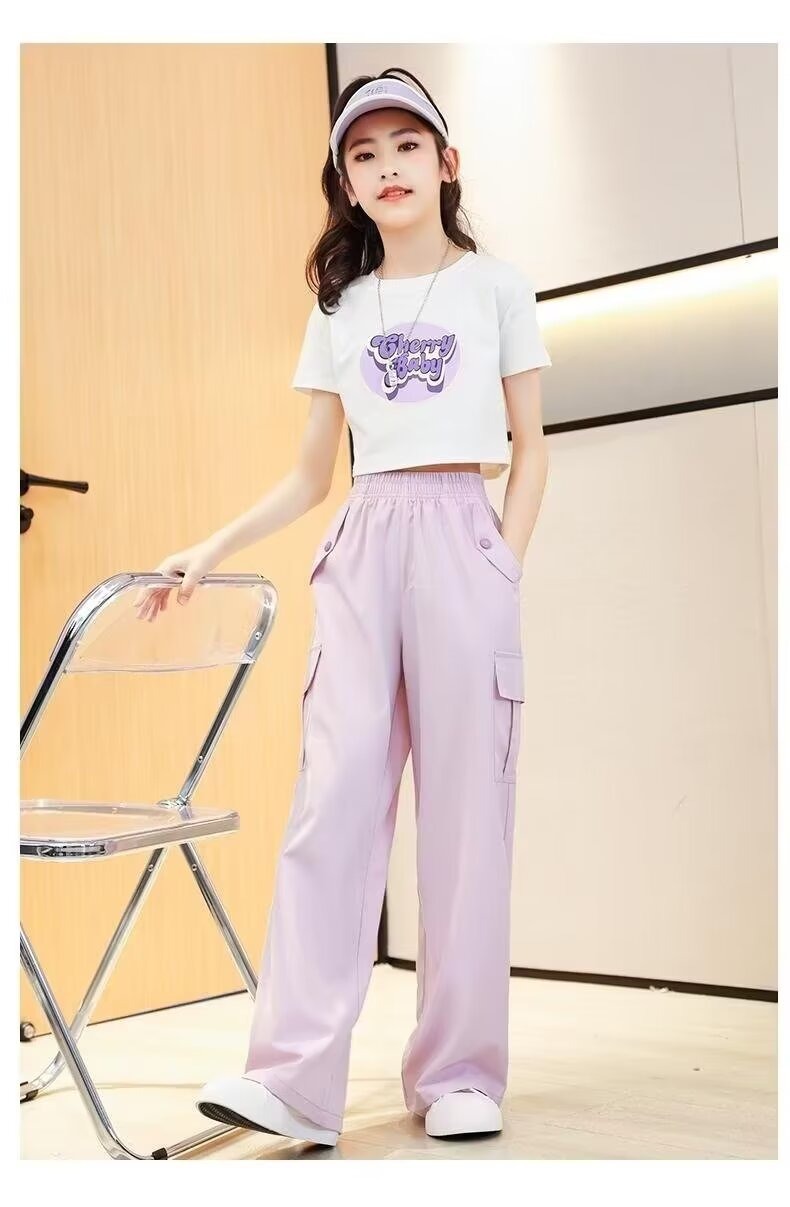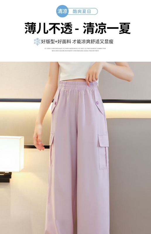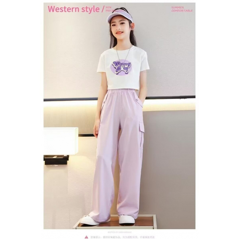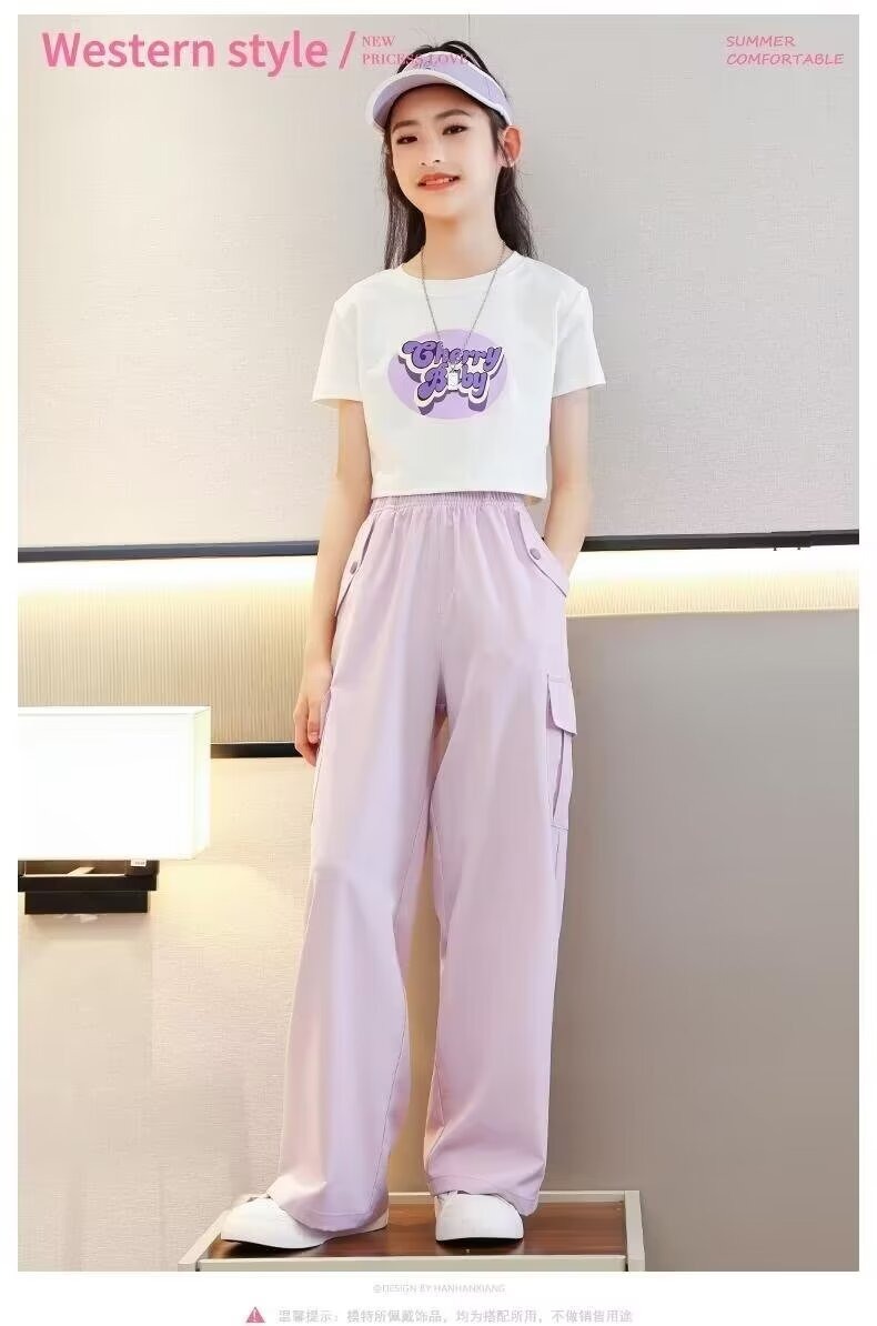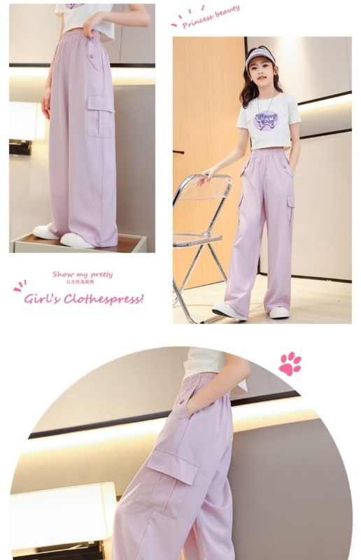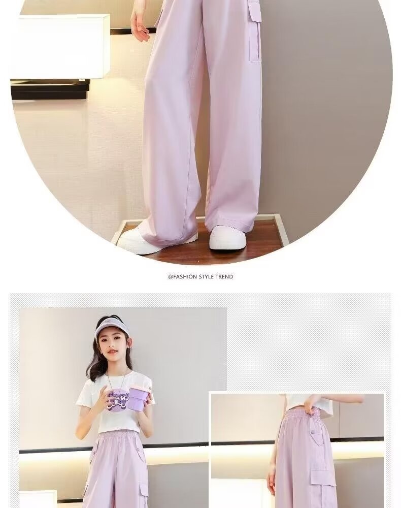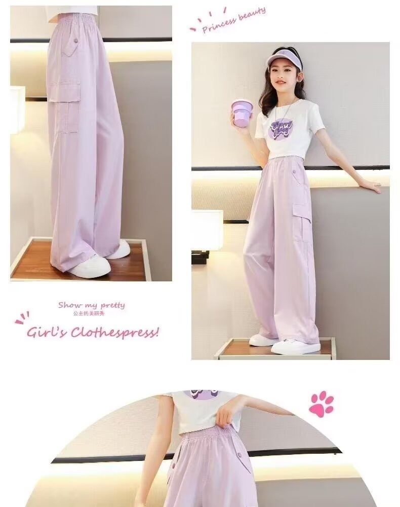 Летние широкие брюки для девочек, детские брюки, брюки-карго из ледяного шелка, новые брюки с защитой от комаров для девочек старшего возраста, летние повседневные длинные брюки