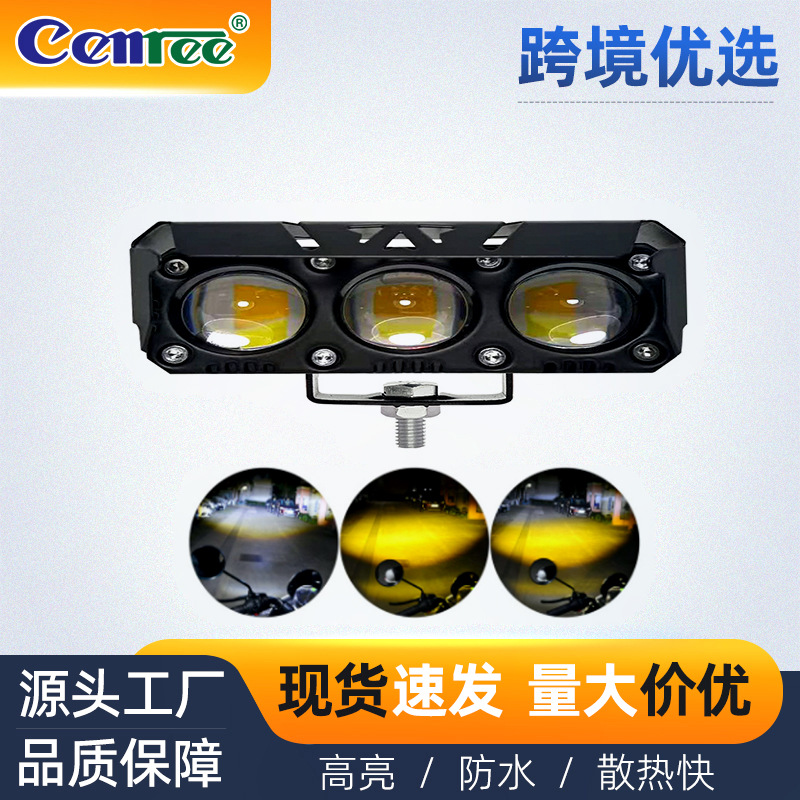 Хит продаж, 3-бусиный желтый и белый двухцветный светодиодный фонарь для мотоцикла, модифицированный прожектор для внедорожников, водонепроницаемый фонарь для мотоцикла