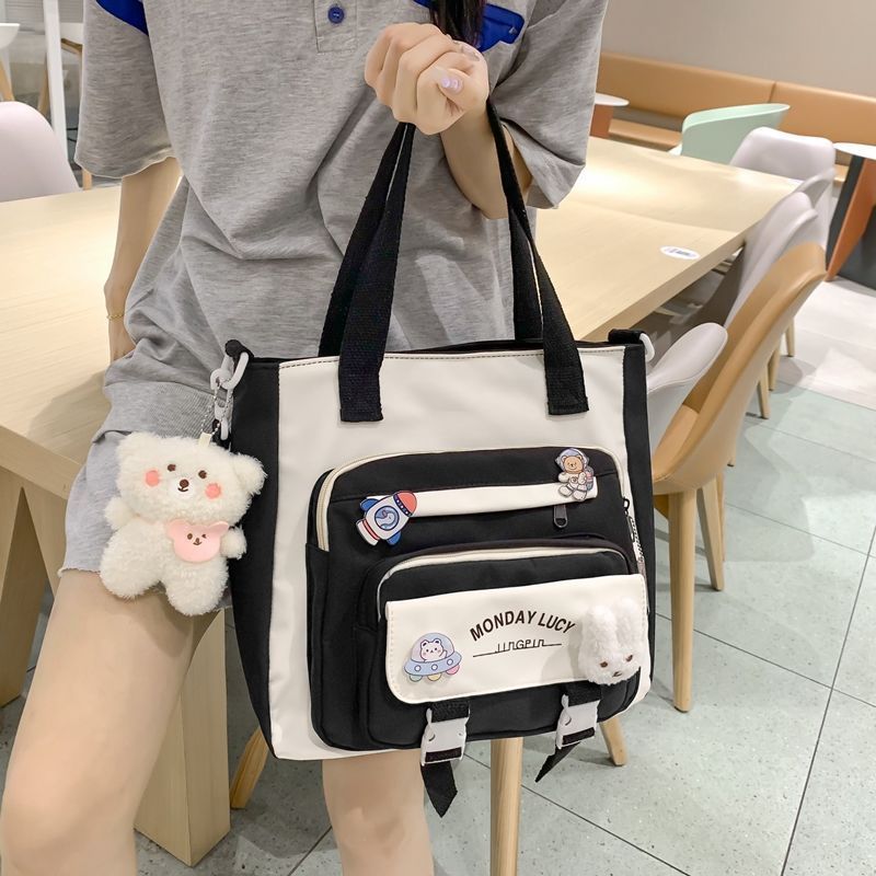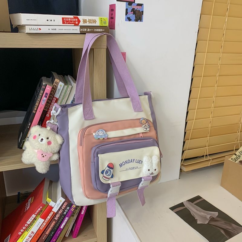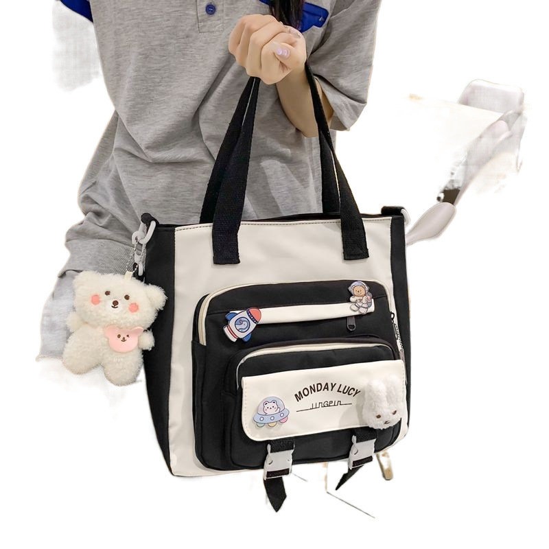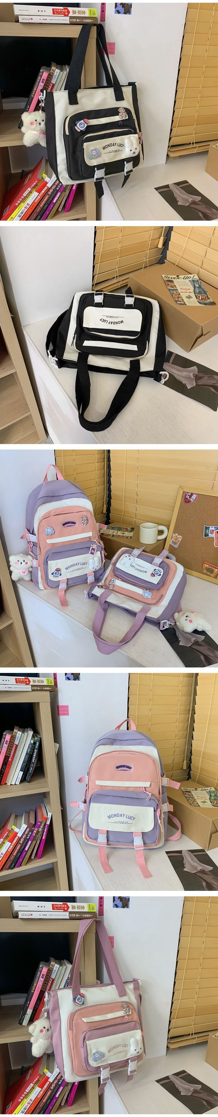 Черная сумка через плечо с 4 значками и 1 медвежонком.; Синяя сумка через плечо с 4 значками и 1 медвежонком.; Фиолетовая сумка через плечо с 4 значками и 1 медвежонком.; Розовая сумка через плечо с 4 значками и 1 медвежонком.; Черный рюкзак с 4 значками и 1 медведем.; Синий рюкзак с 4 значками и 1 медведем.; Фиолетовый рюкзак с 4 значками и 1 медведем.; Рюкзак розового цвета с 4 значками и 1 медвежонком.; Черный комплект из двух предметов с 8 значками и 1 медведем.; Синий комплект из двух предметов с 8 значками и 1 медведем.; Фиолетовый комплект из двух предметов с 8 значками и 1 медвежонком.; Розовый комплект из двух предметов с 8 значками и 1 медвежонком.