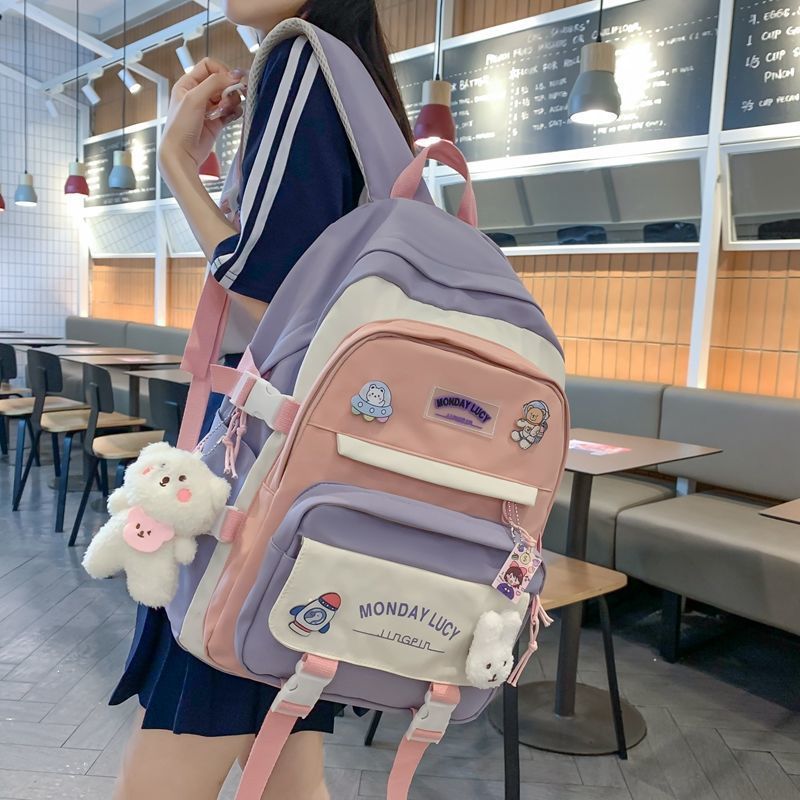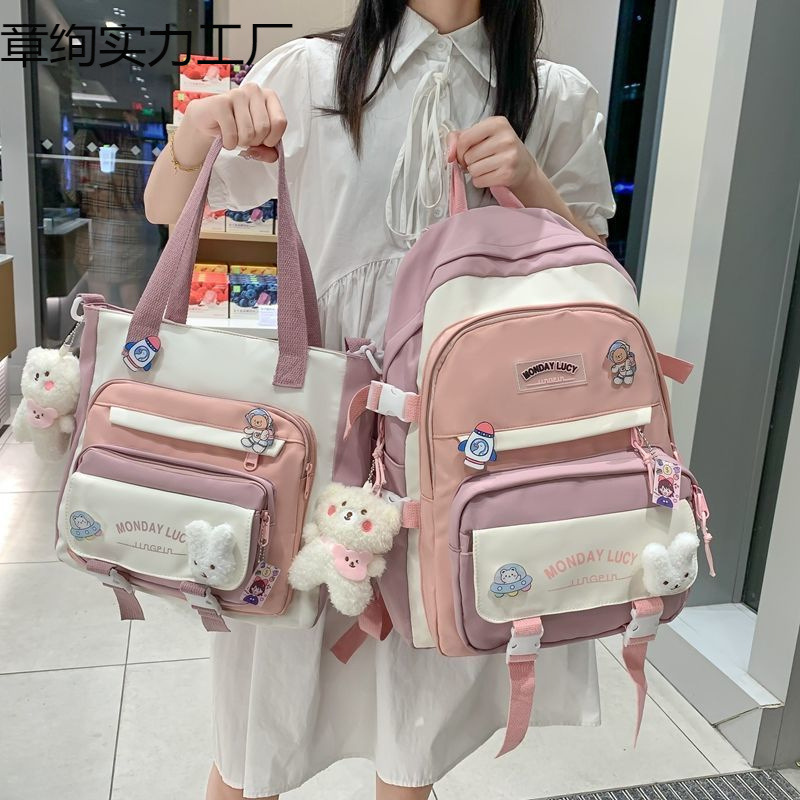 Свежий и простой прочный рюкзак в стиле Ins для учащихся начальной и средней школы, новый рюкзак большой вместимости для девочек четвертого класса.