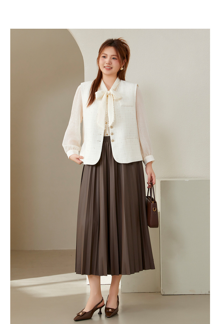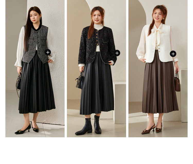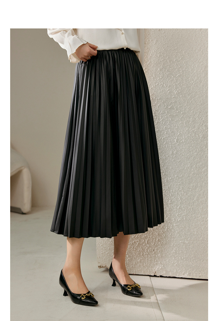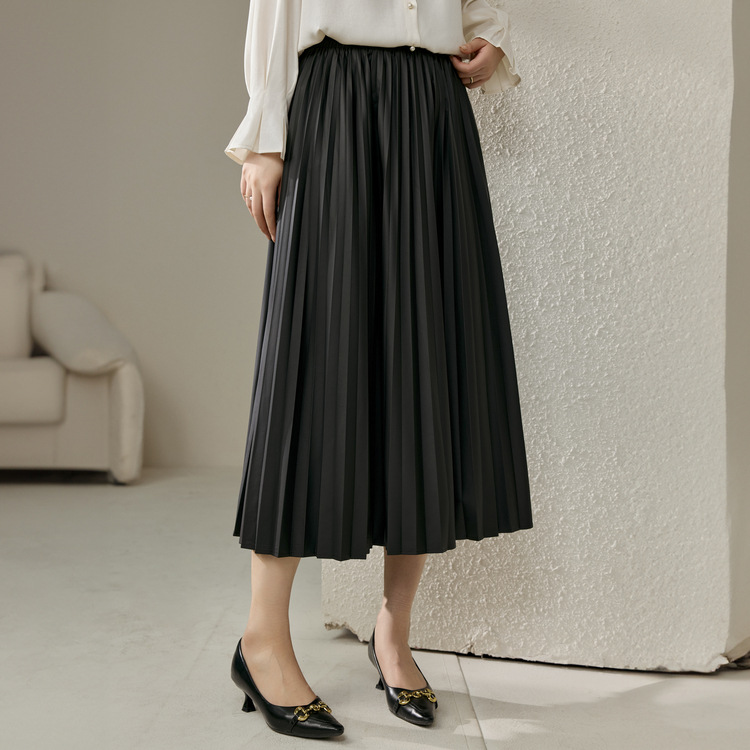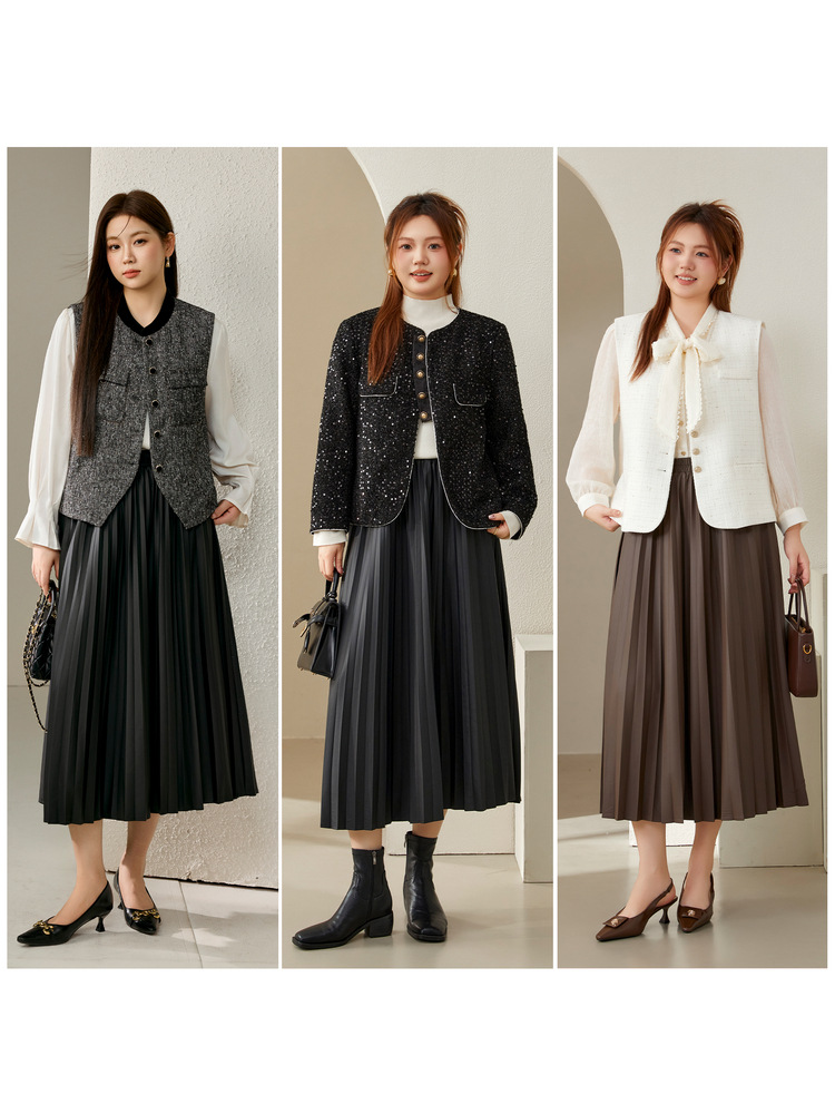 Женская элегантная трехмерная плиссированная утягивающая юбка из искусственной кожи больших размеров для полных женщин, новая коллекция осени 2024 года.