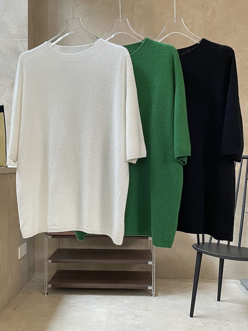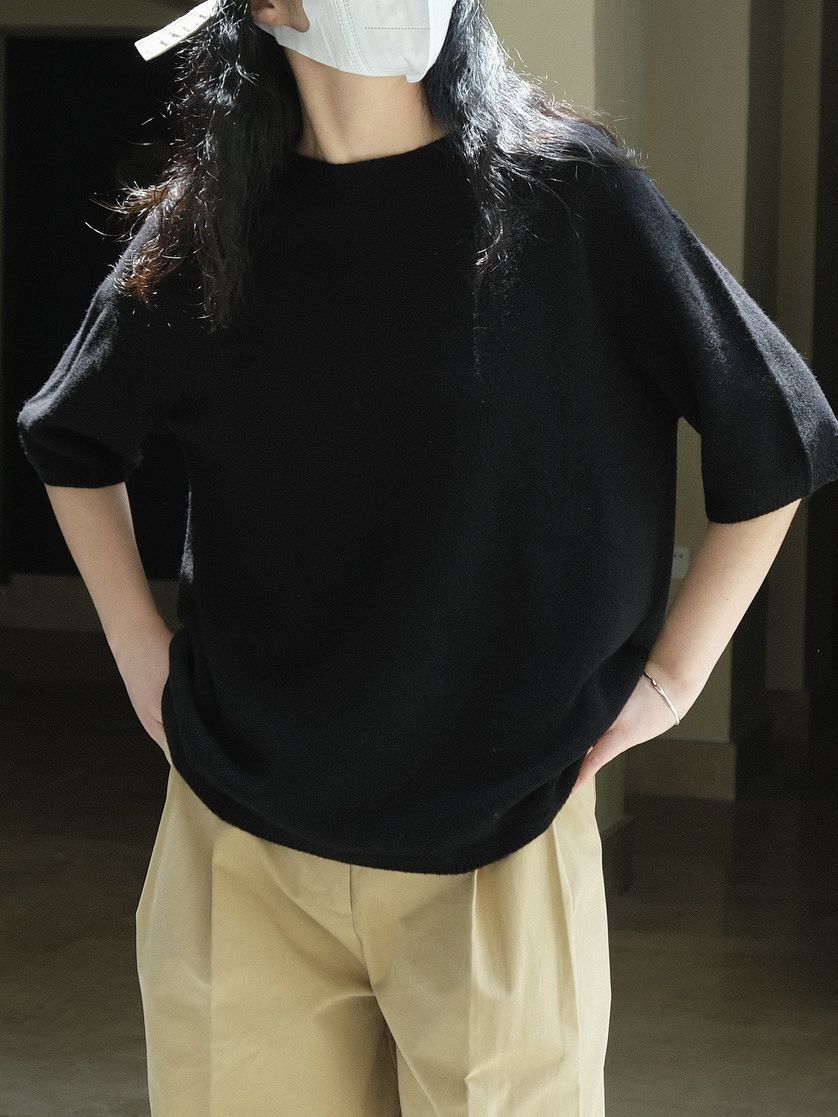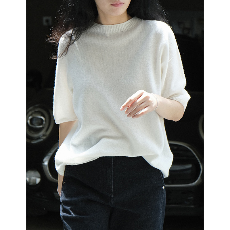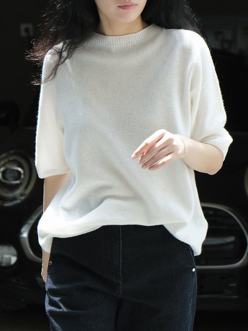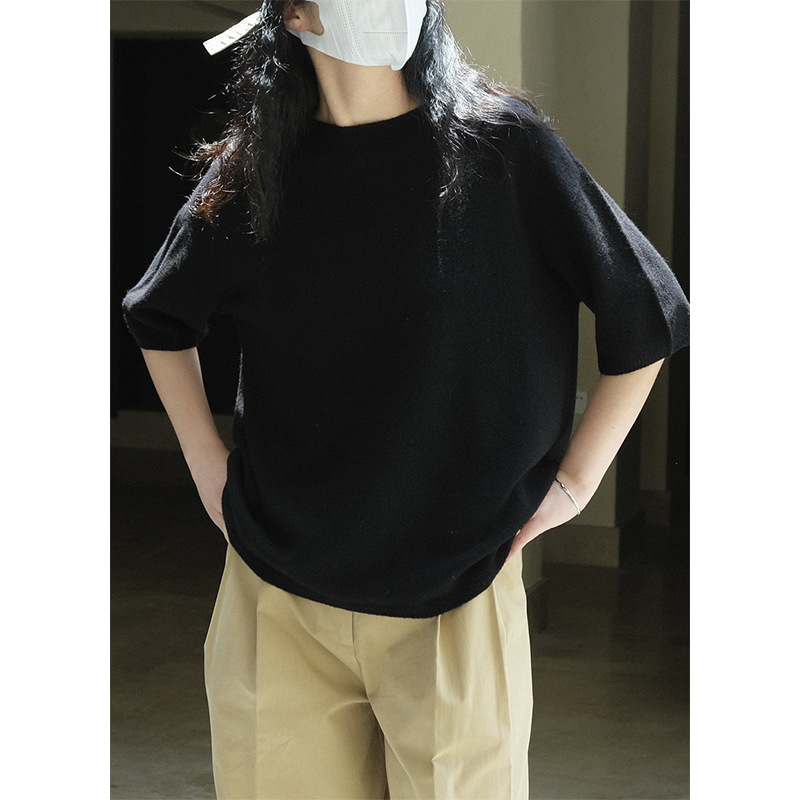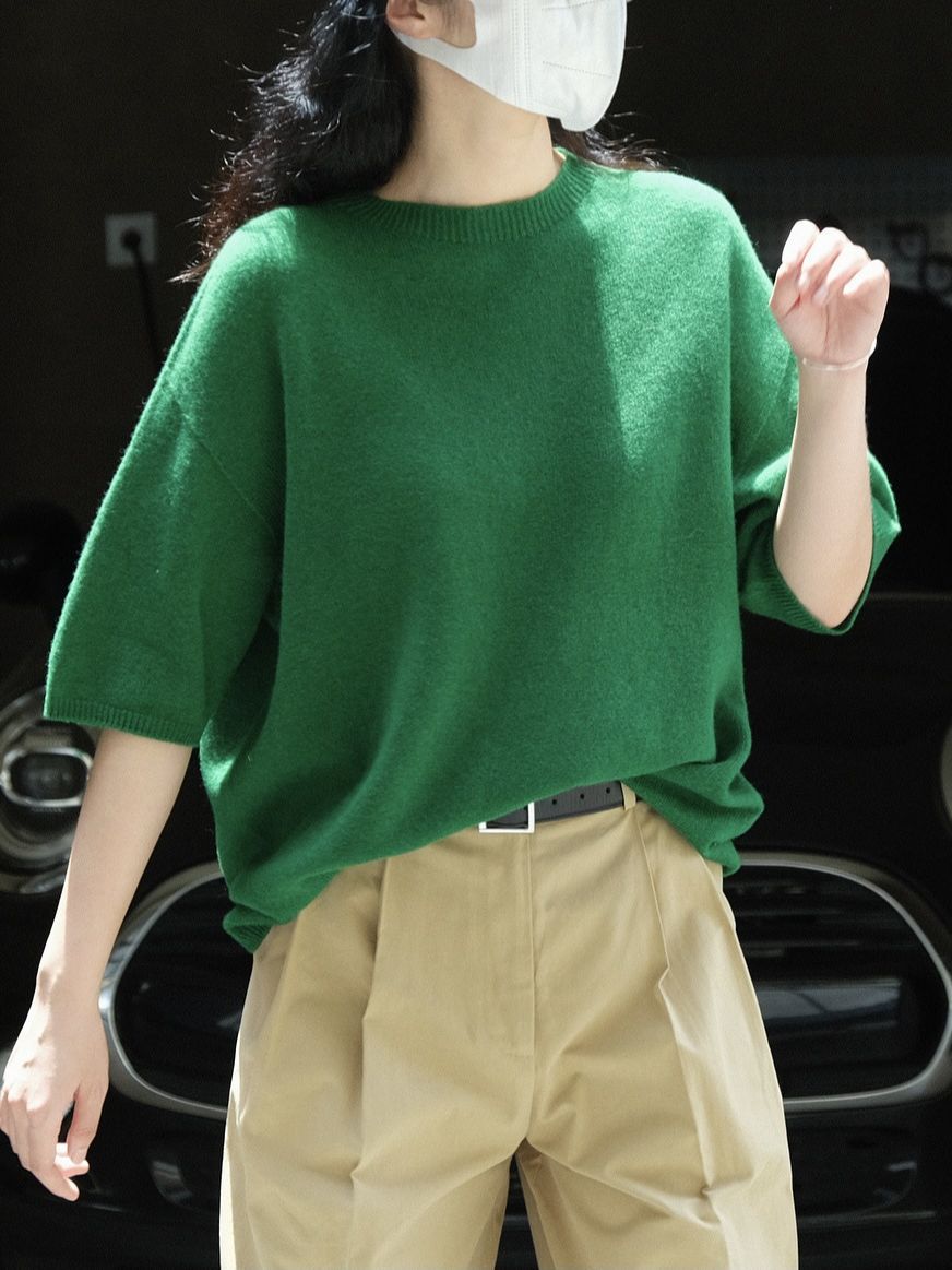 Осенний новый японский стиль, ленивый шерстяной свитер с круглым вырезом и короткими рукавами, свободный утягивающий повседневный вязаный топ для женщин