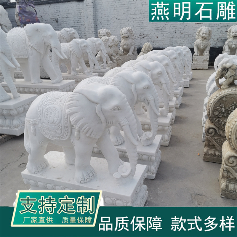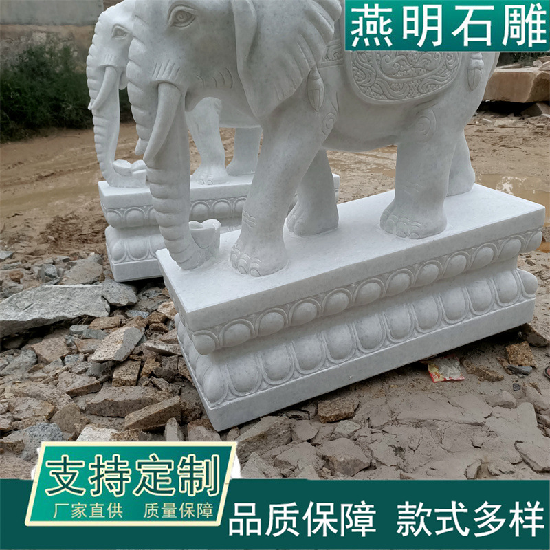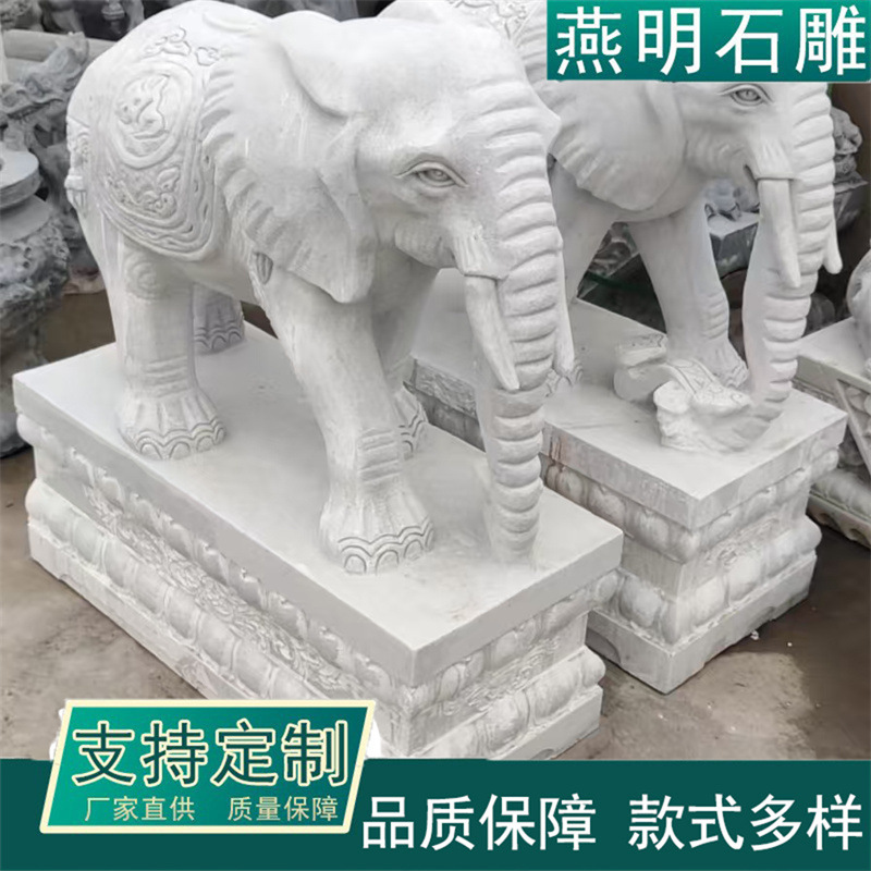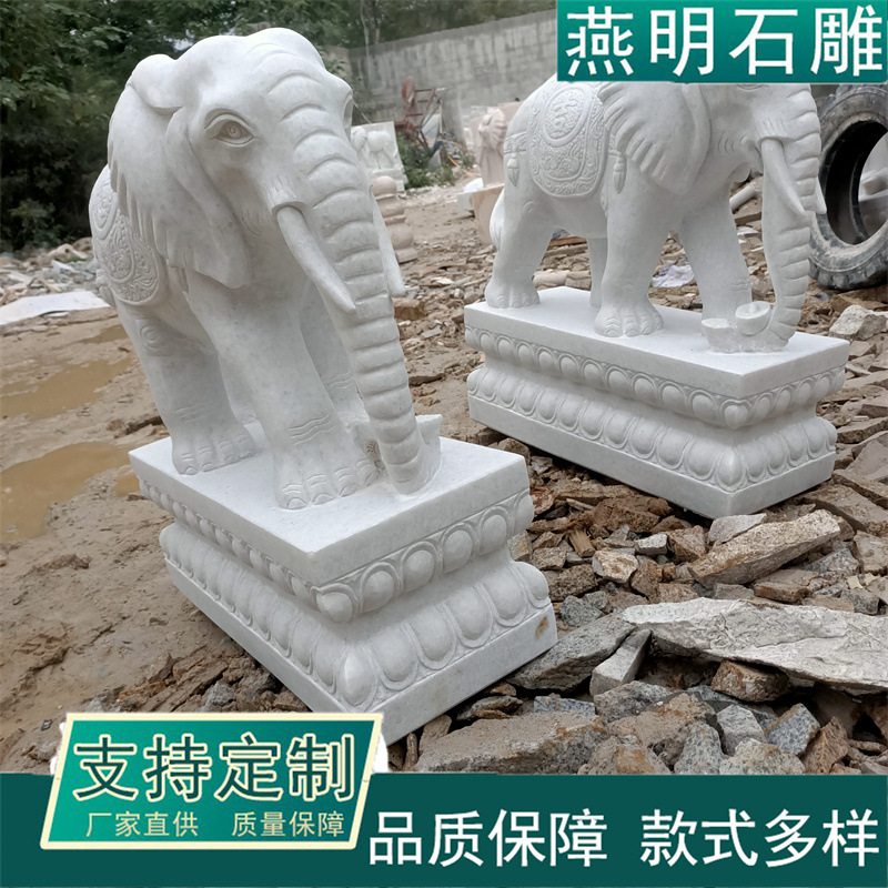 Пара резных слонов из натурального голубого камня, большие белые мраморные слоновые украшения у входа, оптом от производителя на складе.