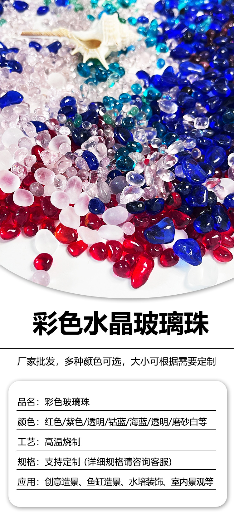 Цветные хрустальные стеклянные бусины для украшения аквариума. Цветные стеклянные бусины для декоративного оформления.