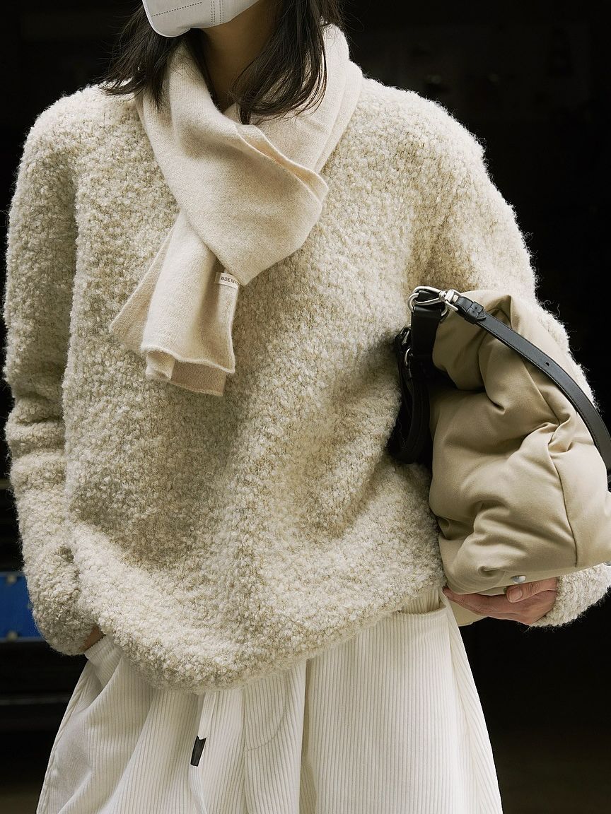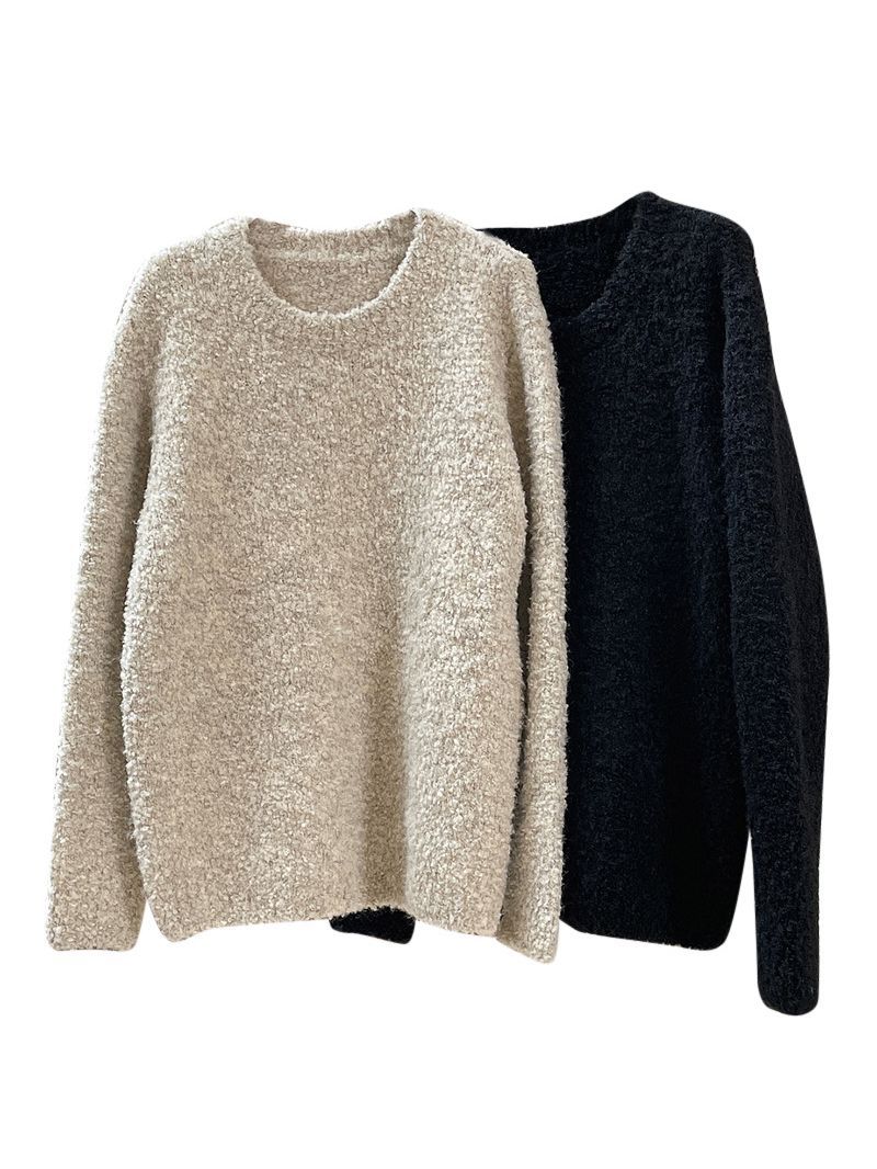 Зимний новый корейский стиль, простой ленивый вязаный свитер из шерстяной пряжи с круглым вырезом, длинными рукавами, мягкий, вощеный, свободный, для женщин