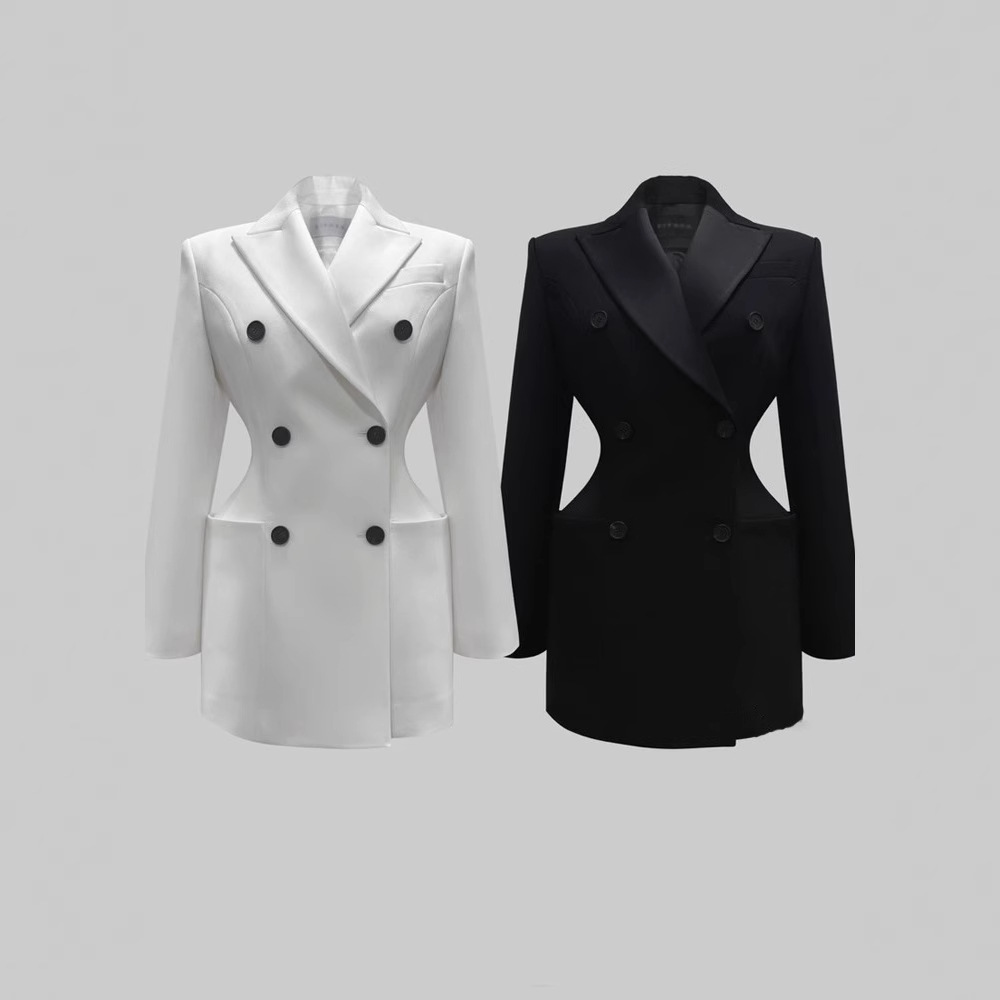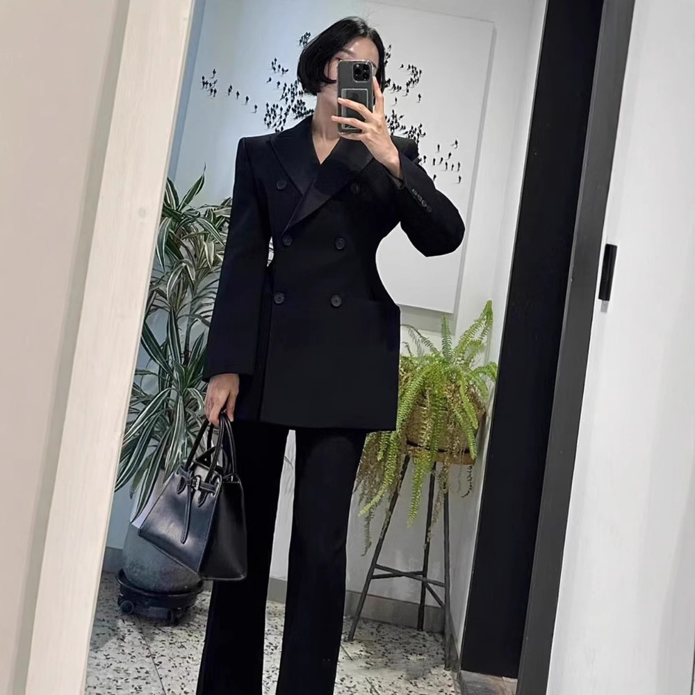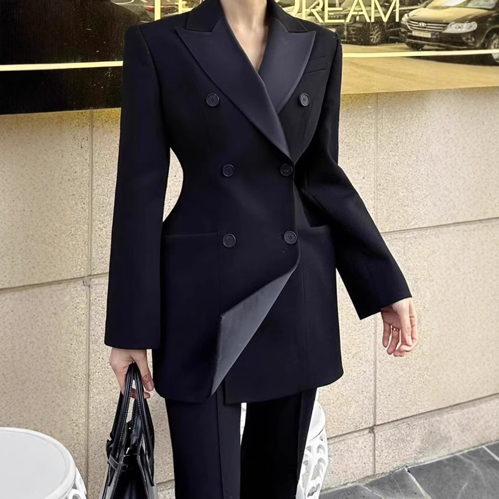 Черный трехмерный пиджак средней длины для женщин с эффектом утягивания талии в форме песочных часов