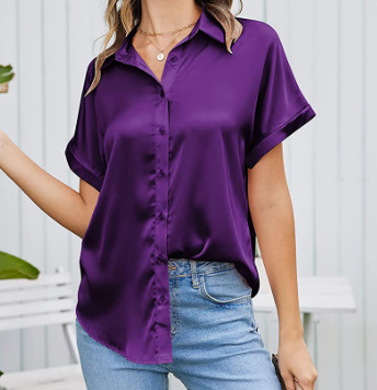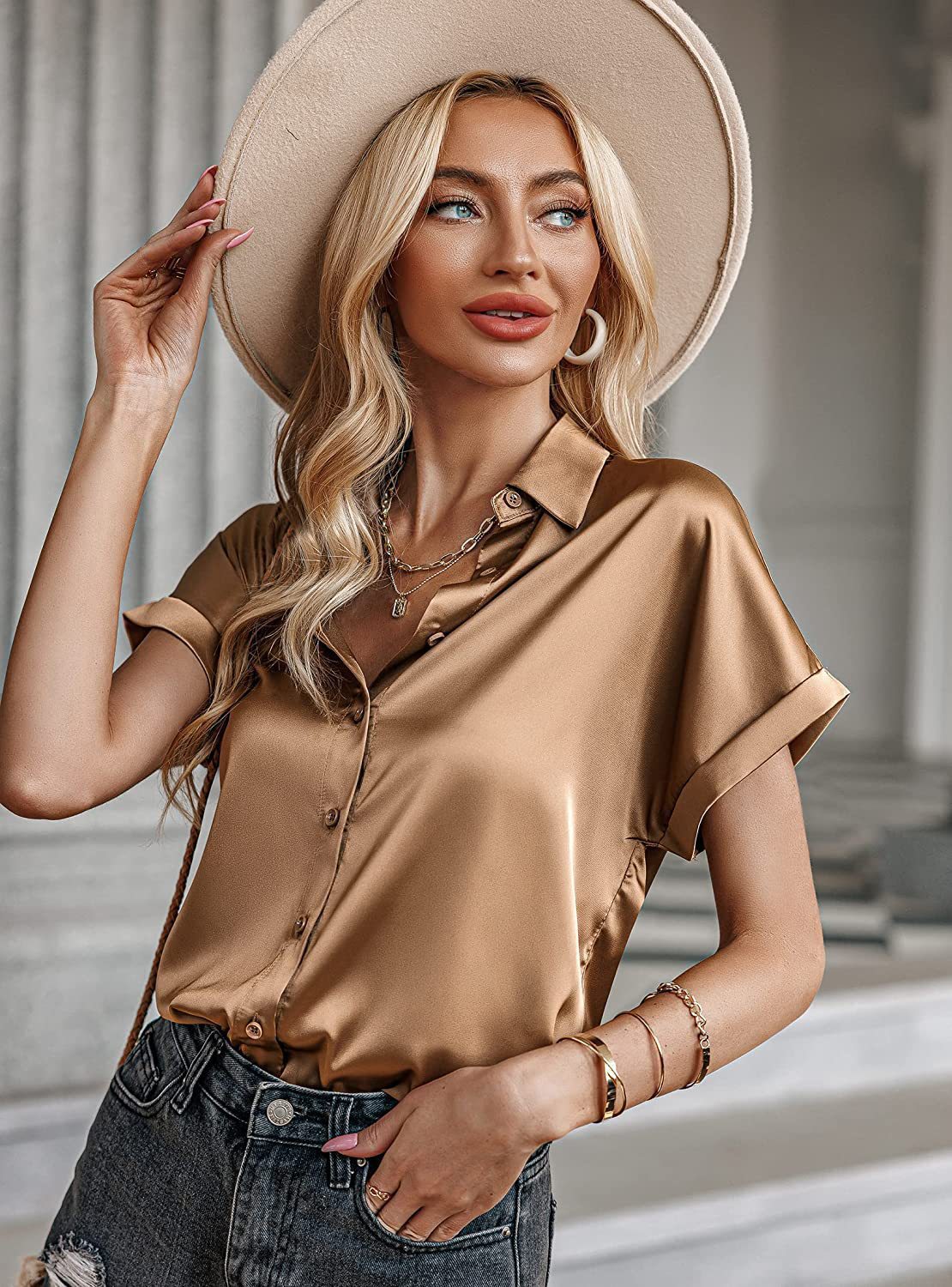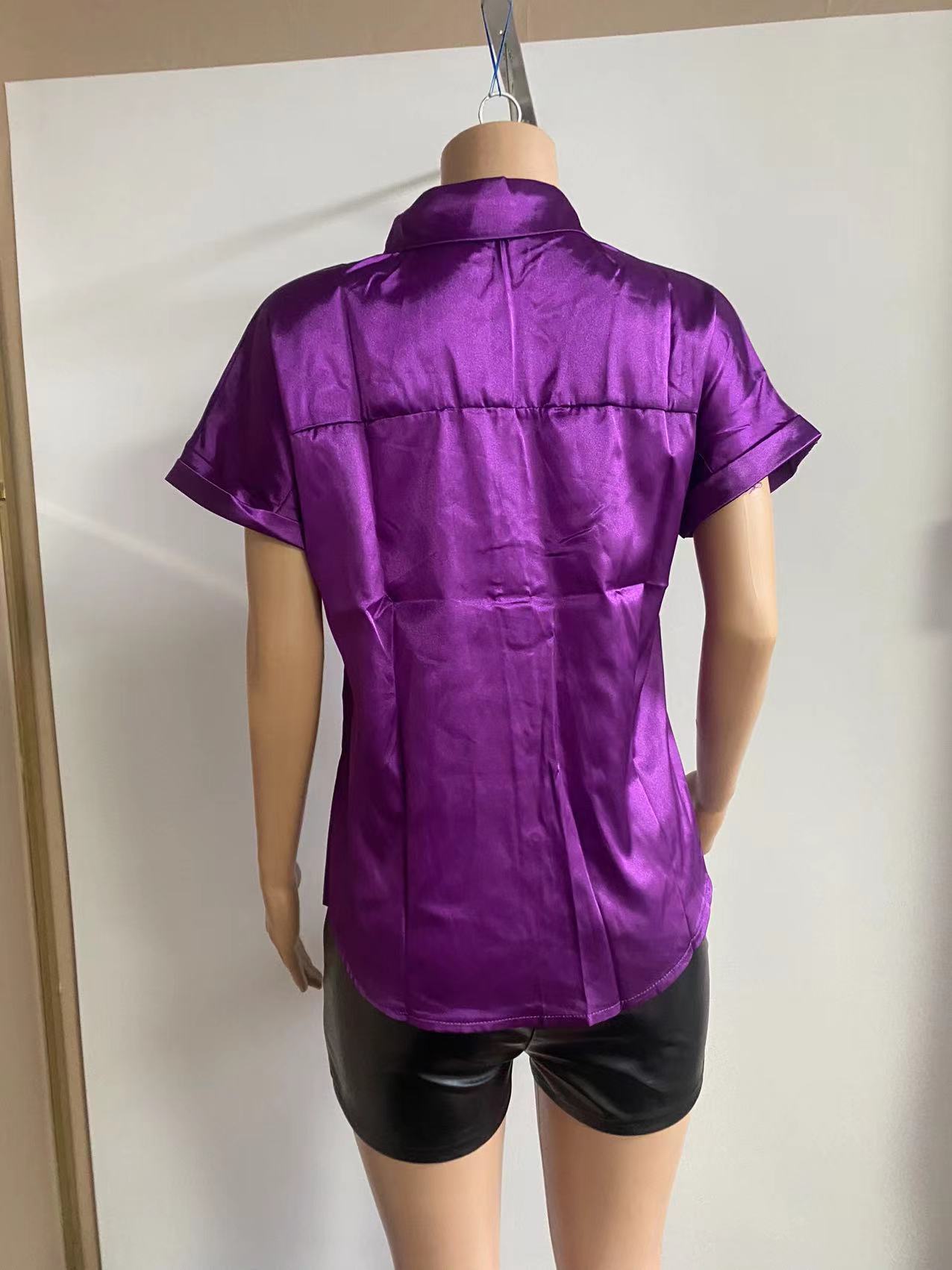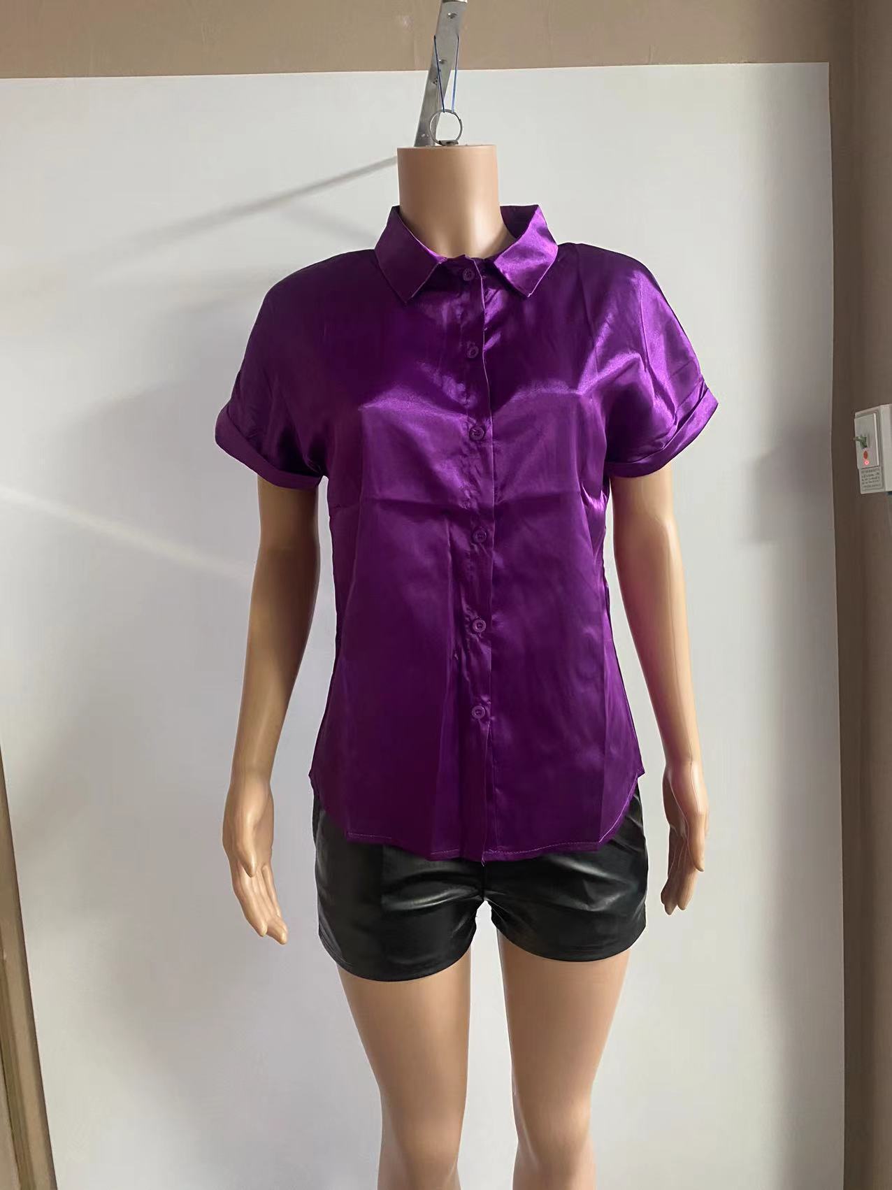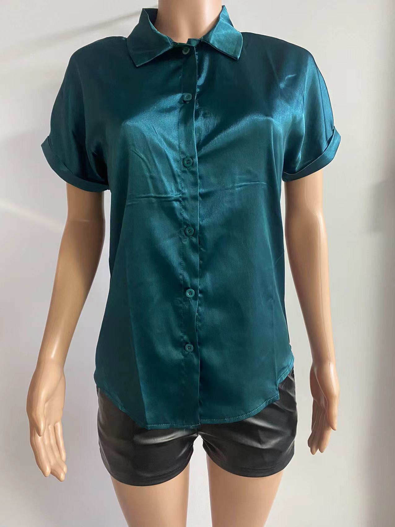 Спот 2023 Амазонка Ding многоцветный шелковый с короткими рукавами атласная пуговица рубашка повседневный свободный топ
