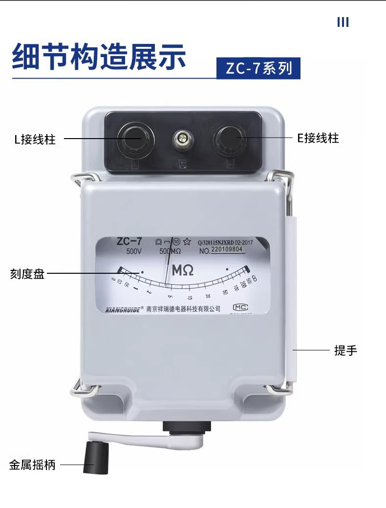 Xiangruide ZC-7 мегаомметр измеритель сопротивления изоляции измерительный прибор электрик измеритель сопротивления сплав 2500 В