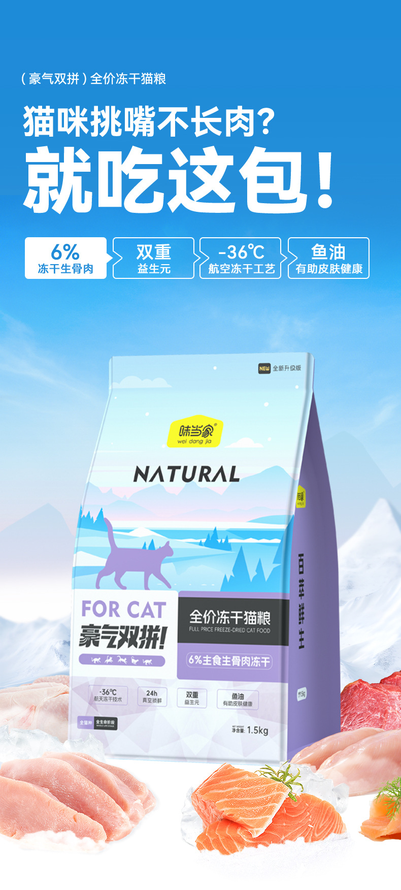 [Weidangjia Raw Bone and Meat Double Fresh Meat Food] Полная цена корма для кошек из сырых костей и мяса 1,5 кг корма для кошек способствует пищеварению и питанию