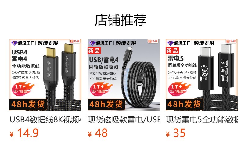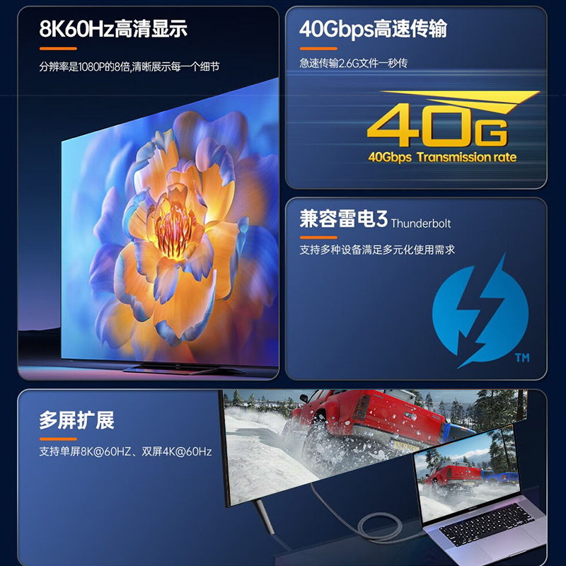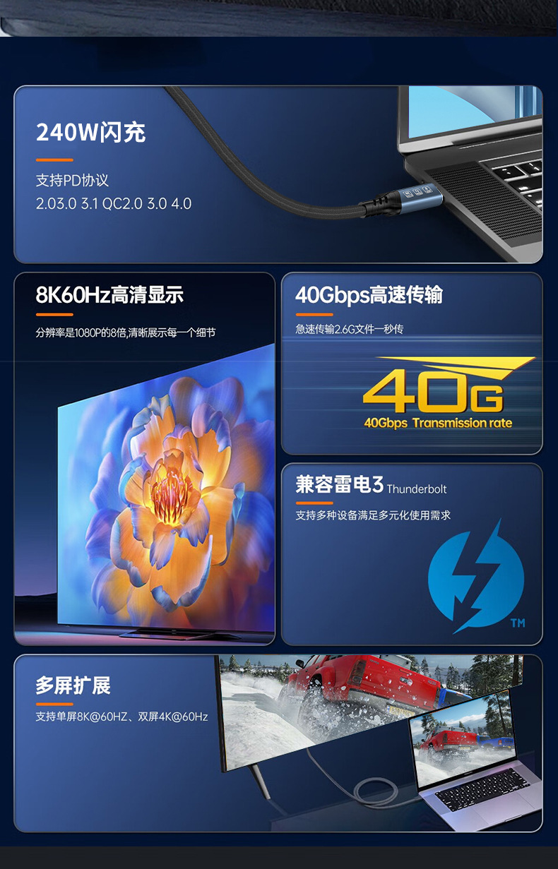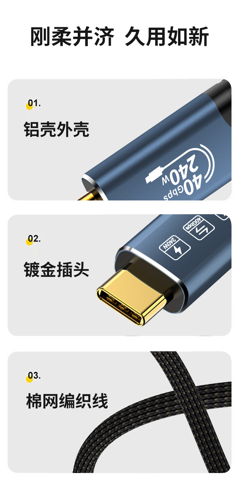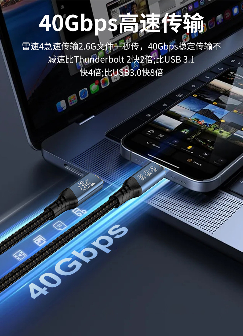 Трансграничный предпочтительный USB4 Thunderbred 4 HD видео линия передачи данных 40G PD240W быстрый зарядный кабель 8K60hz