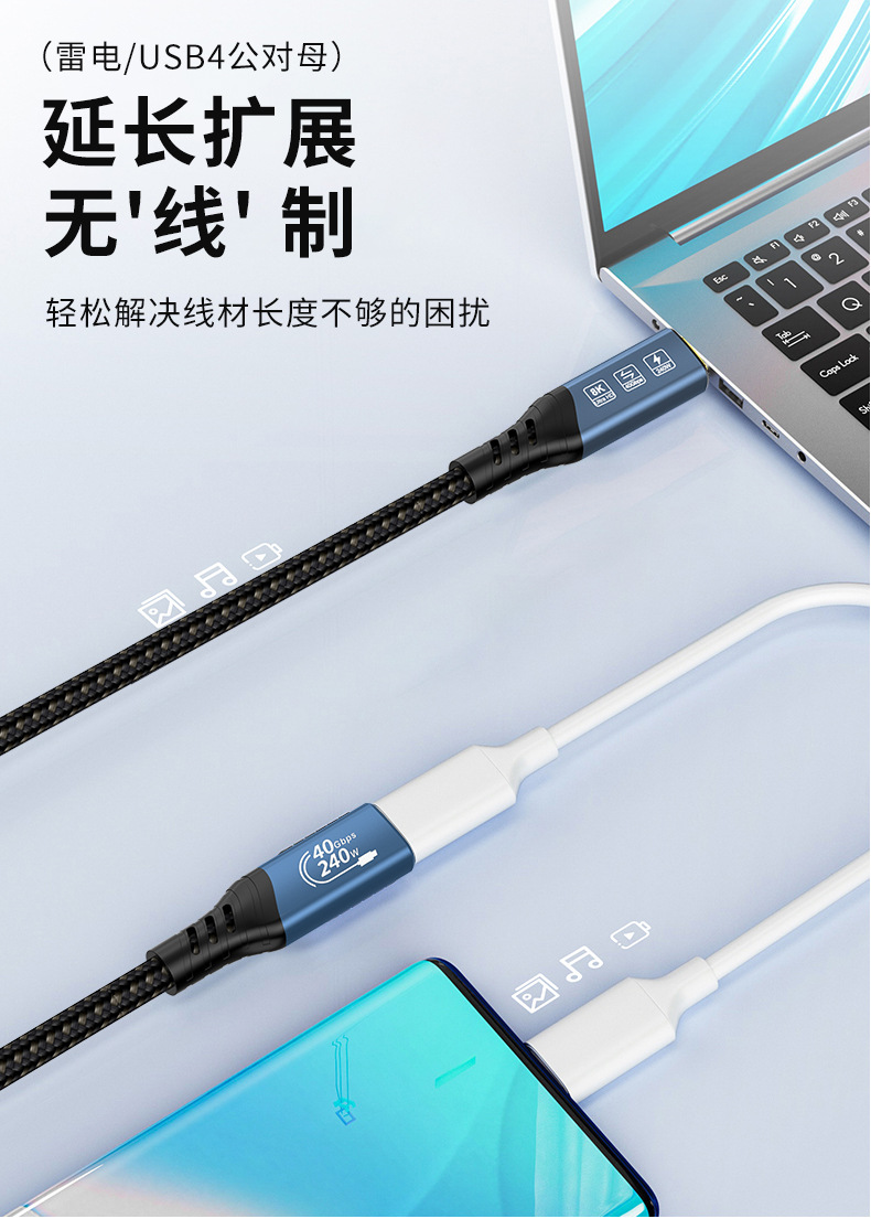 Полнофункциональный удлинительный кабель Thunderbolt/USB4 «папа-мама»; Полнофункциональный кабель Thunderbolt/USB4 «папа-папа»; Полнофункциональный кабель Thunderbolt/USB4 от прямого до изогнутого