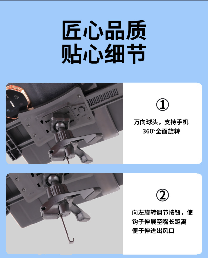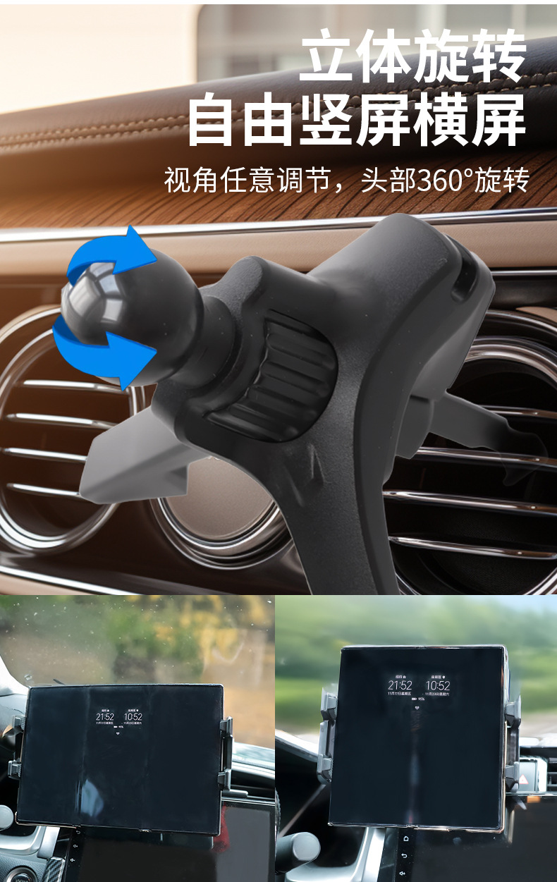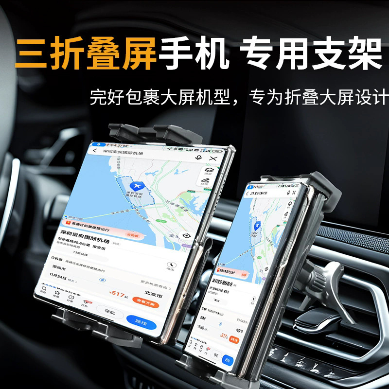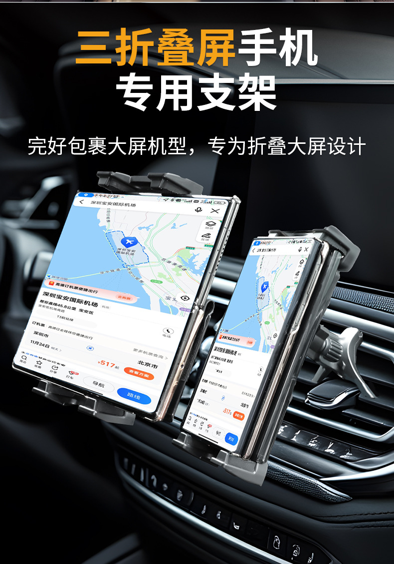 三折叠车载固定夹多功能通用手机平板夹双向拉伸万向云台球头支架