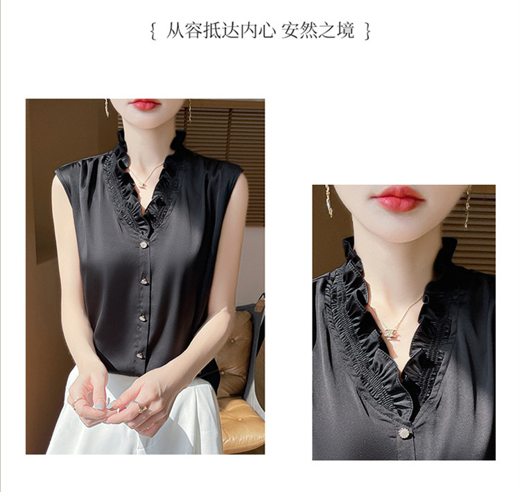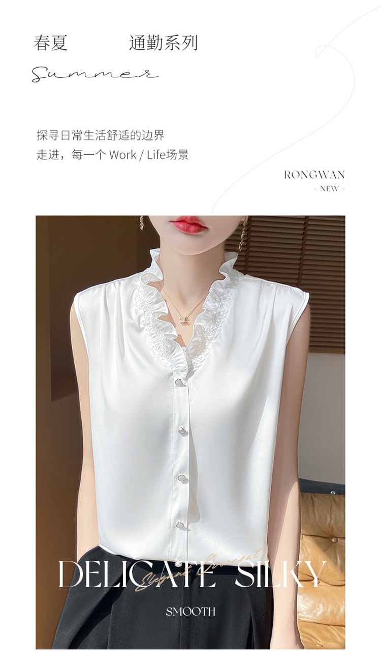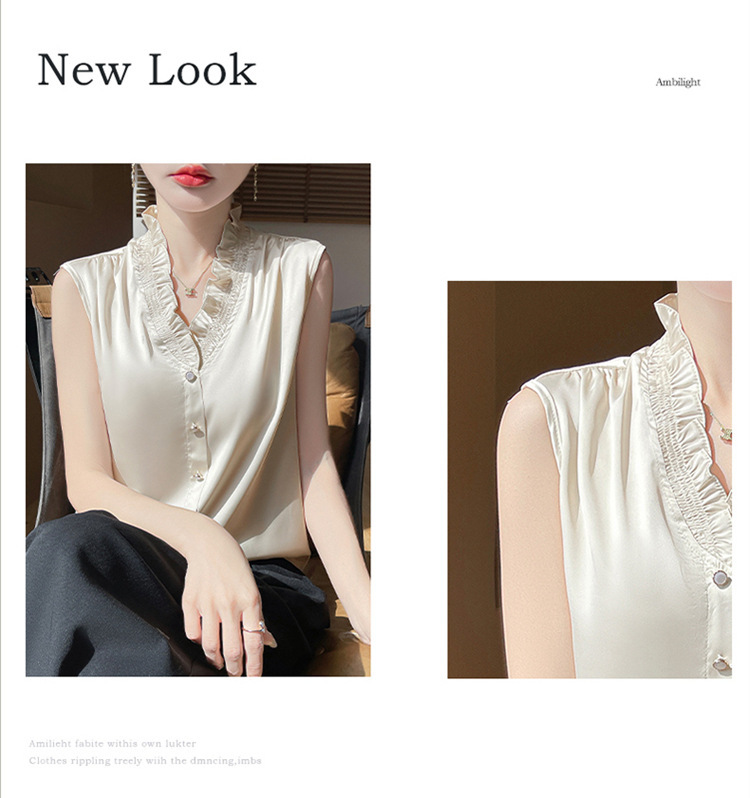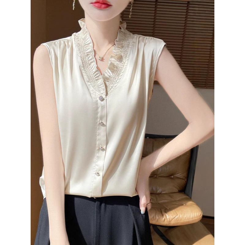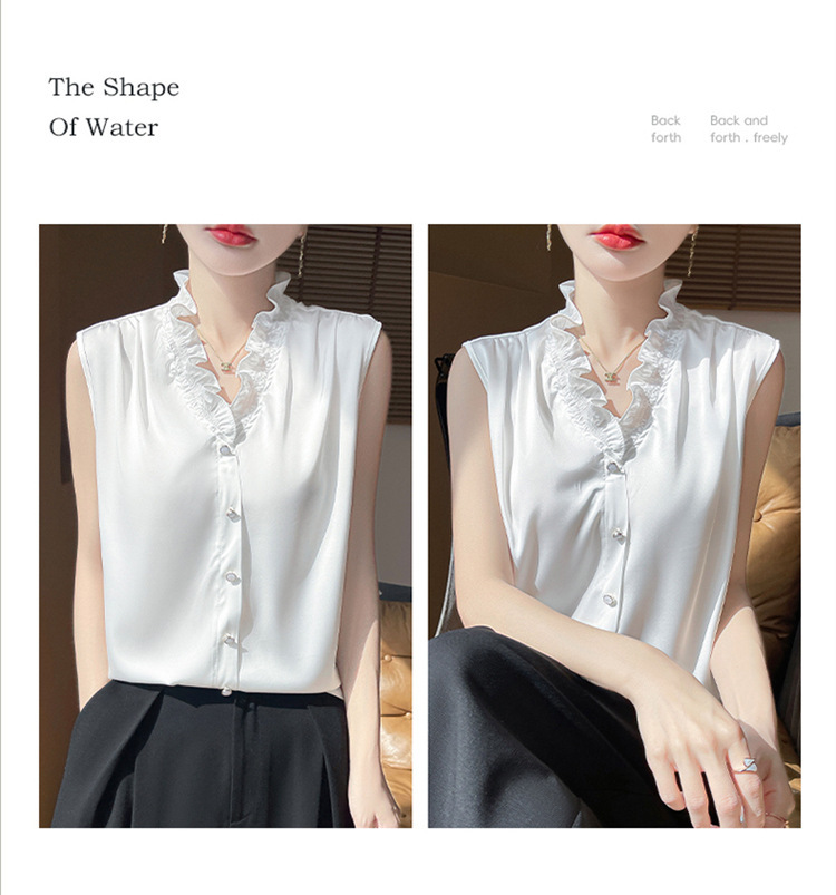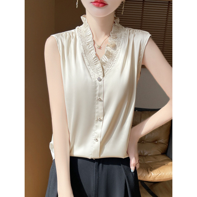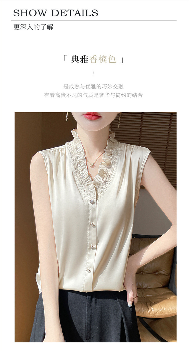 Модный кружевной жилет без рукавов с V-образным вырезом из шелковистого атласа для женщин, весенне-летний стильный костюм с рубашкой-топом