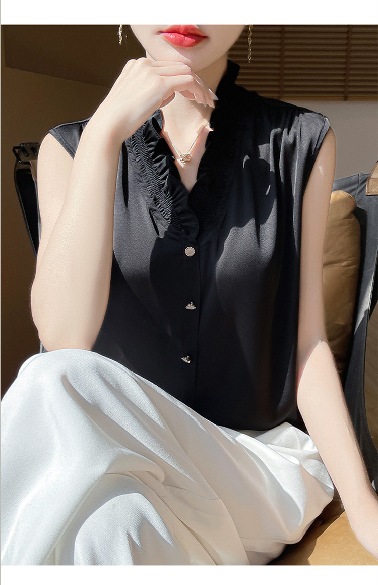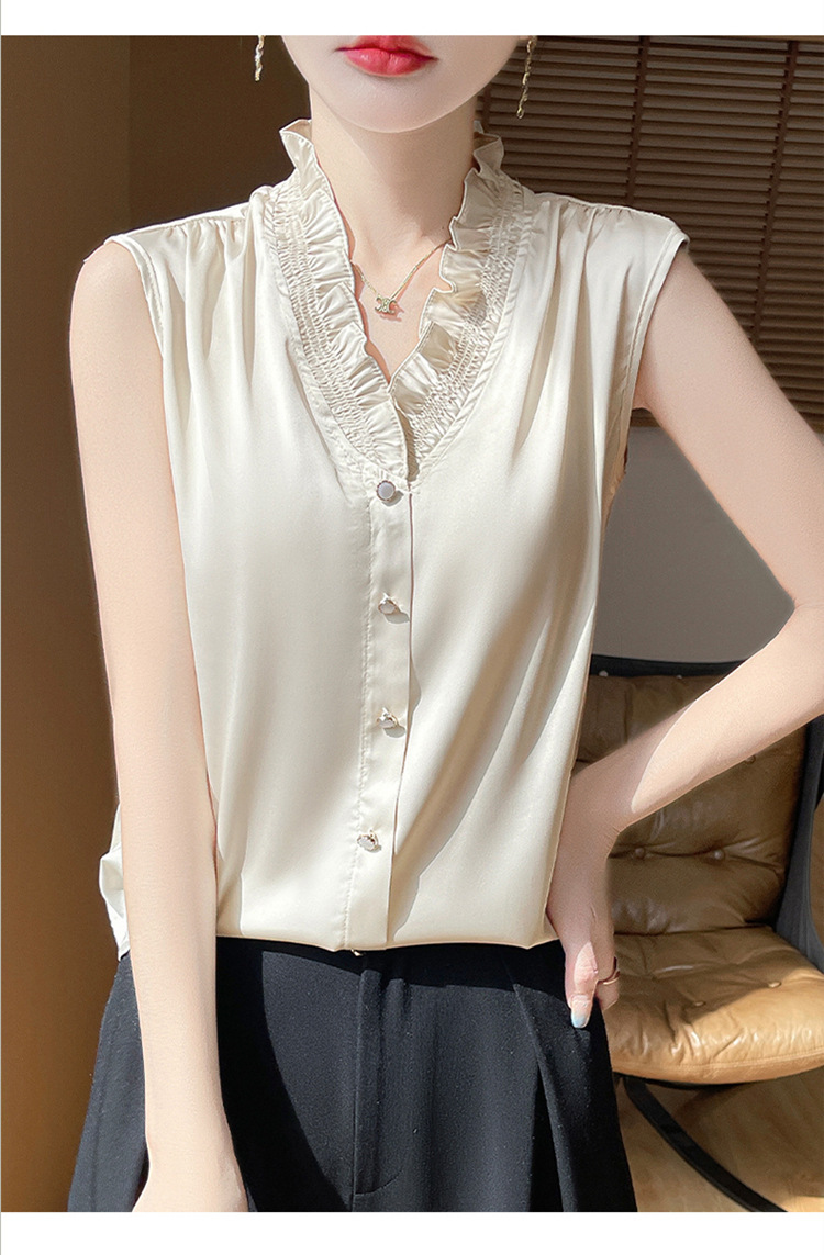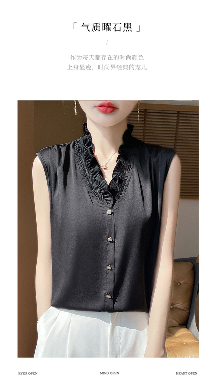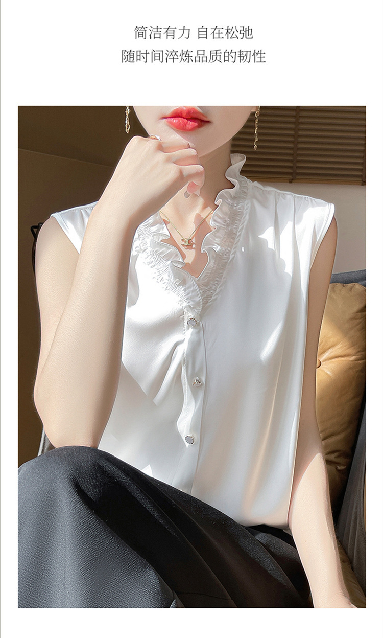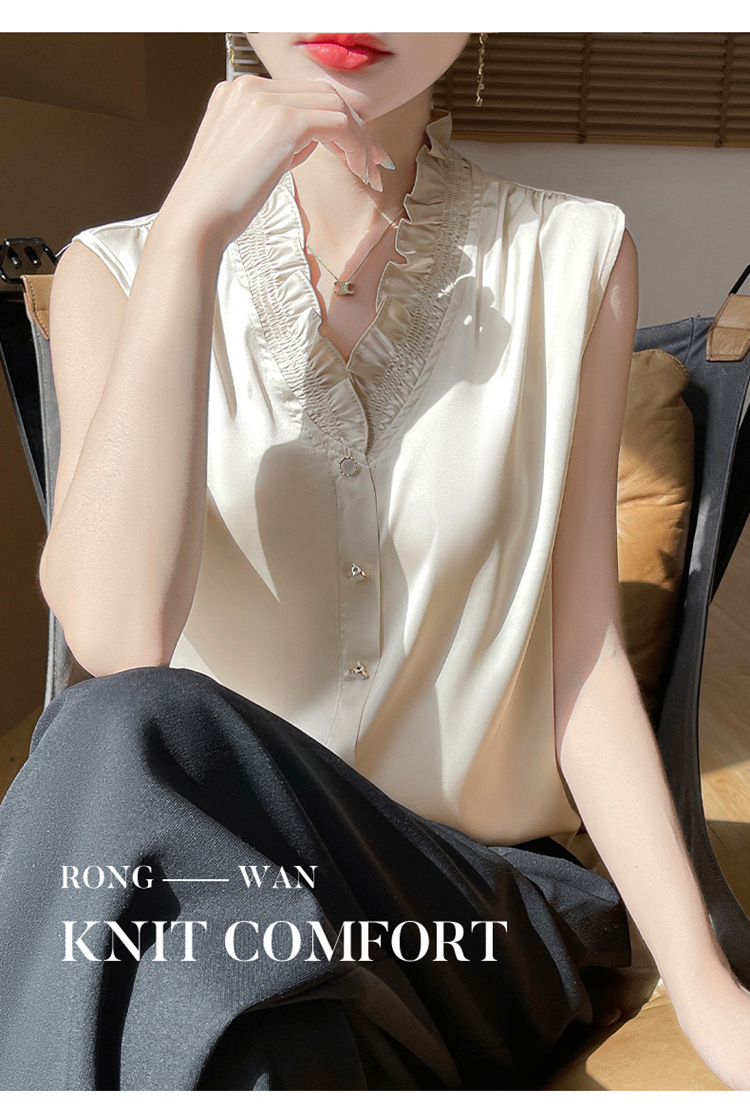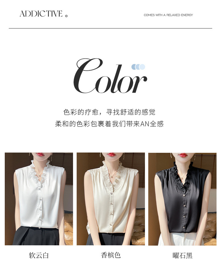 Модный кружевной жилет без рукавов с V-образным вырезом из шелковистого атласа для женщин, весенне-летний стильный костюм с рубашкой-топом