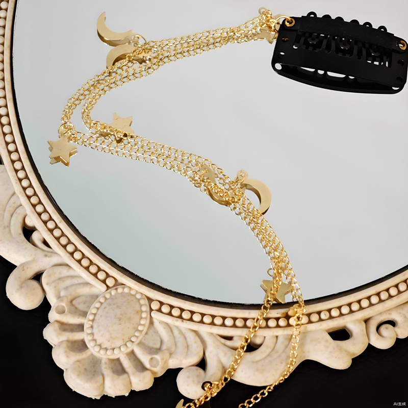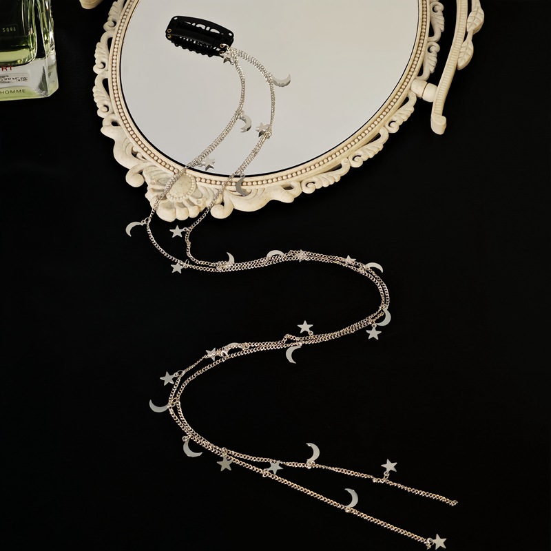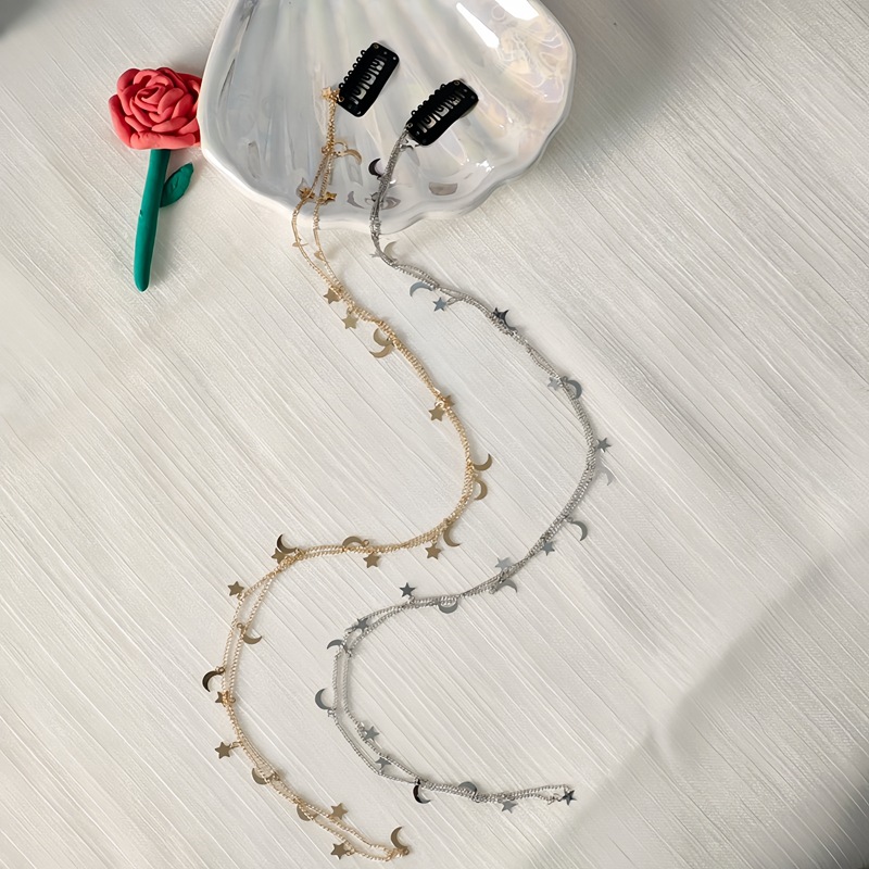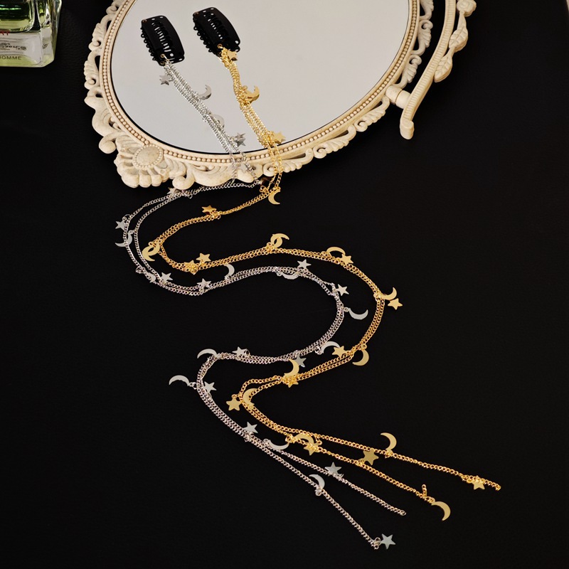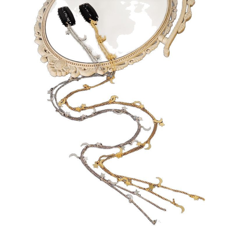 Цепочка для волос «Звезда и Луна» (золото); Цепочка для волос «Звезда и Луна» (серебро); Цепочка для волос «Звезда и Луна» (золото + серебро); Серебряная цепочка со стразами (по 2 штуки)