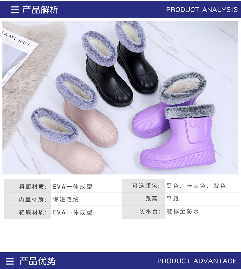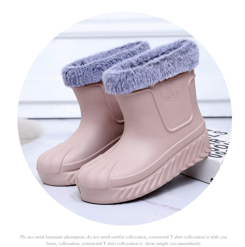 Зимние дамы EVA водонепроницаемые хлопчатобумажные туфли теплые противоскользящие высокие снежные сапоги кухня на открытом воздухе Автомойка холодная обувь