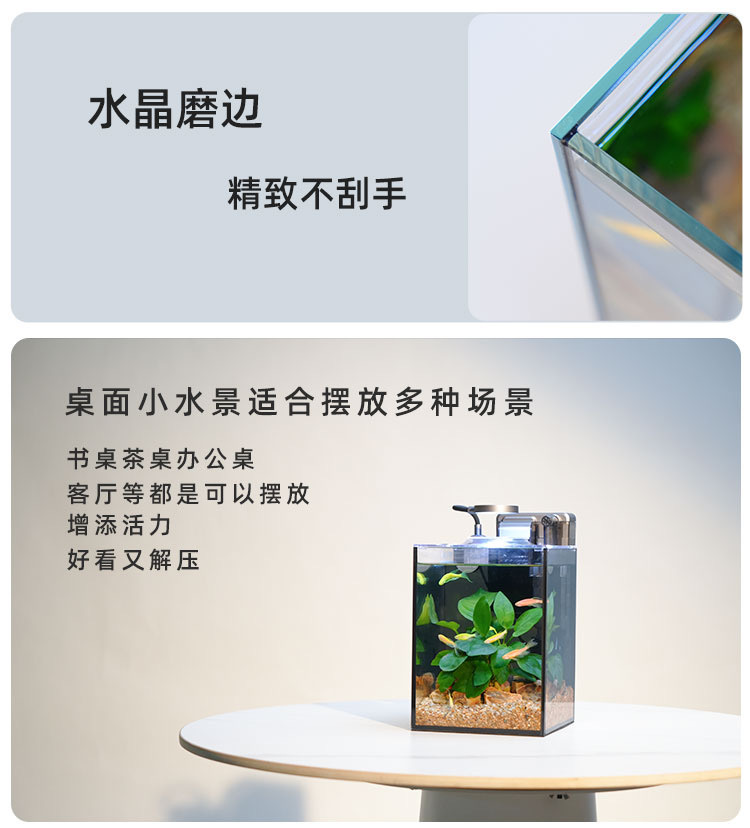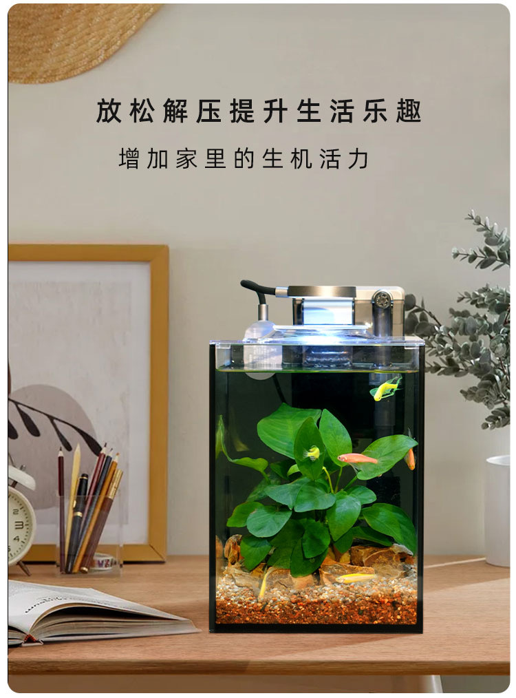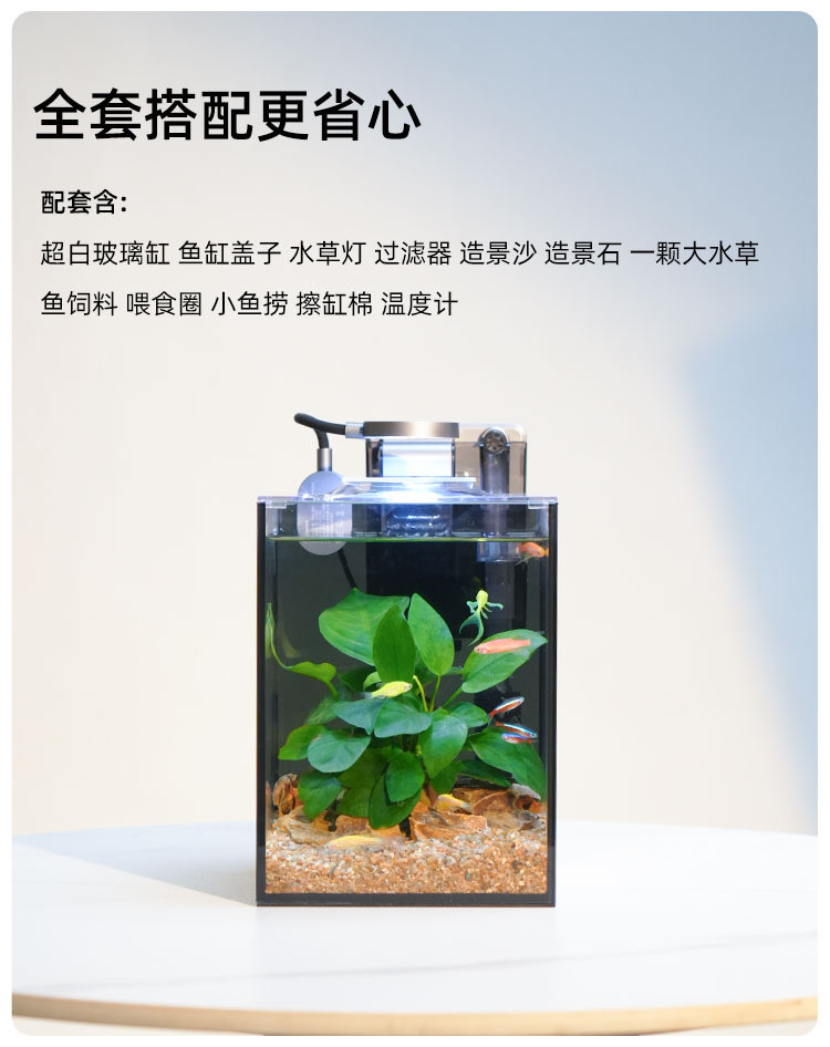 Ультрабелый стеклянный аквариум с имитацией водных растений, полный набор для ландшафтного дизайна, классический домашний аквариум для небольшого рабочего стола или офиса.