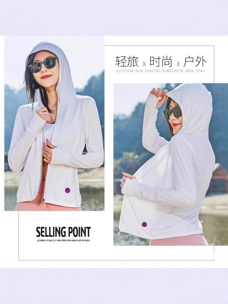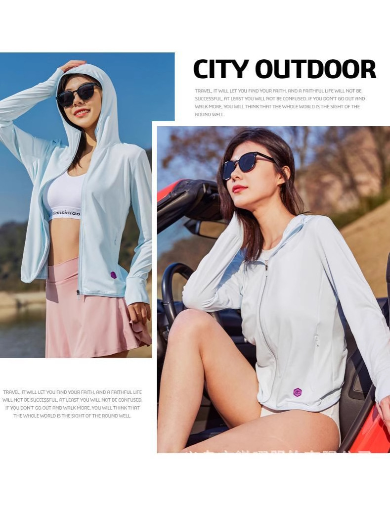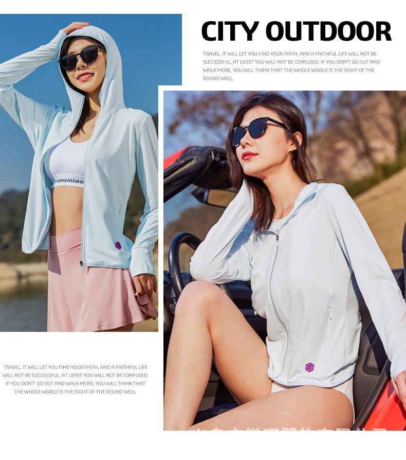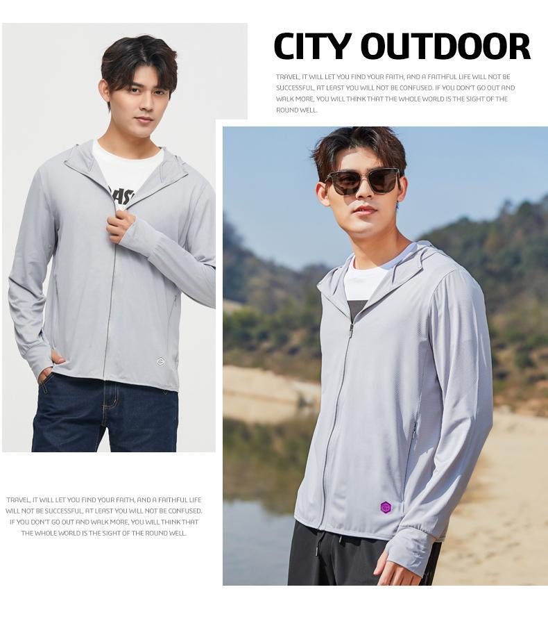 Одежда для защиты от УФ-лучей, летняя дышащая одежда с капюшоном для пар, светоотражающая полоса на молнии UPF50 +, солнцезащитная одежда с принтом на заказ lo