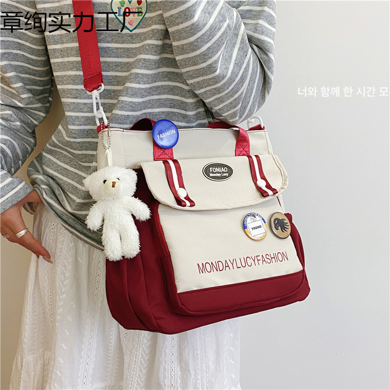 Высококачественная универсальная сумка через плечо контрастного цвета в стиле свежего студенческого рюкзака, новая сумка через плечо большой вместимости