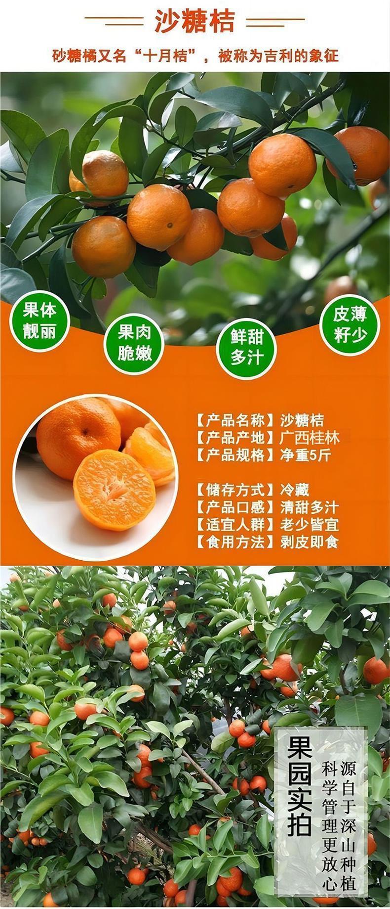 Сладкий апельсин Конфеты Гуанси Золотая осень Конфеты Апельсин Тонкокожистый без косточек Мандарин Апельсин 5kg Коробка цельных фруктов Оптовая продажа.