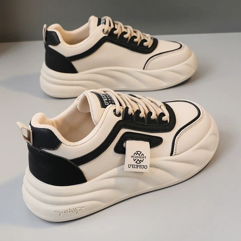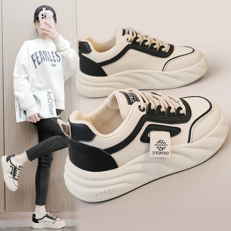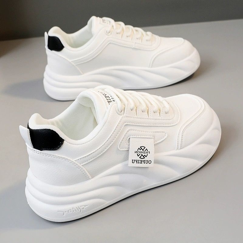 Весенние новые корейские кроссовки 2024 года, дышащие белые низкие кеды на толстой подошве, универсальные платформенные туфли