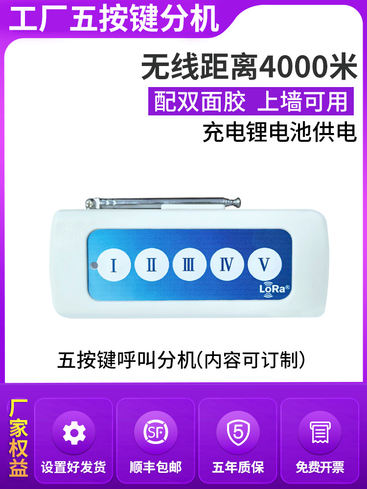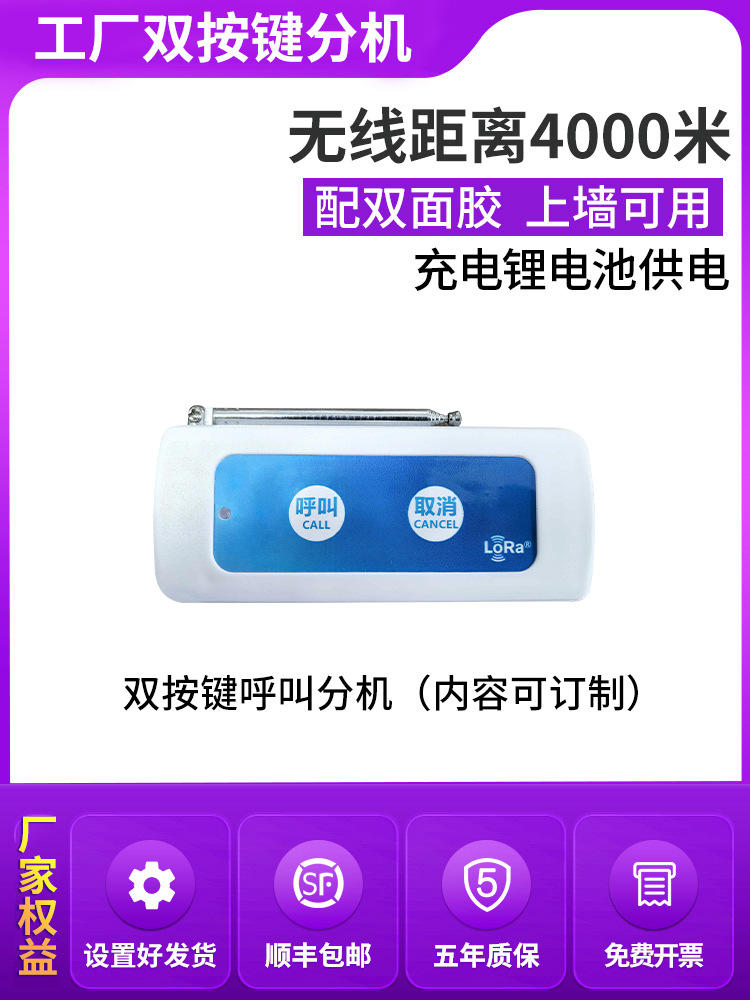 Обновленный хост (частота LORA 4000m ); Хост LORA версии 4G IoT (прием мини-программ); Хост с большим экраном LORA 21.5inch (можно проверять индивидуальные вызовы и записи); Тревожная кнопка LORA (дальний расстояние 4000m ); Расширение пейджера LORA (классическое расширение для конкретной больницы); Расширение вызова с двумя кнопками LORA (обновленное заводское расширение); Расширение вызова LORA с пятью кнопками (обновленное заводское расширение); Удлинитель веревки типа LORA86 (удлинитель для отелей высокого класса); Усилитель сигнала LORA; 1 классический хост LORA + 5 наборов расширений ручек LORA; 1 классический хост LORA + 10 наборов расширений ручек LORA; 1 классический хост LORA + 15 наборов расширений ручек LORA; 1 классический хост LORA + 20 наборов расширений ручек LORA; 1 классический хост LORA + 30 наборов расширений ручек LORA; 1 классический хост LORA + 40 наборов расширений ручек LORA; 1 классический хост LORA + 50 наборов расширений ручек LORA; 1 классический хост LORA + 100 наборов расширений ручек LORA; Классический хост ЖК-экрана LORA 21.5inch + 10 наборов расширений ручки LORA (можно проверять индивидуальные вызовы и записи); Классический хост с ЖК-экраном LORA 21.5inch + набор расширений ручки LORA на 20 (можно проверять индивидуальные вызовы и записи); Классический хост ЖК-экрана LORA 21.5inch + набор расширений ручки LORA на 30 (можно проверять индивидуальные вызовы и записи); Классический хост с ЖК-экраном LORA 21.5inch + набор расширений ручки LORA на 40 (можно проверить индивидуальные вызовы и записи); Классический хост ЖК-экрана LORA 21.5inch + набор расширений ручки LORA на 50 (можно проверить индивидуальные вызовы и записи); 1 обновленный хост LORA + 5 расширений LORA с двумя кнопками; 1 обновленный хост LORA + 10 расширений с двойной кнопкой LORA; 1 обновленный хост LORA + 15 расширений с двумя кнопками LORA; 1 модернизированный хост LORA + 20 расширений с двойной кнопкой LORA; 1 обновленный хост LORA + 30 расширений с двумя кнопками LORA; 1 обновленный хост LORA + 40 расширений с двумя кнопками LORA; 1 обновленный хост LORA + 50 расширений с двумя кнопками LORA; 1 обновленный хост LORA + 100 расширений с двумя кнопками LORA; Модернизированный хост LORA 21.5inch LCD + 10 двухкнопочных расширений LORA (содержимое можно настраивать, а записи можно проверять); Модернизированный хост LORA 21.5inch LCD + 20 расширений LORA с двумя кнопками (содержимое можно настраивать, а записи можно проверять); Модернизированный хост LORA 21.5inch LCD + 30 расширений LORA с двумя кнопками (содержимое можно настраивать, а записи можно проверять); Модернизированный хост LORA 21.5inch LCD + 40 расширений с двумя кнопками LORA (содержимое можно настраивать, а записи можно проверять); Модернизированный хост LORA 21.5inch LCD + 50 расширений LORA с двумя кнопками (содержимое можно настраивать, а записи можно проверять); 1 высококлассный хост LORA для отеля + 5 удлинителей веревки LORA 86 (бесплатная доставка SF Express, пятилетняя гарантия); 1 высококлассный хост LORA для отеля + 10 удлинителей веревки LORA 86 (бесплатная доставка SF Express, пятилетняя гарантия); 1 высококлассный хост LORA для отеля + 15 удлинителей веревки LORA 86 (бесплатная доставка SF Express, пятилетняя гарантия); 1 высококачественный хост LORA для отеля + 20 удлинителей веревки LORA 86 (бесплатная доставка SF Express, пятилетняя гарантия); 1 высококлассный хост LORA для отеля + 30 удлинителей веревки LORA 86 (бесплатная доставка SF Express, пятилетняя гарантия); 1 высококлассный хост LORA для отеля + 40 веревочных удлинителей LORA 86 (бесплатная доставка SF Express, пят
