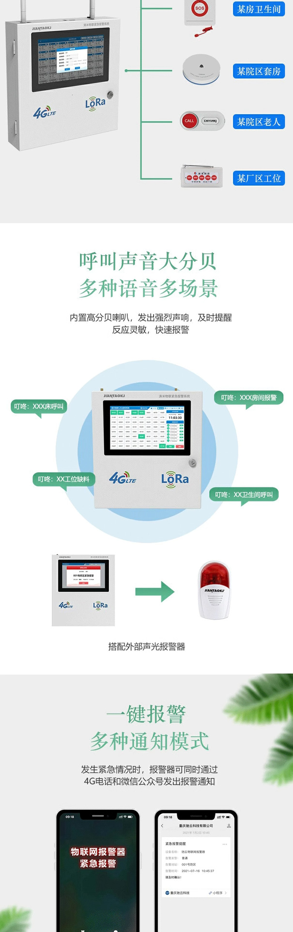 Система беспроводной вызовной связи Lora One-Click для экстренных вызовов на большие расстояния в школах, торговых центрах, гостиницах и больницах.