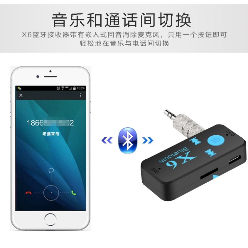 X6 Автомобильный аудио Bluetooth приемник преобразователь 3.5 аудио порт выход громкой связи Музыка подключается к TF-карте